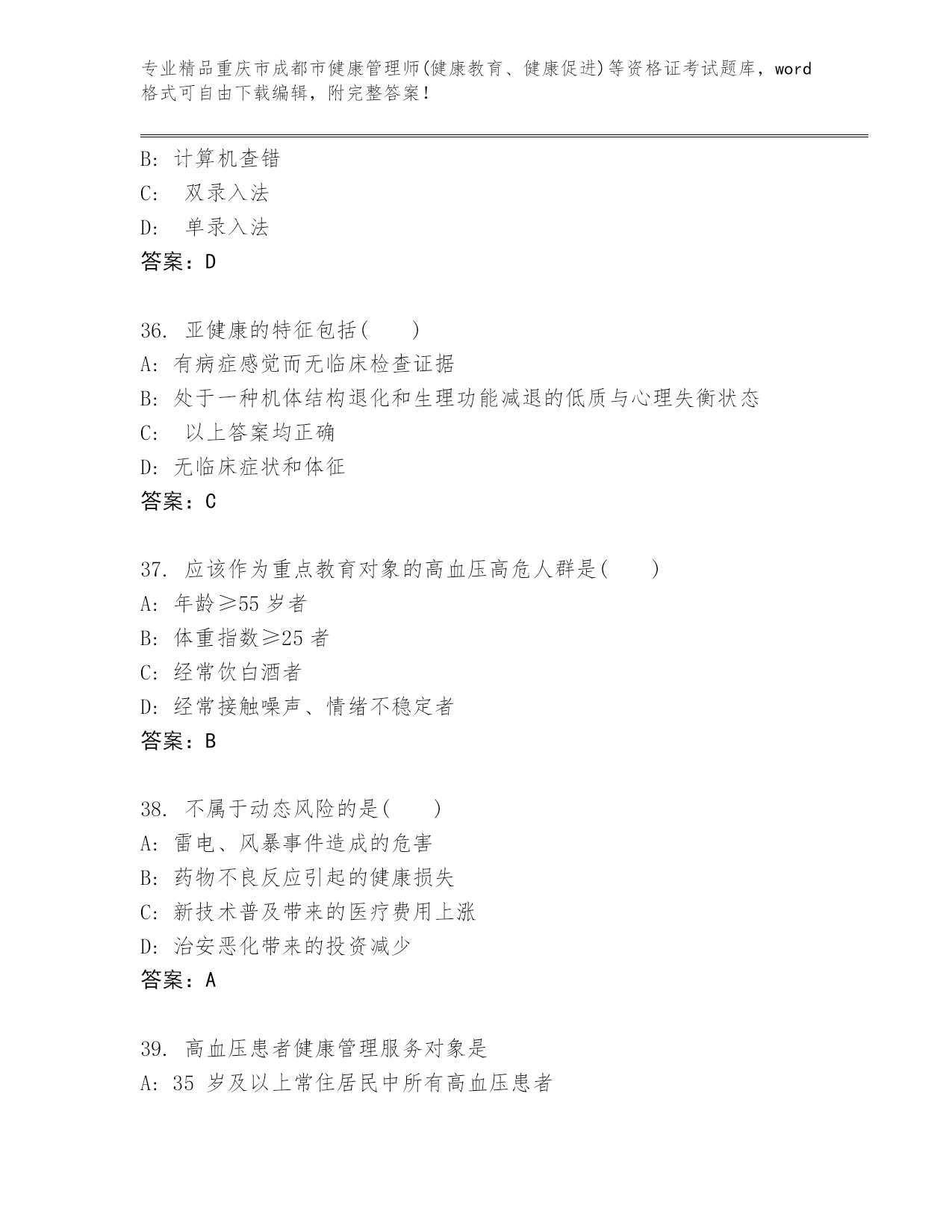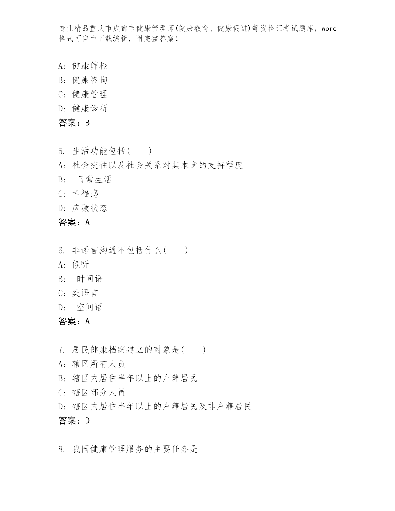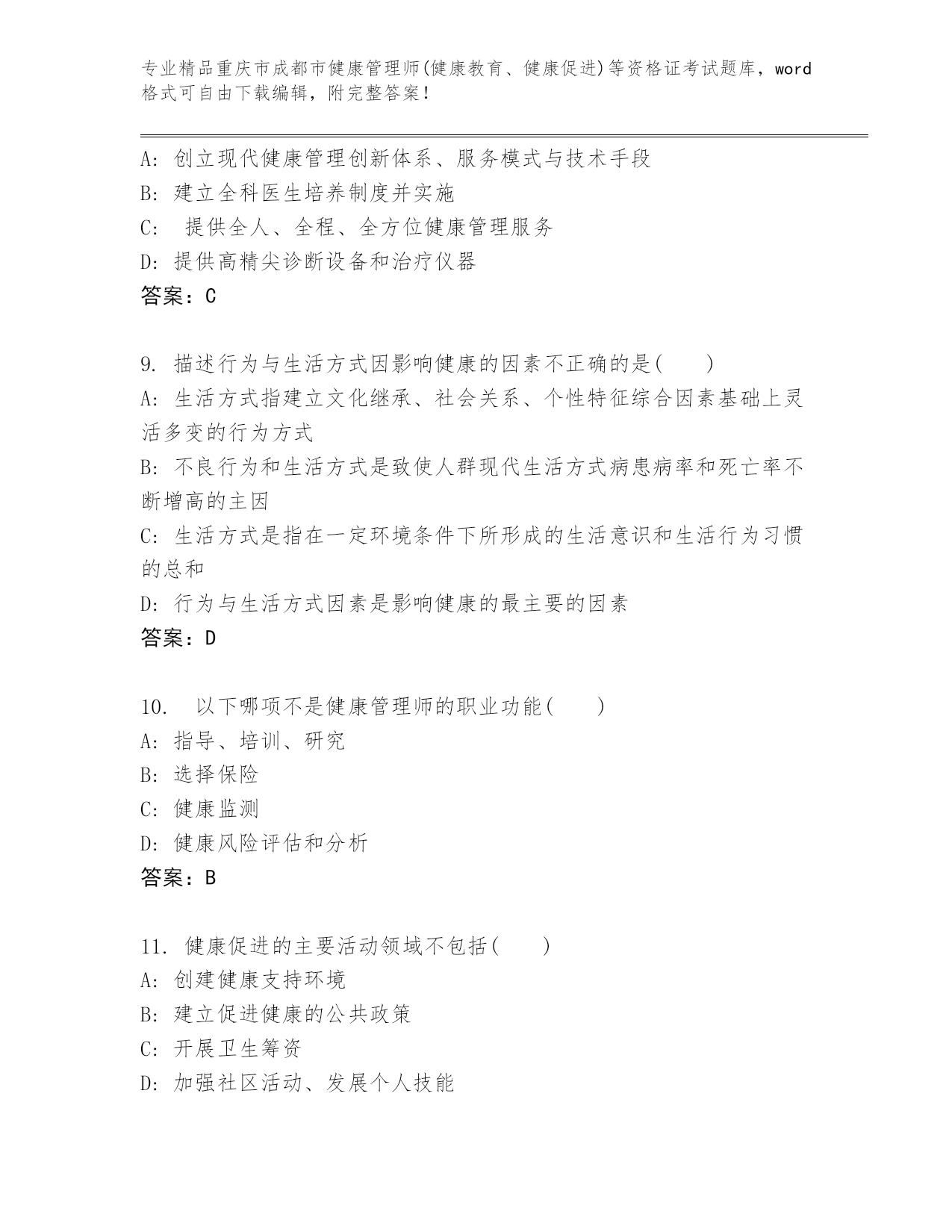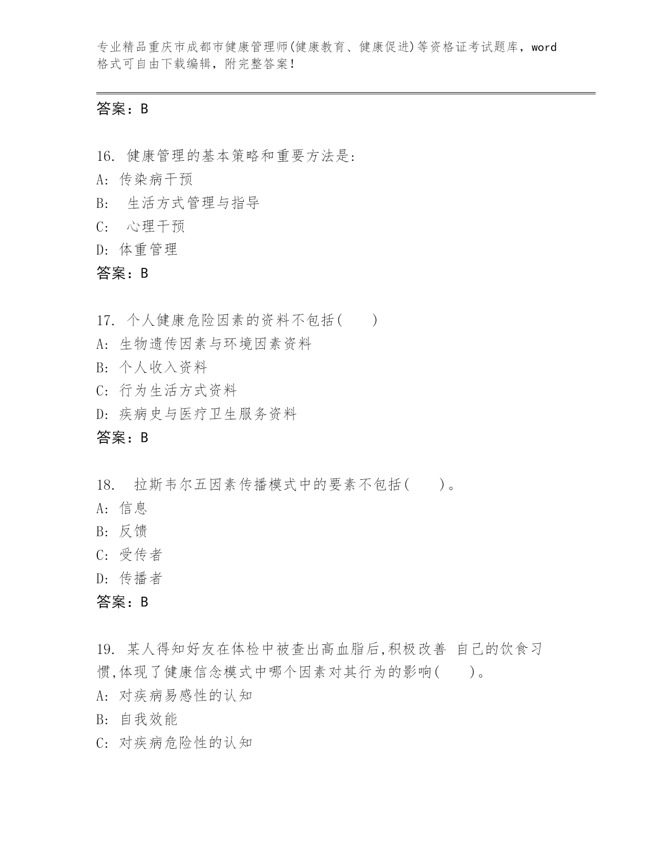 精品重庆市成都市健康管理师(健康教育、健康促进)等资格证考试带答案(B卷).docx