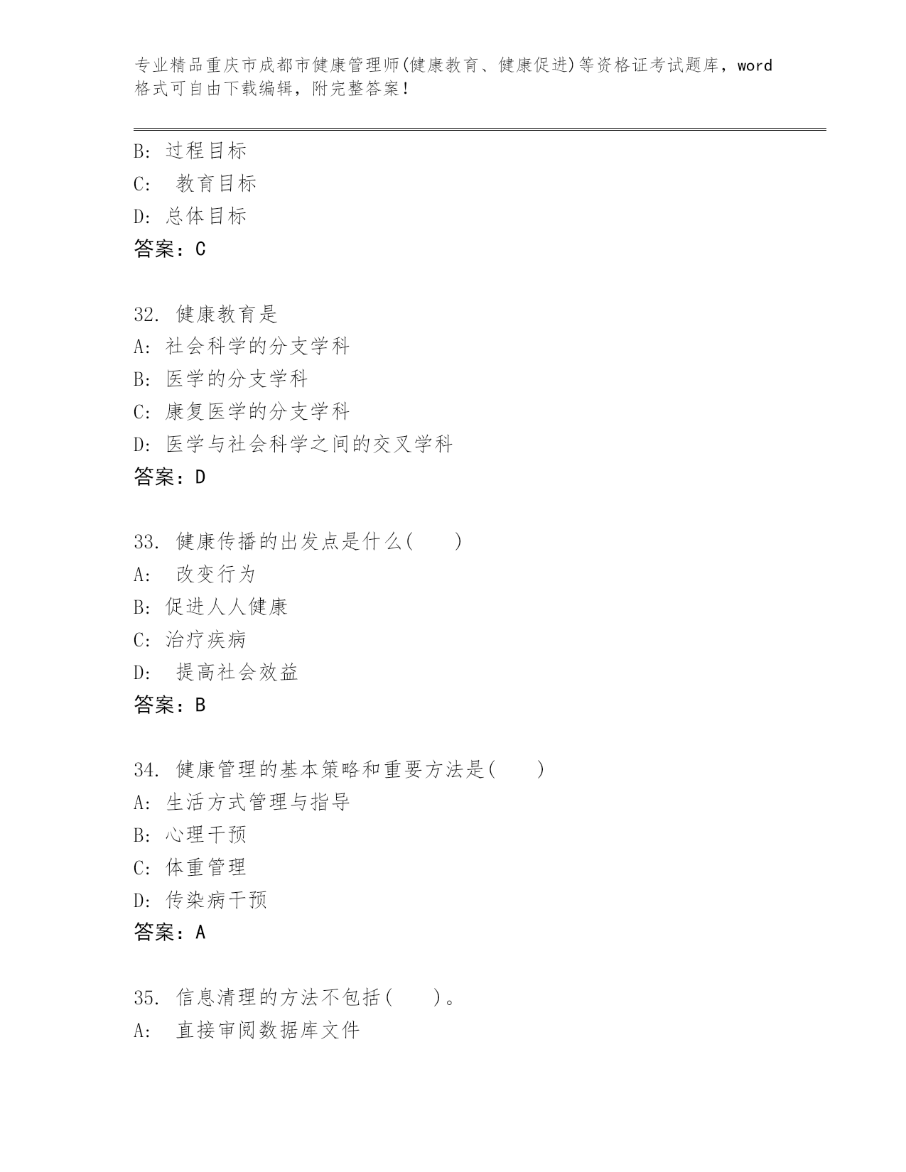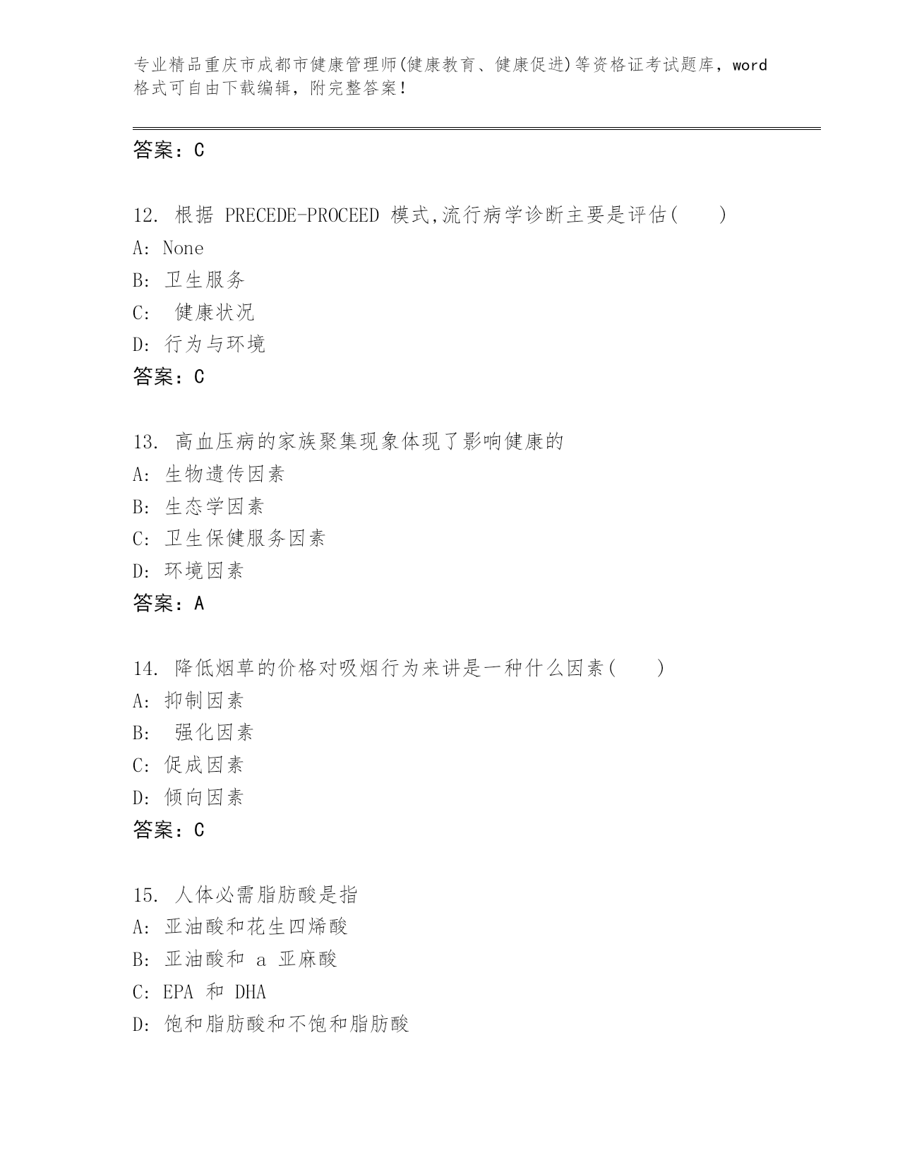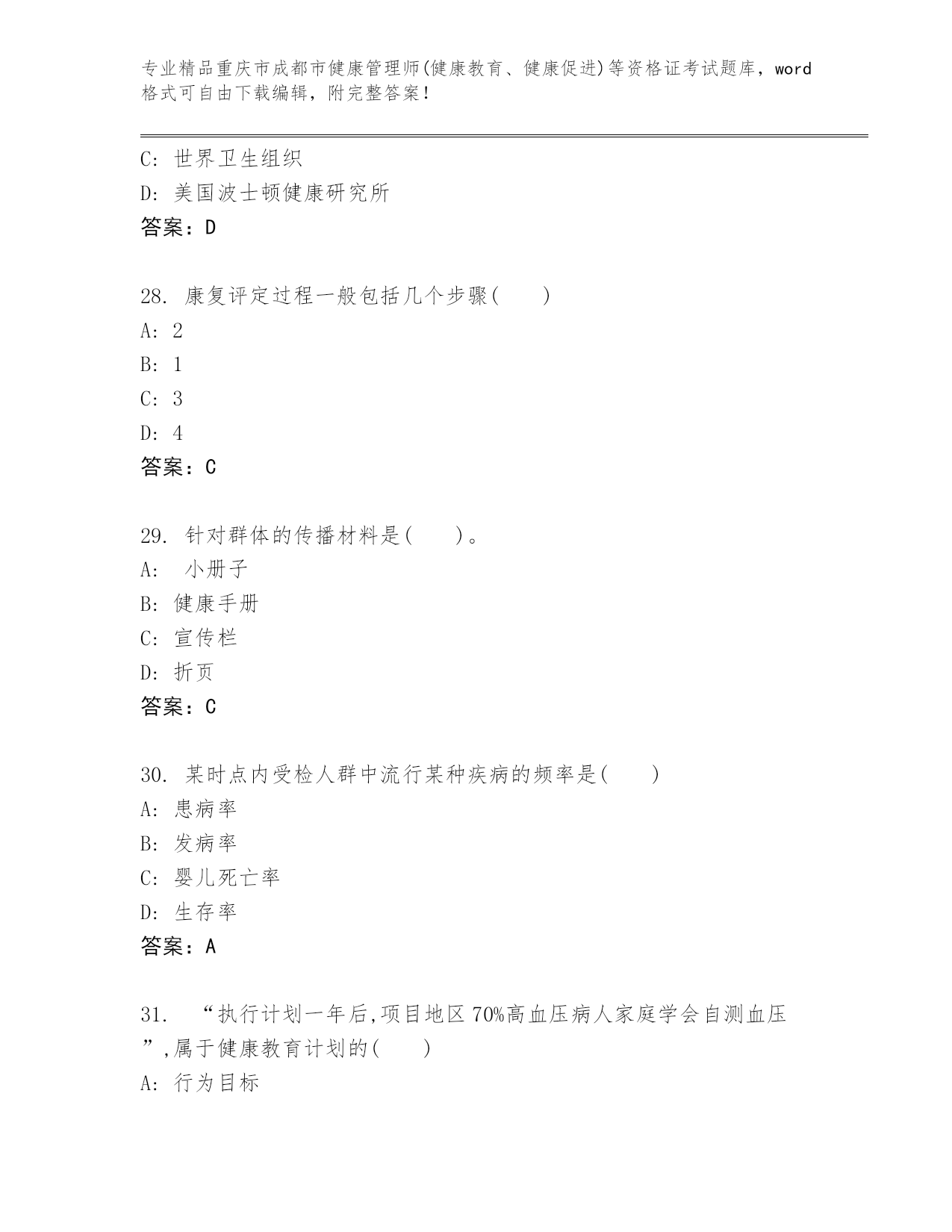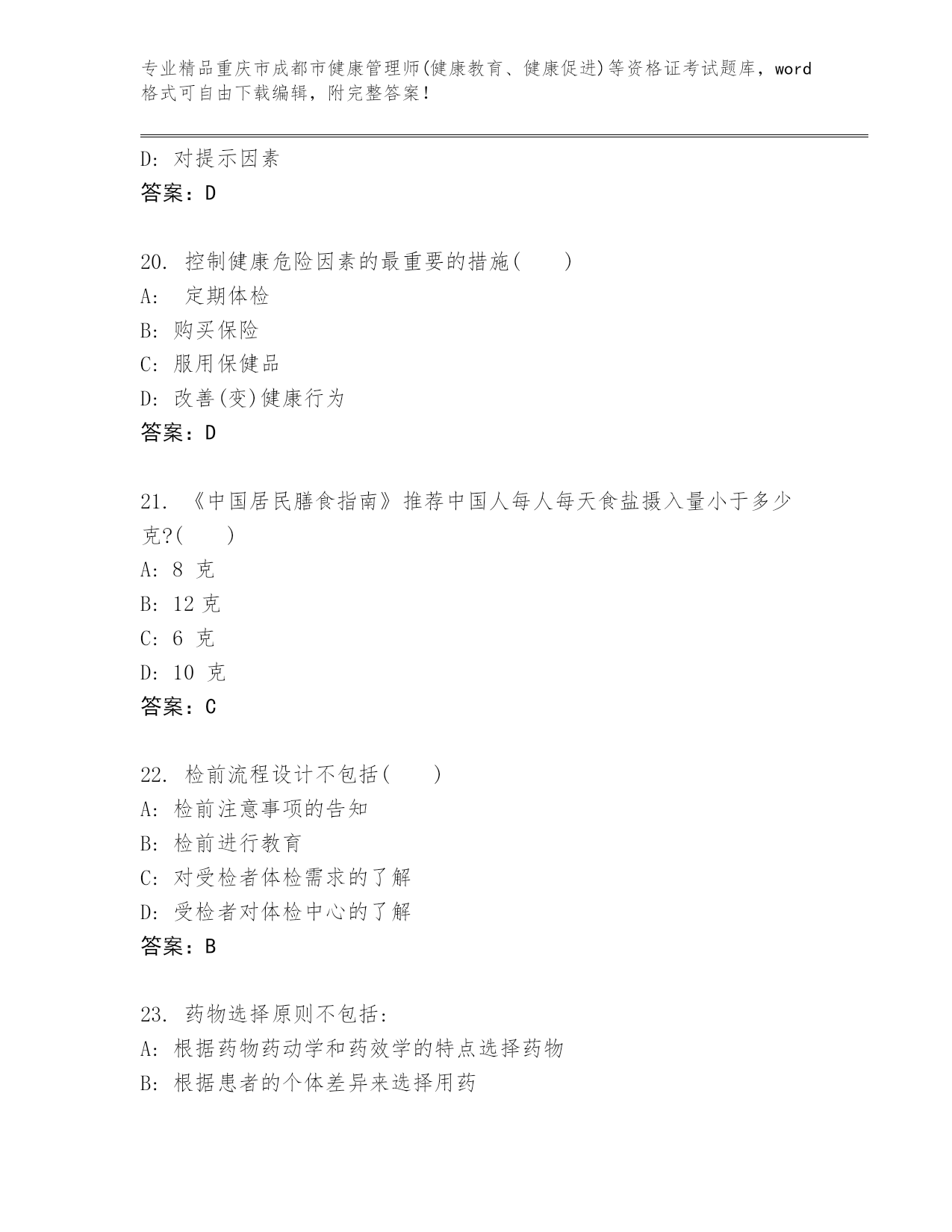 精品重庆市成都市健康管理师(健康教育、健康促进)等资格证考试带答案(B卷).docx