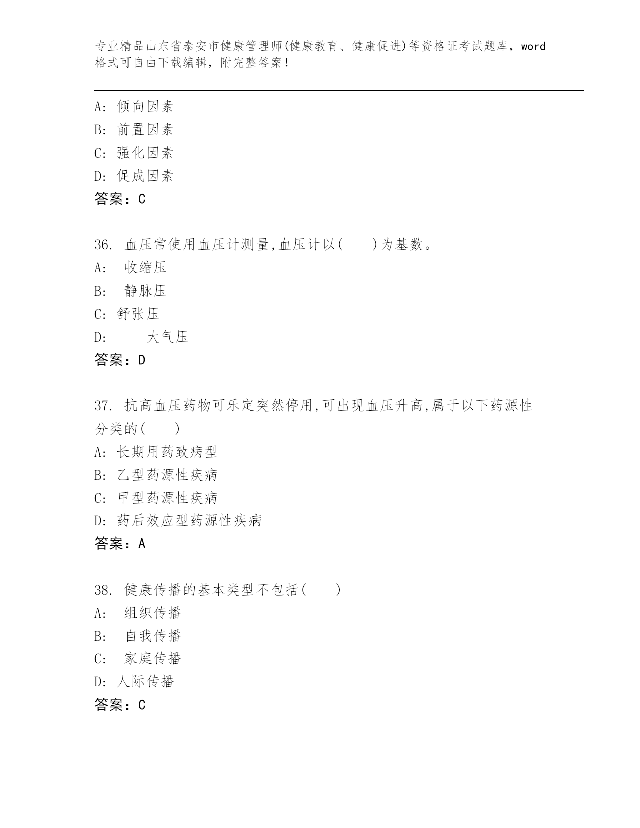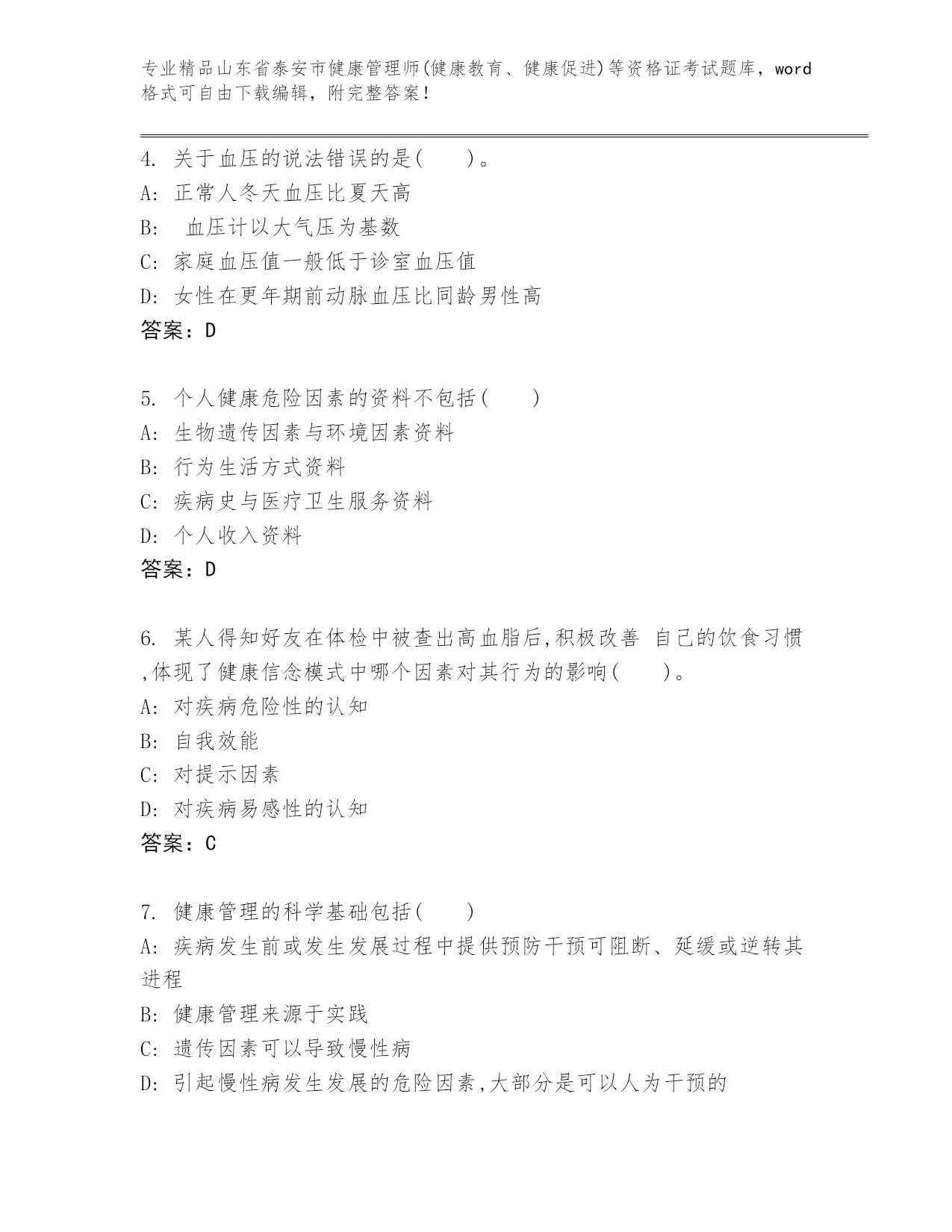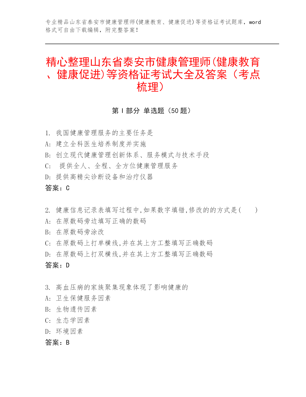 精心整理山东省泰安市健康管理师(健康教育、健康促进)等资格证考试大全及答案(考点梳理).docx