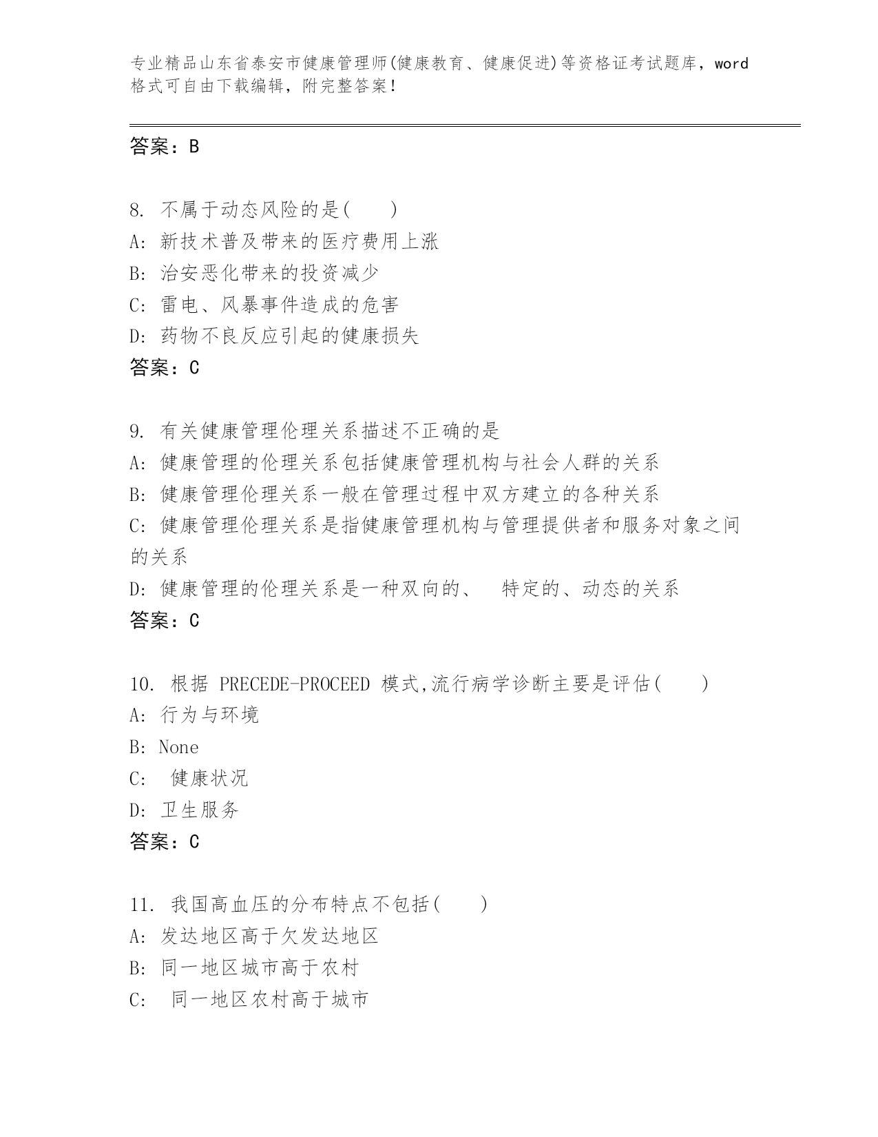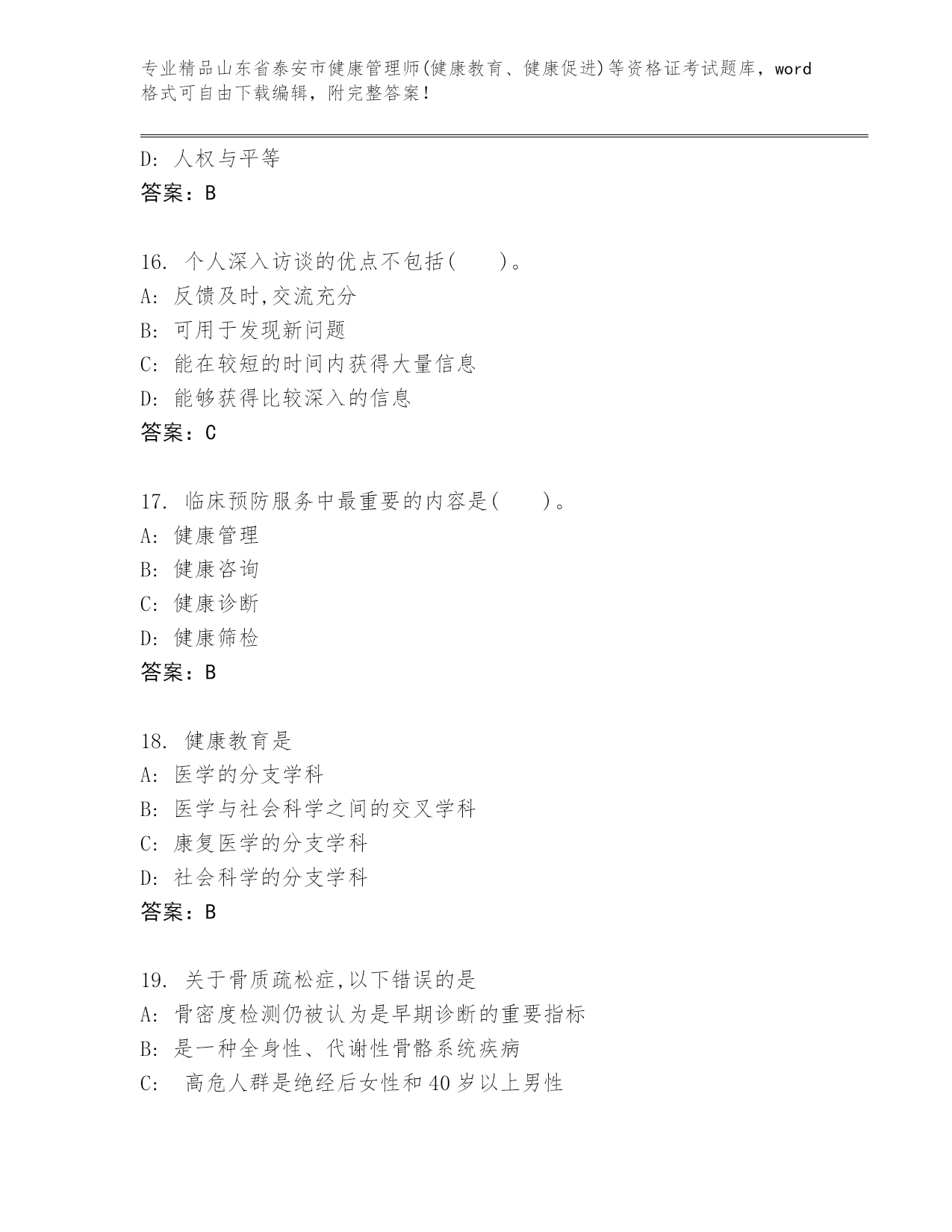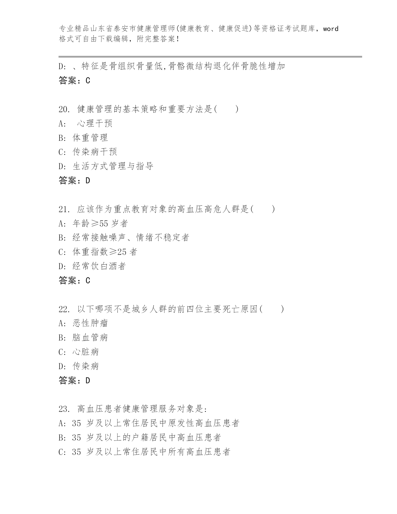 精心整理山东省泰安市健康管理师(健康教育、健康促进)等资格证考试大全及答案(考点梳理)