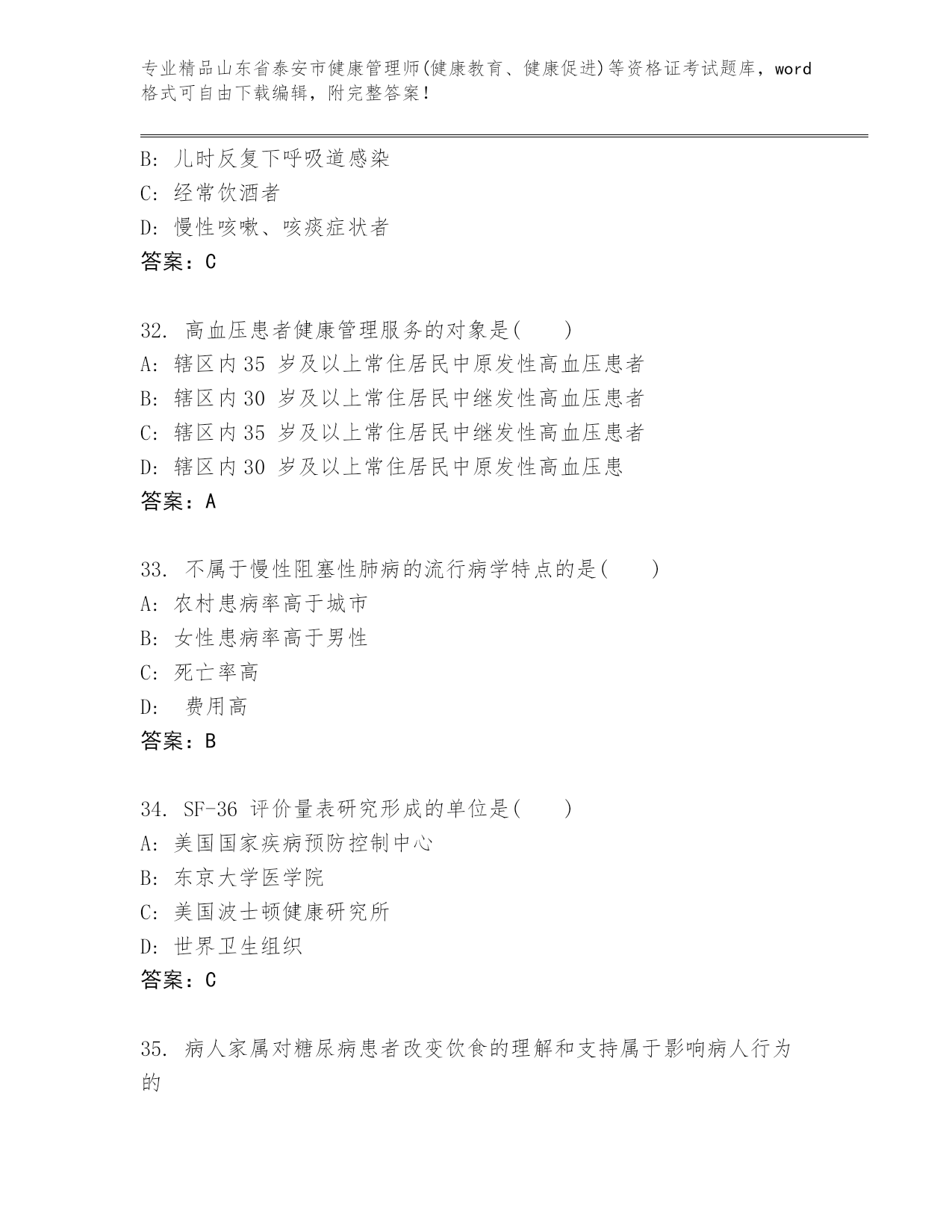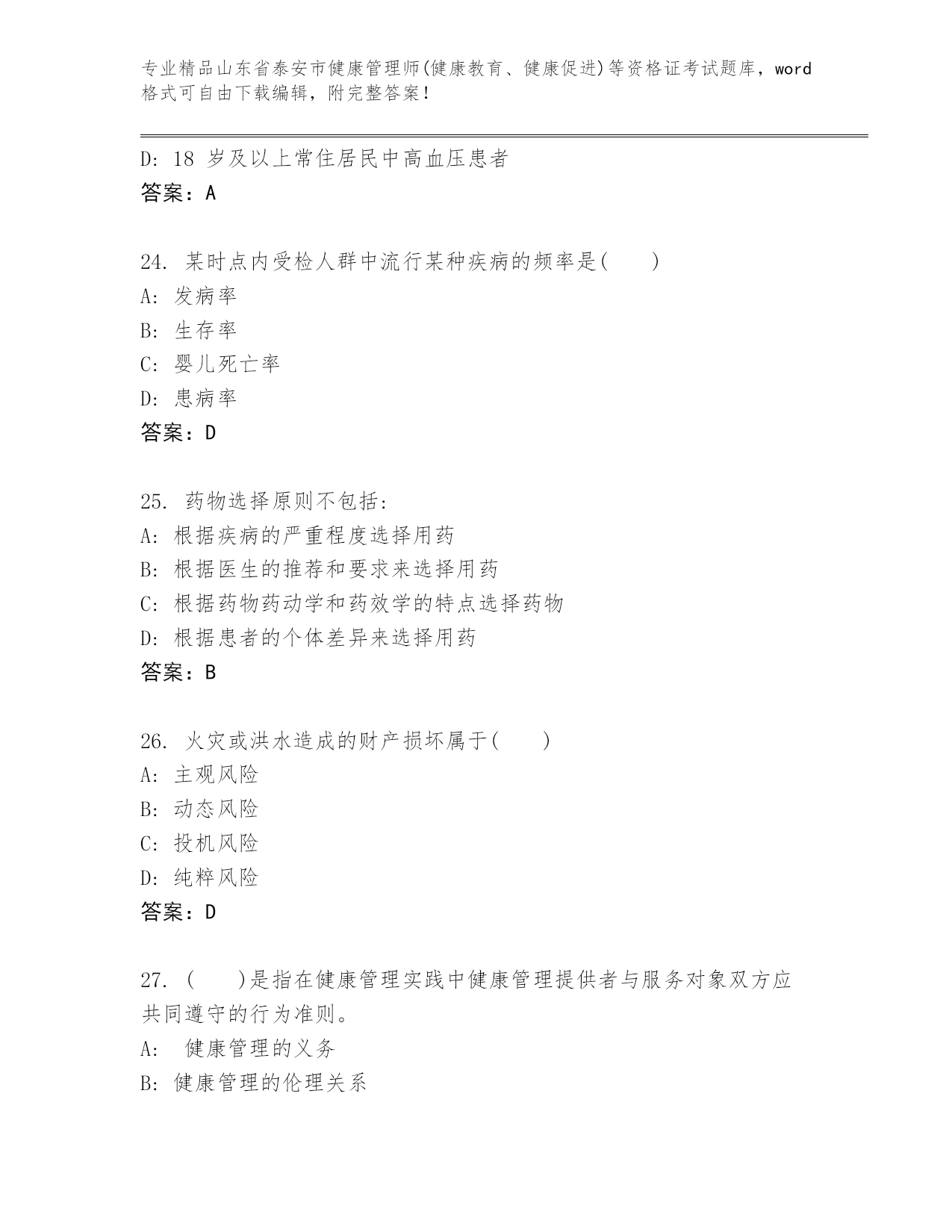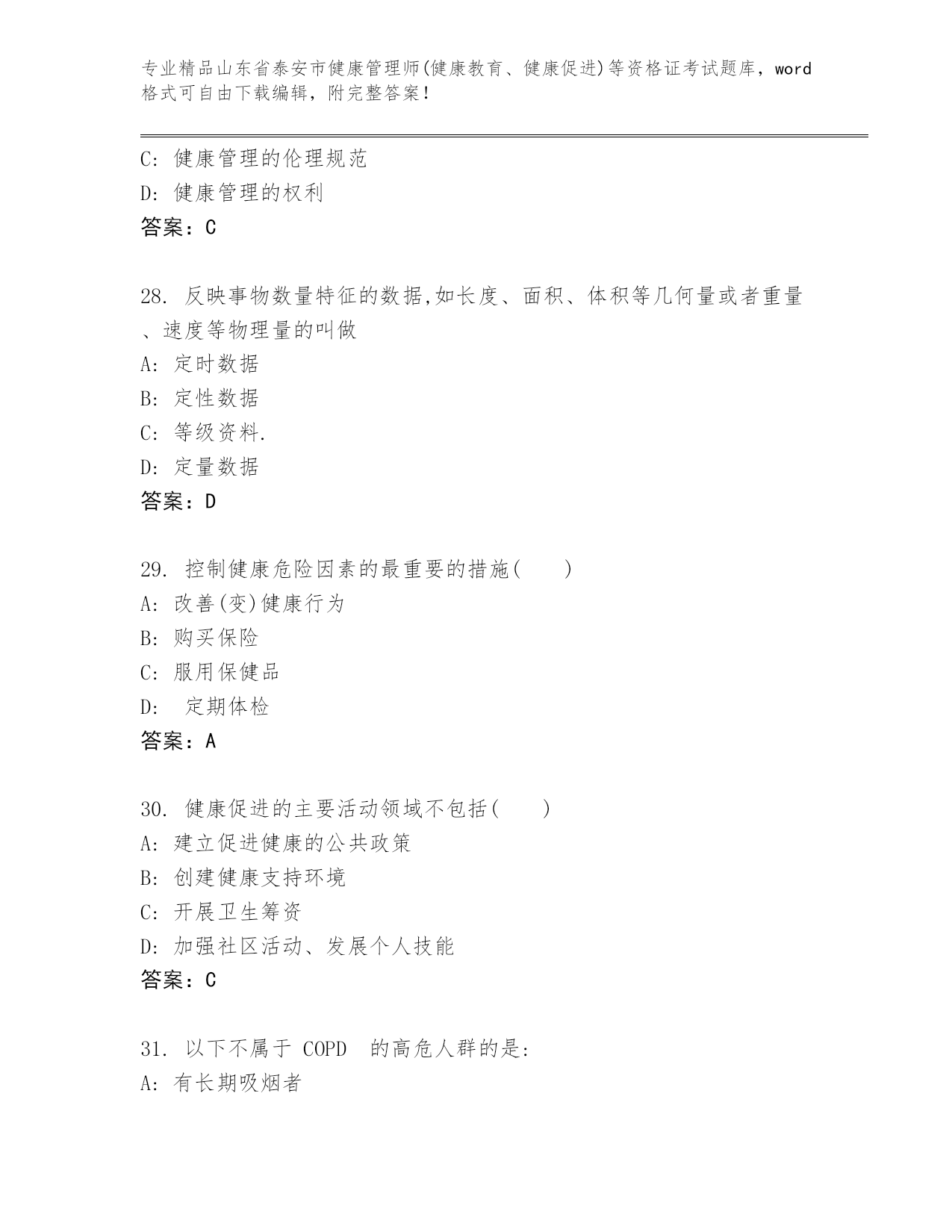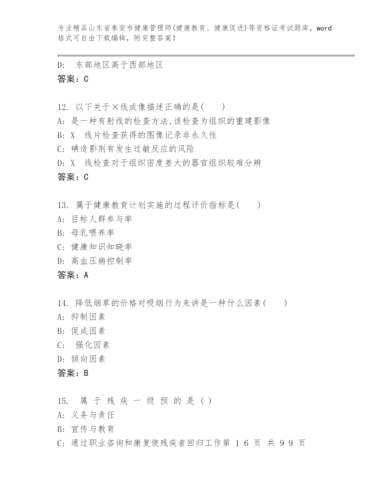 精心整理山东省泰安市健康管理师(健康教育、健康促进)等资格证考试大全及答案(考点梳理)