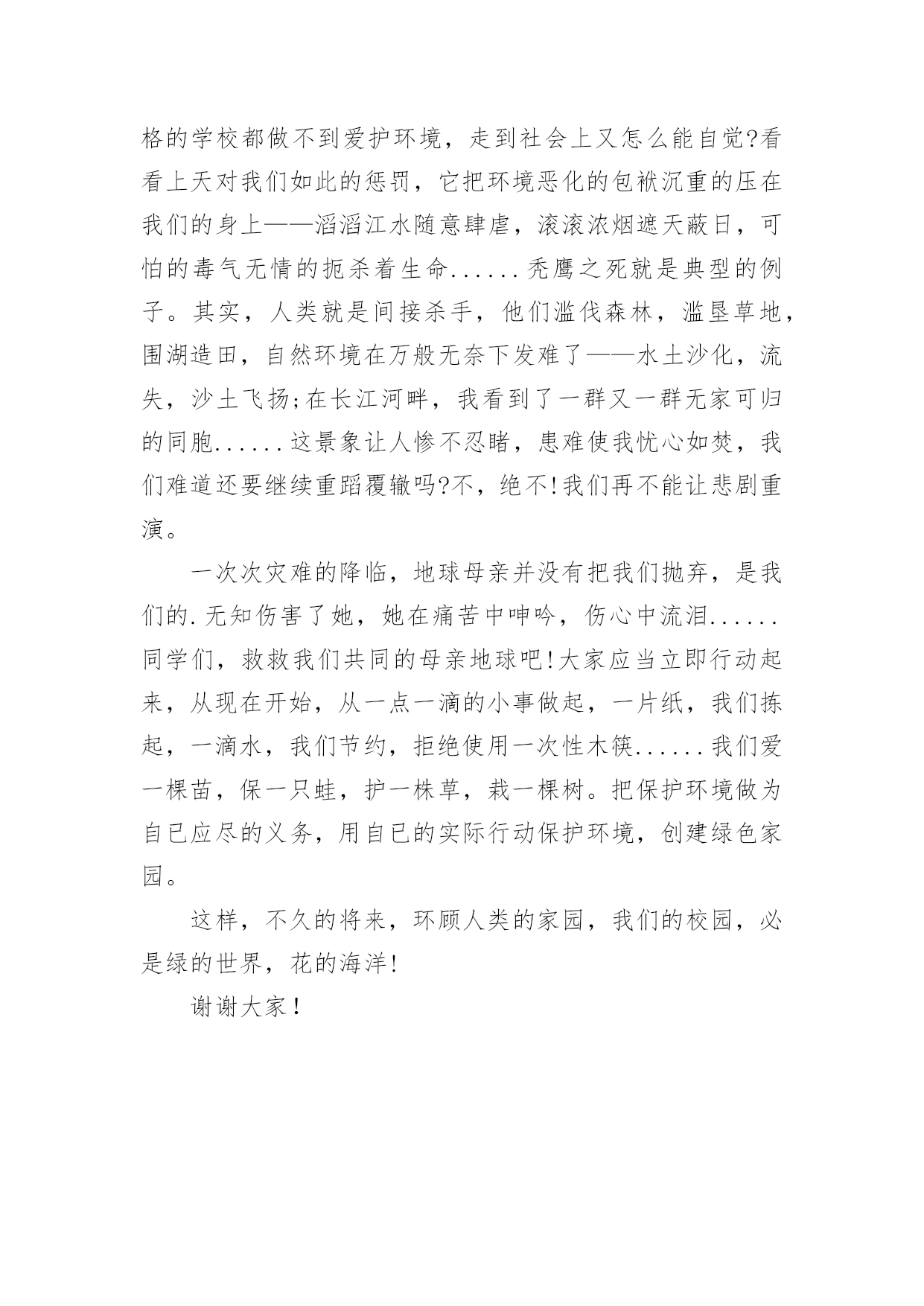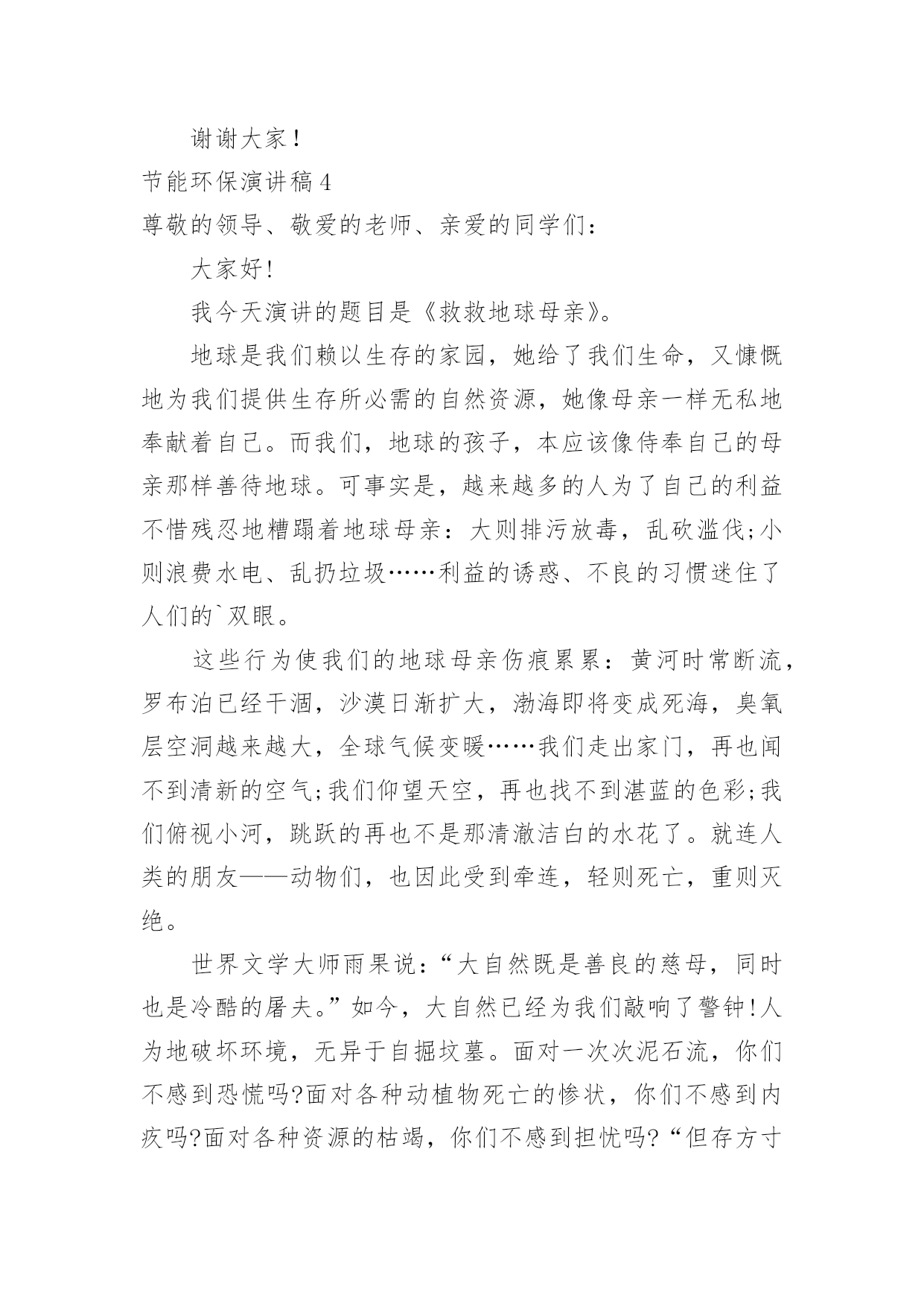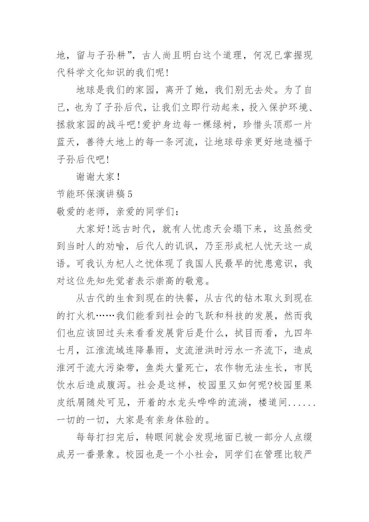节能环保演讲稿节能环保演讲稿演讲稿要求内容充实,条理清楚,重点突出。现如今,越来越多人会去使用演讲稿,还是对演讲稿一筹莫展吗?以下是小编收集整理的节能环保演讲稿,仅供参考,欢迎大家阅读。节能环保演讲稿1亲爱的同学们:大家好!虽然我对低碳理解的不是很深,但爸爸妈妈对我说,低碳主要是指减少二氧化碳的排放,是一种节能、环保的生活方式。低碳的生活离我们每个人都很近,在日常生活中从自己做起,从小事做起,节约能源,就是低碳生活。我想,节水是节能,也是一种低碳生活吧。在学校开展“环保小卫士”活动时,有一天放学回家,我去卫生间洗手,妈妈看见了说:“你把水管开大点,这样洗得干净。我说:妈妈,我们学校正在开展”环保小卫士“活动,要节约用水,现在有很多人用不上清洁的水,我们大家都应该省着点用”。妈妈高兴的对爸爸说:我们的孩子长大了,就是不一样,你看她现在多懂事,都知道节约用水了。有一次,妈妈把洗米后的水倒进一个小水桶里,我觉得很奇怪,就问妈妈:“妈妈,您为什么不把洗米水倒掉,反而倒到水桶里呢?”妈妈说:“这水还是比较干净的.,等下可以用来洗碗呀!这是跟你学的呀”。从那以后,我们全家都注意节约用水,洗脸的水再用来洗脚,洗衣服的水再用来涮抹布,擦地板,然后这些废水还可以再冲马桶;洗完菜的水可再来浇花。我们全家人都养成了节约用水的好习惯。我们大家一定都看过这样的一则公益广告吧:电视画面上有一个水龙头,正在艰难的往外滴着水,滴水的速度越来越慢,最后水就枯竭了。然后画面上上出现了一双眼睛,从眼中流出了一滴泪水。随之出现的是这样一句话:“如果人类不珍惜水,那么我们能看到的最后一滴水将是我们自己的眼泪。”水是生命之源,生命之本。我们要珍惜每一滴水。为共同建设好我们的美好家园而努力吧。谢谢大家!节能环保演讲稿2尊敬的各位领导,敬爱的老师,亲爱的同学们:早上好!水是生命之源,是人类赖以生存和发展源泉。在当今世界面临的人口、资源与环境三大问题面前,水资源是不可替代的重要资源。没有水,一切生命都将消失。一方面,中国的淡水资源就不够丰富;另一方面,用水的.浪费,水质的严重污染,使得可用淡水更加紧张。从上个世纪80年代以来,中国的缺水现象由局部逐渐蔓延至全国,对农业和国民经济带来了严重影响。据统计,在正常年景下,中国缺水总量估计已达400亿立方米,“十五”期间,农田受旱面积年均达到3。85亿亩,平均每年因旱减产粮食350亿公斤。全国农村有3。2亿人饮水不安全。如果每人节约一立方米的水,全中国十四亿人就节约了十四亿立方米的水。人多力量大,每人节约一小滴水,全中国就能节约出一片河流,一个大江。可以毫不夸张地说,我们每个人的手里都紧握着珍贵的“资源”,掌握着对这些民族发展“命脉”生杀予夺的权力,成之毁之、爱之损之在于我们每个人的行动。“世界水日”和“中国水周”主题分别是“卫生用水”和“加强节约和保护,实现水资源的可持续利用”。看着这样的主题,我们不禁想起那句警世名言:如果我们不珍惜宝贵的水资源,那么地球上最后的一滴水很有可能就是我们的眼泪!水资源,人类社会共同面临的“危机”节约用水,人人有责。只有大家都注意节水了,水荒才能远离我们,生活才会安定和谐,环境将会优美舒适。我们青少年明白这些道理以后,不但要自己身体力行,还要做好宣传工作,告诉亲朋好友,让大家都来养成节水美德。谢谢大家!节能环保演讲稿3敬爱的老师,亲爱的同学们:你们好!节能减排这个词对于我们来说并不陌生,但真正能理解这个词并做到的有多少人呢?在上幼儿园时,教师就常常教育我们:“用完记得关水龙头,上完厕所要关灯,不要踩花草树木……”所以,我们在小的时候就只到了节俭的意思。可随着我们年龄不断增长,节能减排好像在我满身边愈来愈少见了。上完厕所不关灯,洗完手不关紧水龙头,乱踩花草树木,不关电脑……似乎已经是我们的一种习惯,一件不可缺少的事了。在很多人看来,这已经是见怪不怪了“只要多花几个钱就够了”可是,这些天然资源,一旦没有人类就无法生存,就会给我们的子孙带来无穷的`灾难。所以,我们要做到节能减排,节俭一些,环保一些,也许我们也会更幸福一些!许多人认为,中国地大物博,浪费一点不算什么,但当我们看到一些数据后,我们傻了眼。每个人浪费一点点,总共算算就会浪费不少不少。当我们在吃饭喝水时,在干旱地区,那里的人也许连一口水也喝不上;正当在我们玩电脑看电视时,贫困地区的孩子可能正在点着蜡烛写作业……朋友们,如果我们每个人都来节省一点点,你想我国的资源能够多用多少年,能够够给多少人用呢?为了环境,生态,也为了人类的生存空间,为了子孙,让我们共同努力节能、节水、节地、节粮、节材吧!“同一个地球,同一个家园。我们仅有一个地球,别让地球上的最终一滴水将是人类自我的眼泪”这句话成为现实!从你我做起,从点滴做起,让我们重现碧水蓝天。谢谢大家!节能