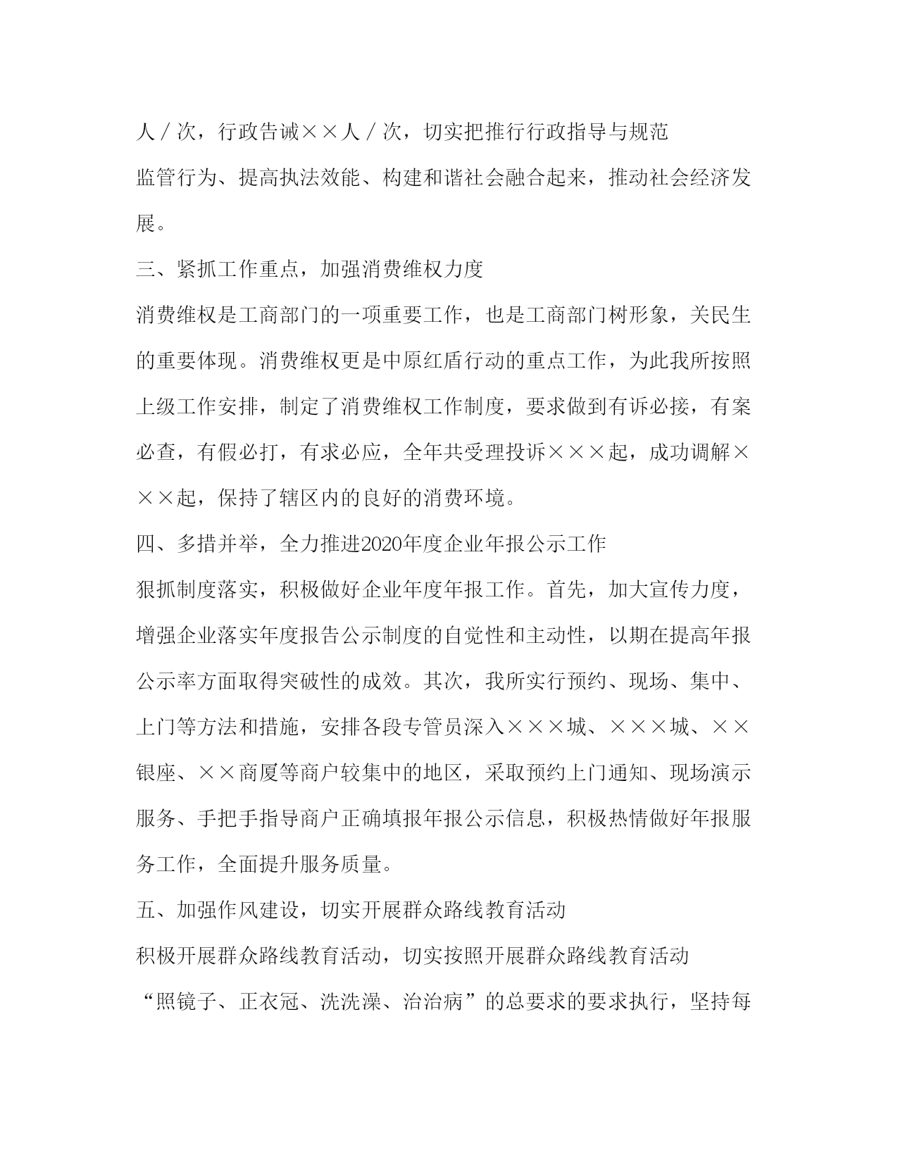 PAGE此资料由网络收集而来,如有侵权请告知上传者立即删除。资料共分享,我们负责传递知识。工商局年终工作总结篇一:2020年工商所工作总结工商所2020年工作总结今年,我所在分局的正确领导下,在机关各部门的支持下,不断解放思想,切实履行服务发展、市场监管和行政执法职责,求真务实,开拓进取。经过全年的努力工作,我所较好地完成了分局的各项工作部署,实现了年初的既定工作目标,现将工作情况总结如下:一、提升服务,促进地方经济发展主动服务市场主体,积极推行了首问负责制、服务承诺制等各项服务制度,通过所综合服务大厅这个窗口积极宣传国家法律法规及有关优惠政策,实行对外办理营业执照与提供咨询服务相结合。全年共受理登记×××件,其中开业登记×××起,提供咨询×××起,受到了广大经营户的好评。二、加强监管,促进各项职能到位1、加强食品监管,确保食品安全。食品是与人民群众生活密切相关的重点品种,我所继续保持对流通领域食品市场进行重点监管,以商场、超市、集贸市场和食品经营商户为重点场所,以小食品店、小摊点等为重点对象的日常化监管。全年,查处过期食品×××余袋,罚没金额×××万元,确保了广大消费者的消费安全。2、加大查处无照经营力度,营造良好的经营环境。我所始终将此项工作作为日常监管工作的重点,常抓不懈。在对各类市场无照经营户的查处取缔工作中,以教育和引导为主,对下岗职工、残疾人等弱势群体无照经营且无重大危害行为,督促和引导其办理相关手续,做到合法经营,全年共查处取缔无照经营××户,引导办照×××户。3、打击非法传销活动,促进职能到位。在打击传销工作中,我所制定了专门的传销排查表,每月联合社区对辖区进行全面排查一次。我所要求全体同志扎扎实实做好打击传销和变相传销违法行为的工作,面对危险、困难党员和干部冲锋在前,发挥模范带头作用。在专项行动的同时我所把食品安全社会监督员、12315消费投诉网点、廉政社会监督员等制度紧密结合起来,将其整合扩展为双向的信息流通网络,使管理的触角深入辖区的各个角落。4、认真落实行政指导,积极推进依法行政。我所按照上级行政指导的工作部署,加强市场主体监管,多次走入市场,听取经营者的意见和建议,帮助他们解决实际困难。通过行政提醒、建议,督促行政相对人依法履行义务。对某一易发违法违规行为,以口头或书面形式向行政相对人宣传、解释法律法规规章,提前告知各项监管要求,提示、引导、督促其按照法律法规及政策要求履行自己的义务,尽可能减少违法违规行为的发生。今年我所行政提醒××人∕次,行政建议××人∕次,行政告诫××人∕次,切实把推行行政指导与规范监管行为、提高执法效能、构建和谐社会融合起来,推动社会经济发展。三、紧抓工作重点,加强消费维权力度消费维权是工商部门的一项重要工作,也是工商部门树形象,关民生的重要体现。消费维权更是中原红盾行动的重点工作,为此我所按照上级工作安排,制定了消费维权工作制度,要求做到有诉必接,有案必查,有假必打,有求必应,全年共受理投诉×××起,成功调解×××起,保持了辖区内的良好的消费环境。四、多措并举,全力推进2020年度企业年报公示工作狠抓制度落实,积极做好企业年度年报工作。首先,加大宣传力度,增强企业落实年度报告公示制度的自觉性和主动性,以期在提高年报公示率方面取得突破性的成效。其次,我所实行预约、现场、集中、上门等方法和措施,安排各段专管员深入×××城、×××城、××银座、××商厦等商户较集中的地区,采取预约上门通知、现场演示服务、手把手指导商户正确填报年报公示信息,积极热情做好年报服务工作,全面提升服务质量。五、加强作风建设,切实开展群众路线教育活动积极开展群众路线教育活动,切实按照开展群众路线教育活动“照镜子、正衣冠、洗洗澡、治治病”的总要求的要求执行,坚持每周一学习,一月一总结,每人建立学习笔记,摆正学习态度和方式,开展自查自纠,互查互纠,将问题摆上“桌面”批评、纠正、改过。不护短,不遮掩。让同志们切实认识到群众路线教育活动不是走过场,真正把问题整改到位。篇二:工商局个人工作总结篇一:工商所年度个人工作总结工商所年度个人工作总结我于2020年1月进入**工商所工作,一年来在局领导及所领导的正确带领下,在同志们的大力支持下,按照上级的各项工作要求,认真贯彻开展工作,现将我一年来的工作情况作如下汇报:一、加强理论学习,提高理论素养加强理论学习,提高理论水平和解决实际问题的能力,在改造客观世界的同时改造主观世界,是新时期对干部的基本要求。由于自己从事工作的性质和任务对学习和了解掌握的新知识有着更高的要求,要做好本职工作,就必须首先自己用理论武装头脑,吃透上级精神,领会精神实质。坚持每天阅读各类文章,并认真做好读书笔记,努力做到融汇贯通,联系实际,举一
