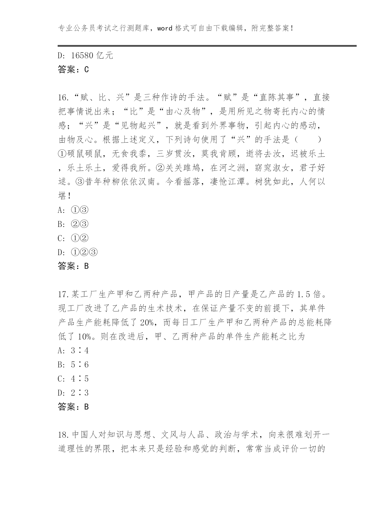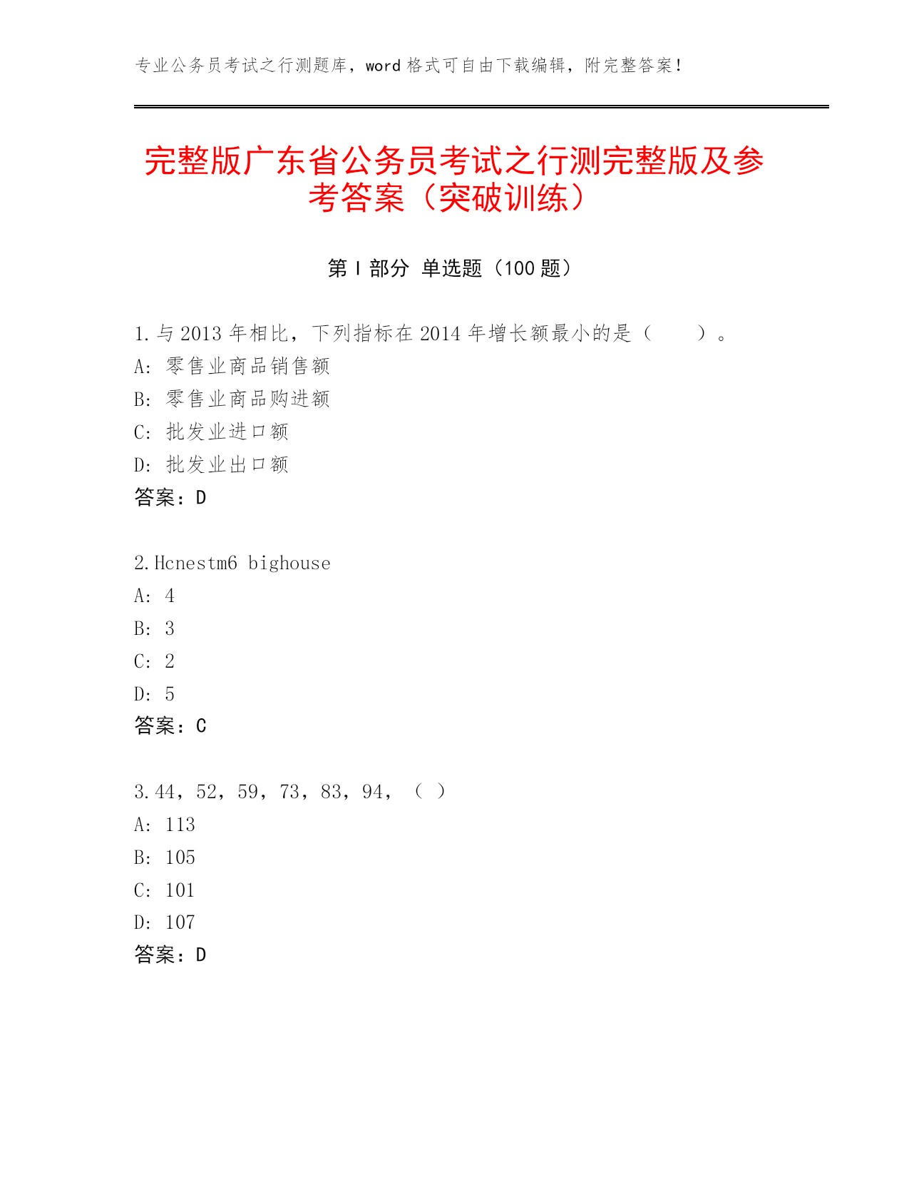 完整版广东省公务员考试之行测完整版及参考答案(突破训练).docx
