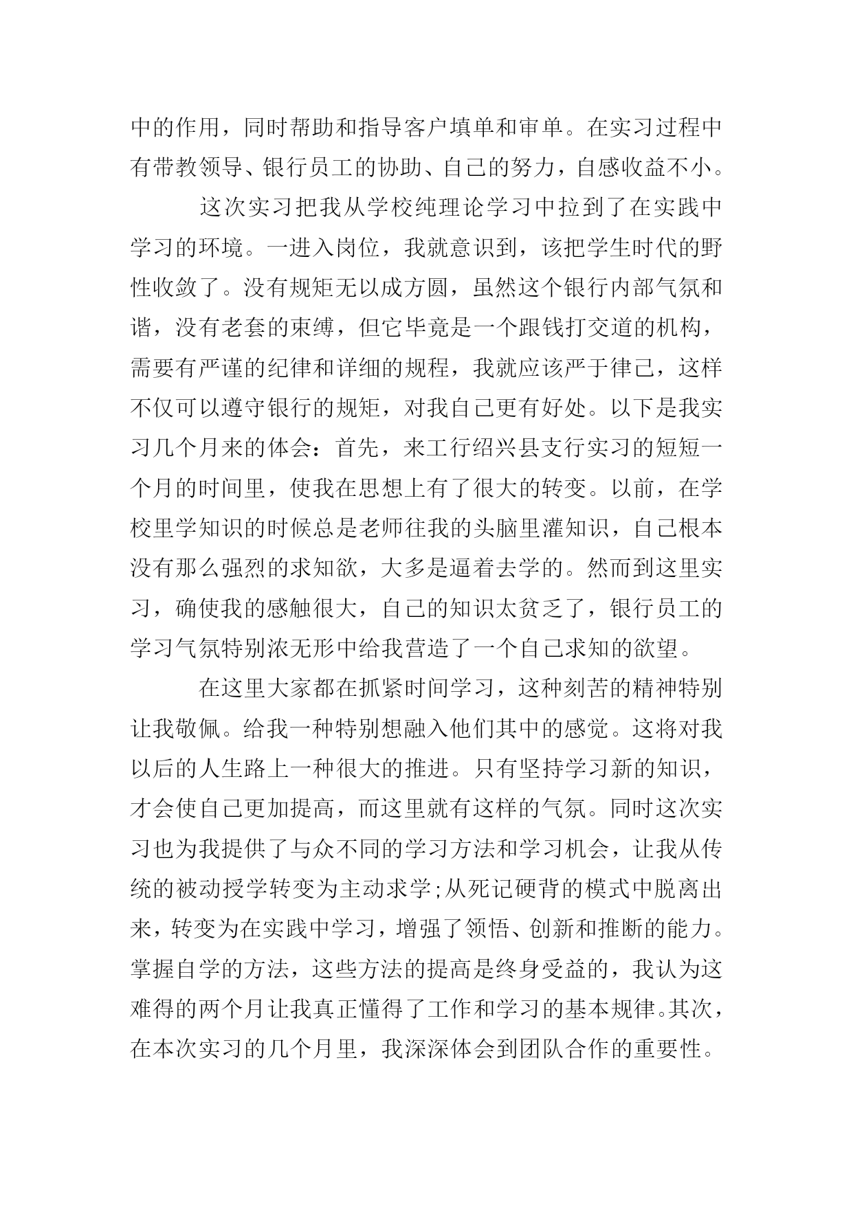 工商银行实习鉴定工商银行实习鉴定篇一我叫XXX,是一名来自XX学院XX专业的学生。这几个月,我有幸来到中国工商银行绍兴县支行国际部和会计处实习。作为报告开头,我想先介绍一下工行一些基本情况。中国工商银行是四大国有独资商业银行之一,拥有分支机构2万多个,是中国资产规模最大的商业银行,20xx年末资产总额近53000亿元人民币,占中国境内银行业金融机构资产总和的近五分之一。而工行绍兴县支行在20xx年浙江省工行系统县级支行的收益排名中位列第二,其中很大一部分是得益于国际业务,这主要是因为当地对外轻纺贸易较为发达。因此我在完成了会计处的实习任务之后,还到国际部进行了短时间的实习,以期更全面的了解银行的核心业务。在会计处实习的时间里,我主要学习了综合业务处理系统,熟悉了银行的会计科目,基本掌握了该系统的记账和复核的操作,并能独立处理同城交换、证券清算和外汇核算。通过看、问和动手操作,我对会计处的主要工作有了更加系统的了解,特别是支票汇票等,在实习之前,我只从书上学到过它的基本概念,对真正的票据并没有具体的认识。现在我已经大致明白了审票和解付的过程。而在国际部实习的时间里,我边干边学,发现其实大部分知识已在《国际结算学》中学过,我所要做的就是熟悉各种票据,掌握它们在国际贸易中的作用,同时帮助和指导客户填单和审单。在实习过程中有带教领导、银行员工的协助、自己的努力,自感收益不小。这次实习把我从学校纯理论学习中拉到了在实践中学习的环境。一进入岗位,我就意识到,该把学生时代的野性收敛了。没有规矩无以成方圆,虽然这个银行内部气氛和谐,没有老套的束缚,但它毕竟是一个跟钱打交道的机构,需要有严谨的纪律和详细的规程,我就应该严于律己,这样不仅可以遵守银行的规矩,对我自己更有好处。以下是我实习几个月来的体会:首先,来工行绍兴县支行实习的短短一个月的时间里,使我在思想上有了很大的转变。以前,在学校里学知识的时候总是老师往我的头脑里灌知识,自己根本没有那么强烈的求知欲,大多是逼着去学的。然而到这里实习,确使我的感触很大,自己的知识太贫乏了,银行员工的学习气氛特别浓无形中给我营造了一个自己求知的欲望。在这里大家都在抓紧时间学习,这种刻苦的精神特别让我敬佩。给我一种特别想融入他们其中的感觉。这将对我以后的人生路上一种很大的推进。只有坚持学习新的知识,才会使自己更加提高,而这里就有这样的气氛。同时这次实习也为我提供了与众不同的学习方法和学习机会,让我从传统的被动授学转变为主动求学;从死记硬背的模式中脱离出来,转变为在实践中学习,增强了领悟、创新和推断的能力。掌握自学的方法,这些方法的提高是终身受益的,我认为这难得的两个月让我真正懂得了工作和学习的基本规律。其次,在本次实习的几个月里,我深深体会到团队合作的重要性。记得那时我在工行已独立上岗二个星期了,已不像第一次那样紧张了。那一天银行业务特别多,系统太忙,计算机运行得很慢,其中有一笔900元的取款已发生,但发票打印不出,查了流水也成功了,主管确认这笔业务已成功,至于发票只好用手工补。可到了傍晚轧帐时,发现少了900元,再次查流水时,发现那笔900元的取款还在发送途中。但当时主管也确认过了,并确认也成功了,大概是系统不好,电脑自动充值,所以才会这样。所幸该客户的帐号是在我行开户,同事们帮我查到了这个人的联系方式,主管帮我追回了900元,当时我真好感激行里的每位同事,我认识到团队合作真的是很重要。这次实习为我从各方面融会知识,为我将来的工作和生活铺垫了精彩的一幕,我认为这种改变是质的飞跃。现在实习结束了,工行绍兴县支行的领导和同事对我的成绩也给予了肯定。我也对自己的表现基本满意,为我走向社会打下了坚实的基础。与银行员工的相处中,我也学到了待人、处事的态度、方式,银行的员工待人诚恳,虽然他们年龄和我一般大,有的还要小几岁,我感觉他们很成熟,有很多值得我学习的地方,这几个月是我用金钱买不到的机会,无论从工作、学习、做人上,我都有很大的收获。我没有白来,如果有时间,希望能还有一次这样的实习机会。以上就是我实习的心得体会。最后,我衷心的感谢工行绍兴县支行的每一个人,今后我不会辜负你们的期望,把工作做得更好,对事业尽心尽责。工商银行实习鉴定篇二目前工商行正努力开发财富客户。工行财富管理服务面向个人金融资产达100万元人民币(含等值外币)的人群,实现了签约、个人风险评估、财富规划、资产管理、投资组合执行情况报告等系列服务,首先,通过财务分析和风险测评,财富客户可享受量身定制个性化的综合理财与保险方案,同时,客户经理可为其提供投资产品组合和专属的理财、保险产品,并借助基金专户理财、券商定向理财等平台,提供个性化的资产管理服务。此外,财富客户还可享受贵宾通道、费率优惠、融资便利等增值服务,有跨国理财