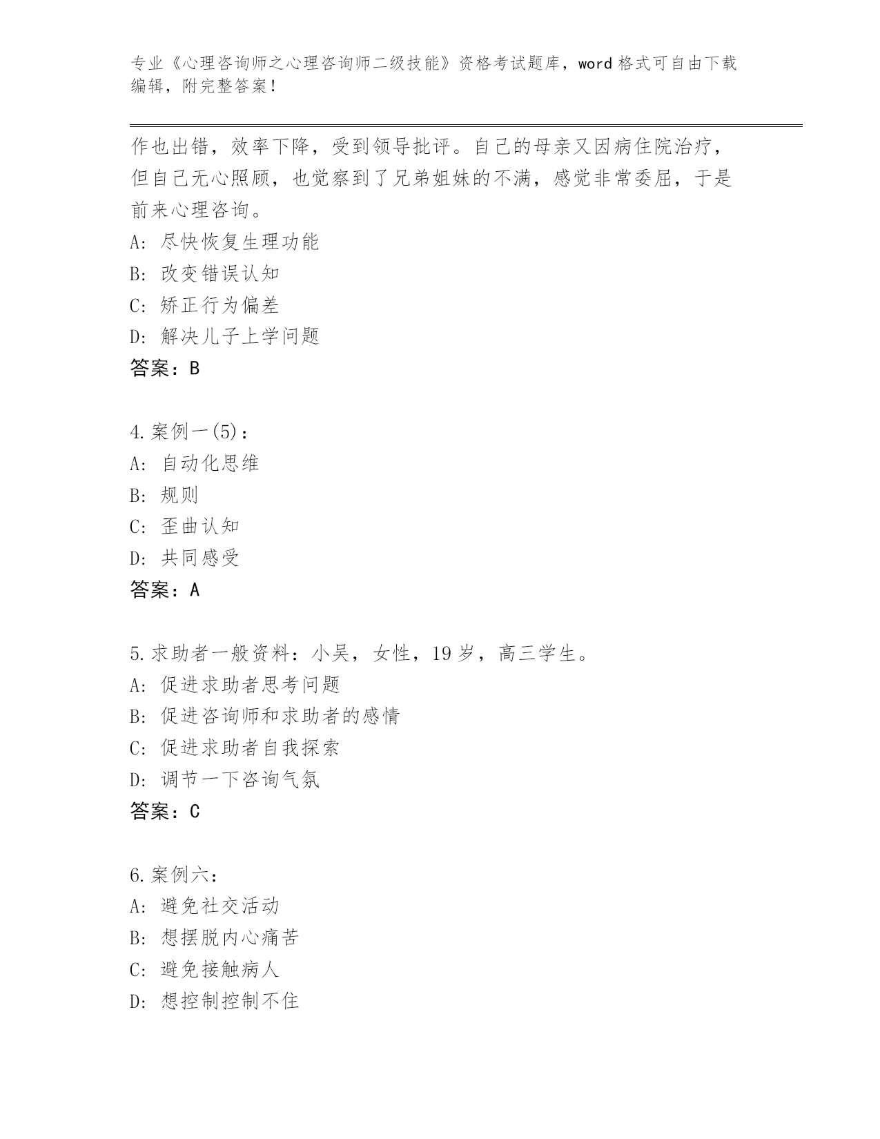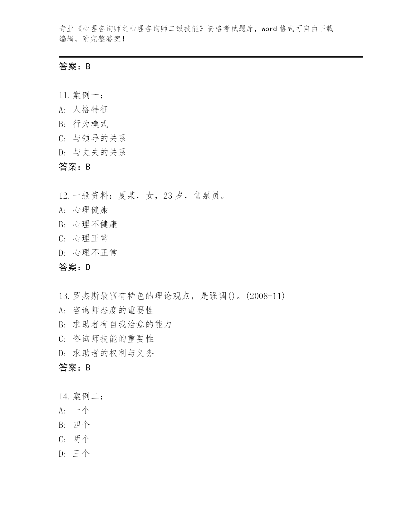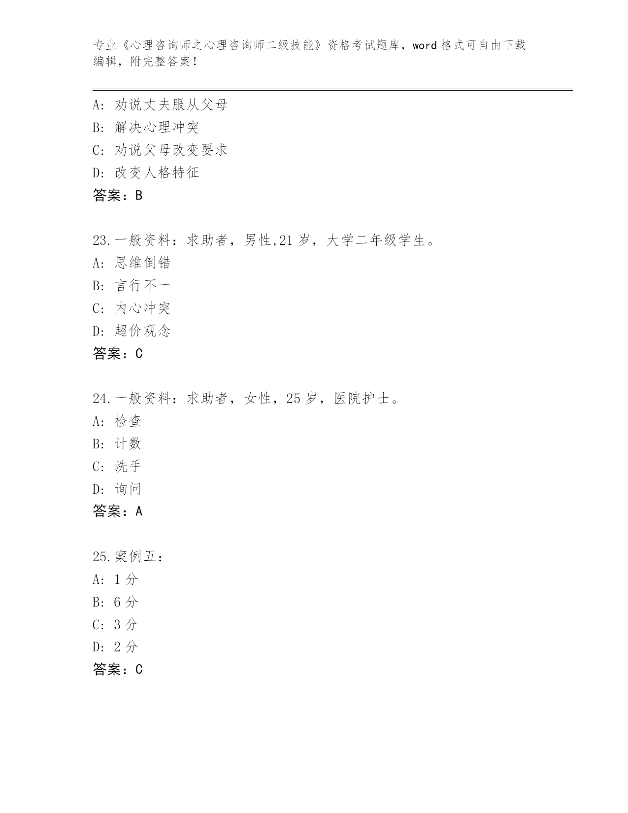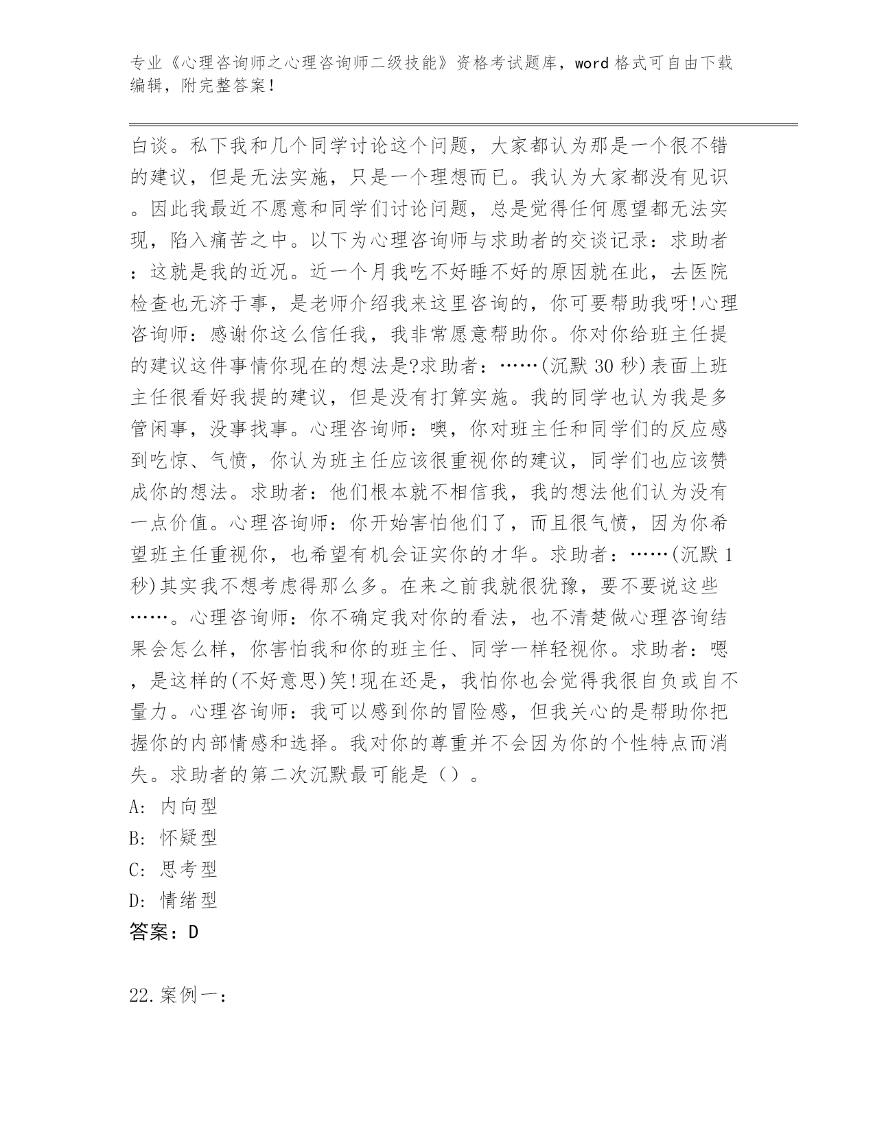 河北省2024年《心理咨询师之心理咨询师二级技能》资格考试大全(实用)