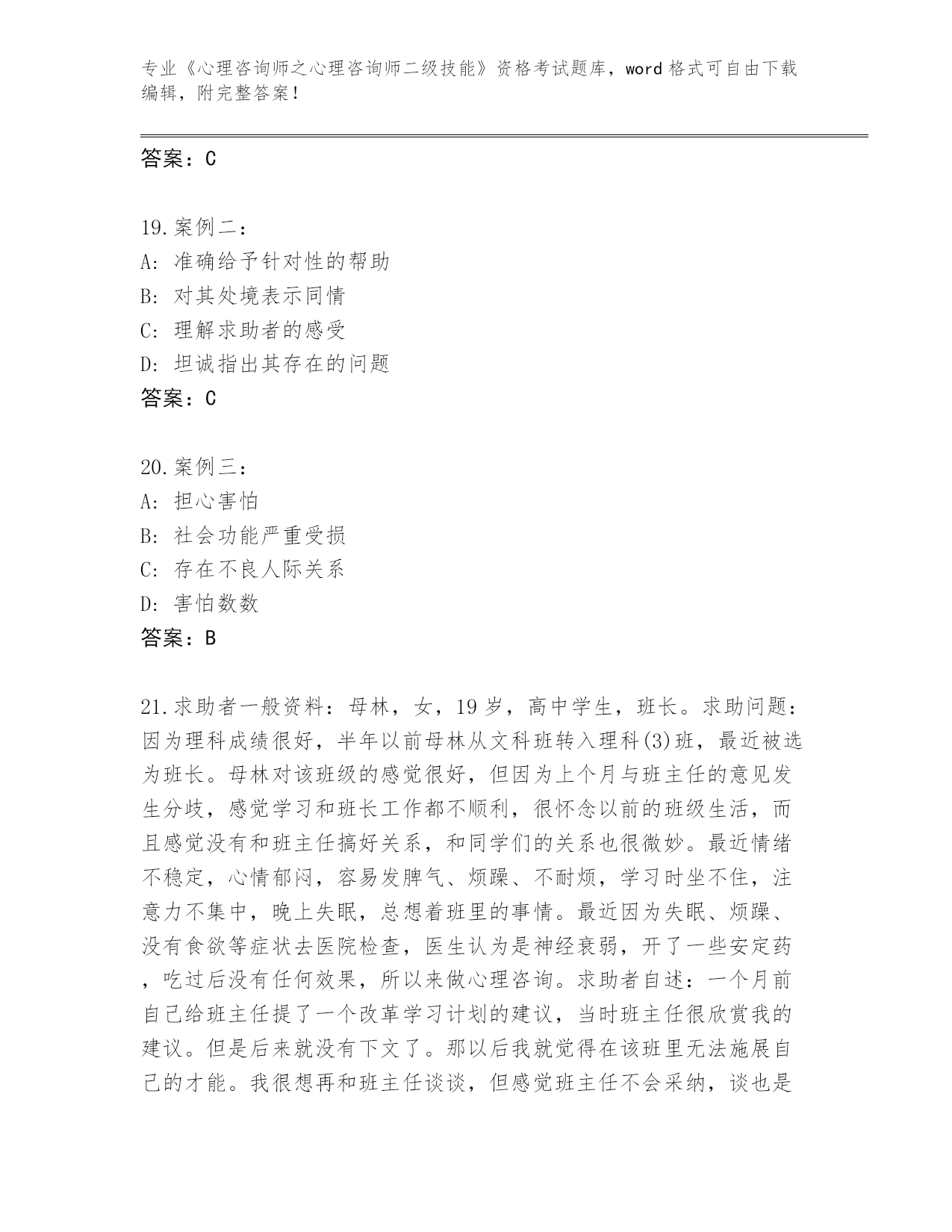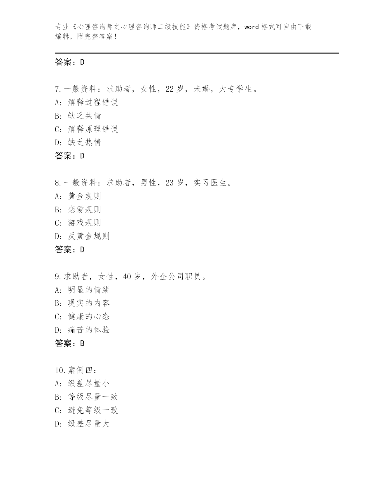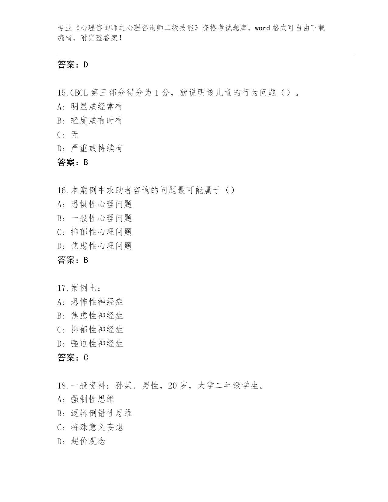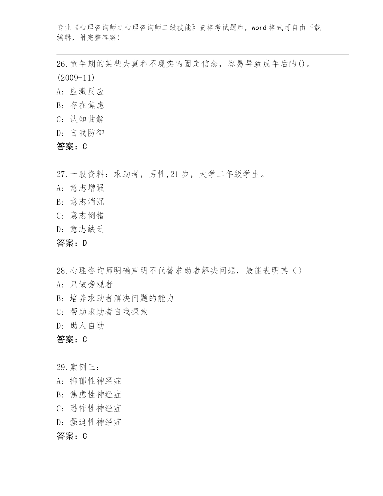 河南省整理《心理咨询师之心理咨询师二级技能》资格考试大全(能力提升)