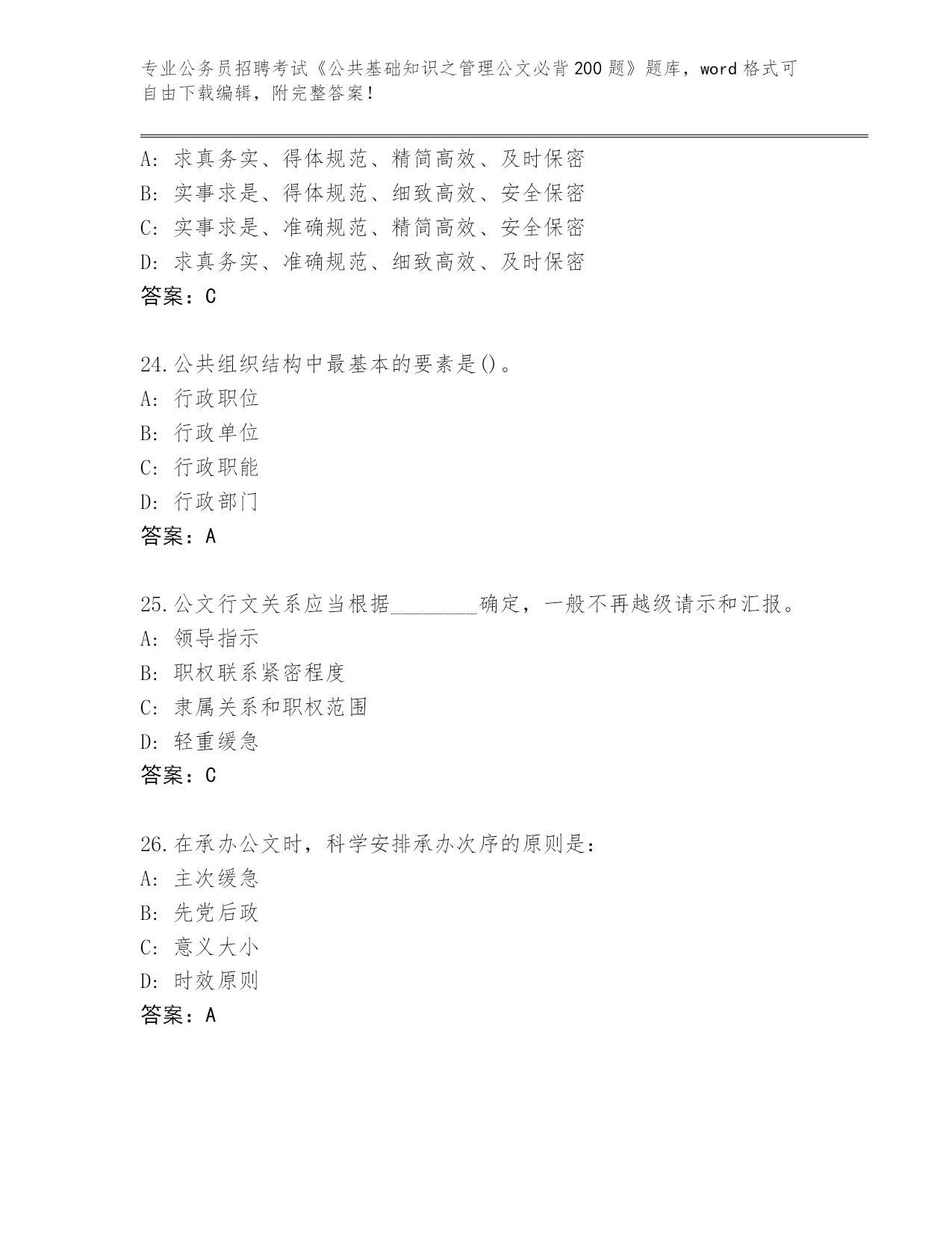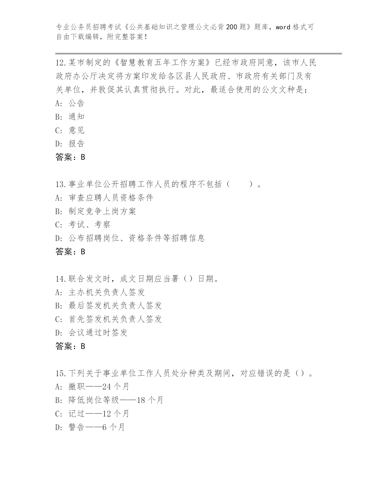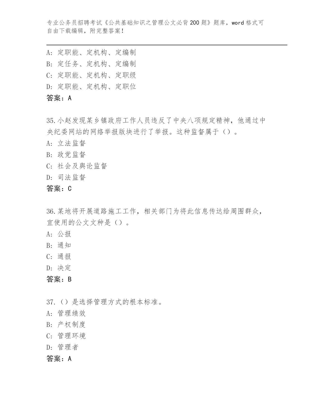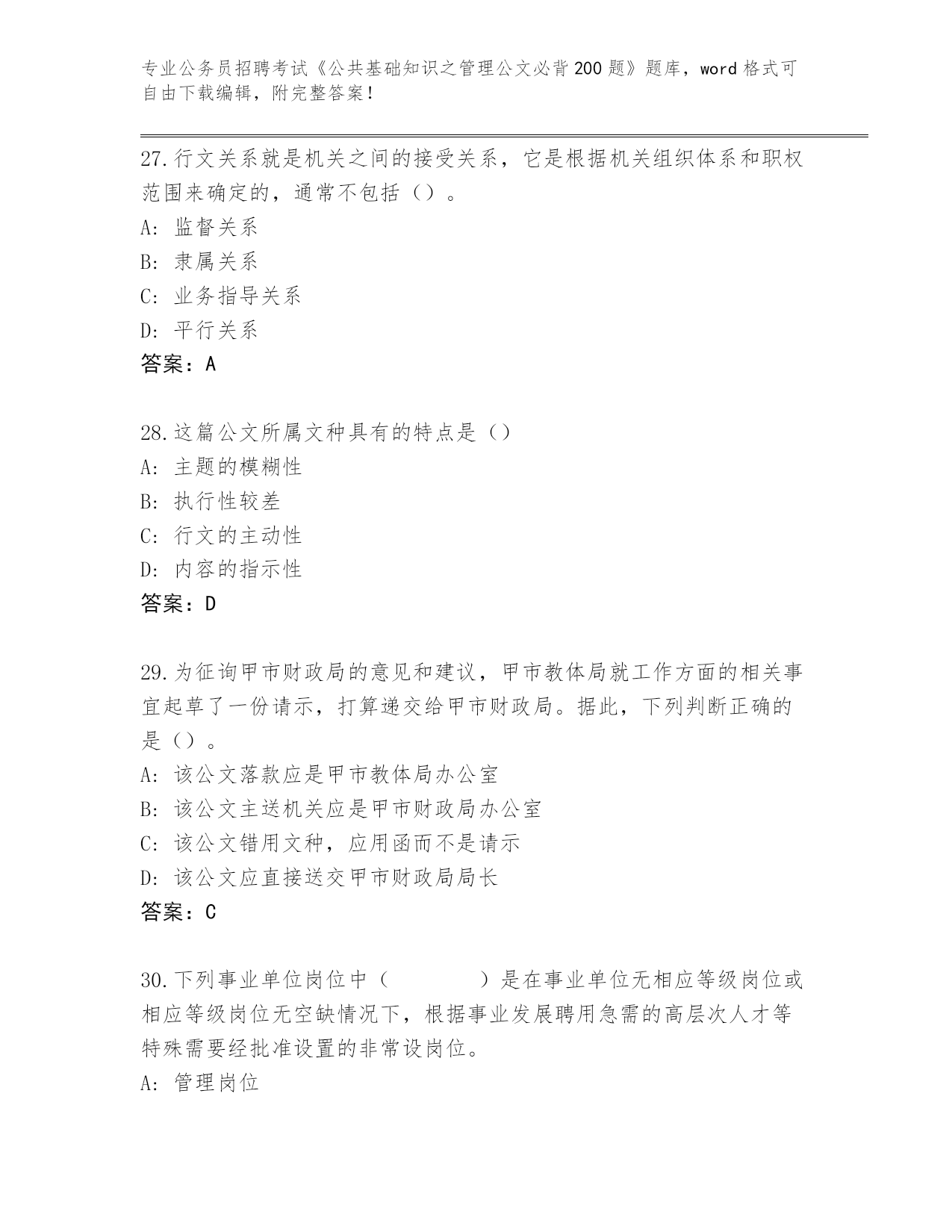 历年重庆市綦江区公务员招聘考试《公共基础知识之管理公文必背200题》真题(名师系列).docx