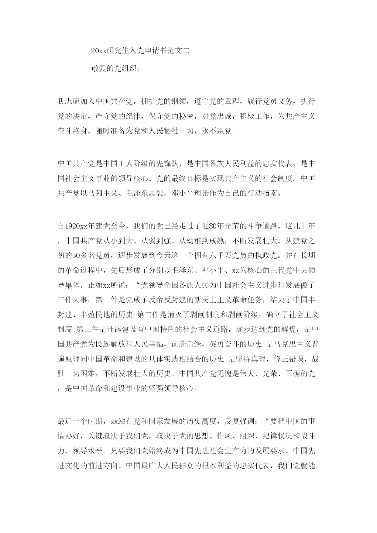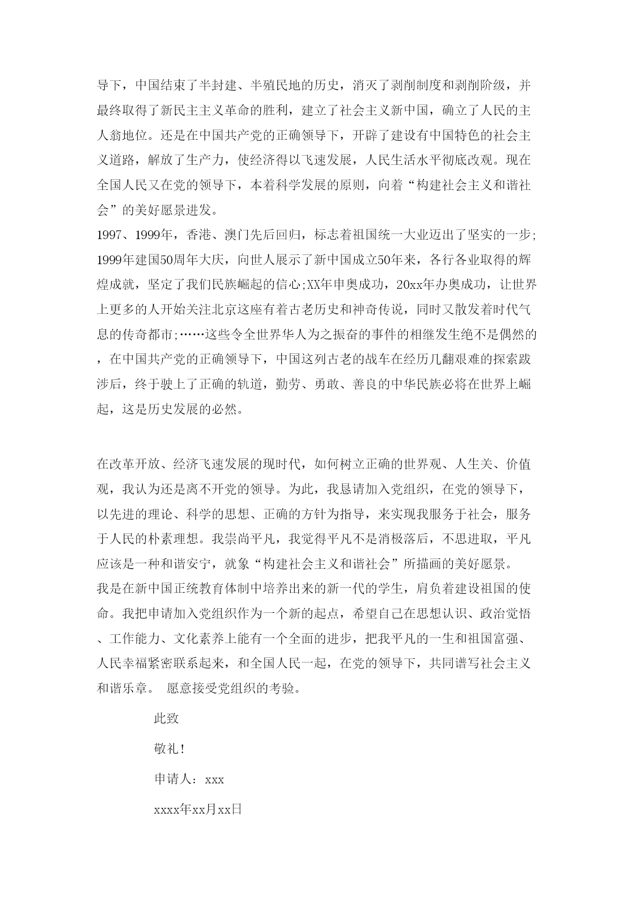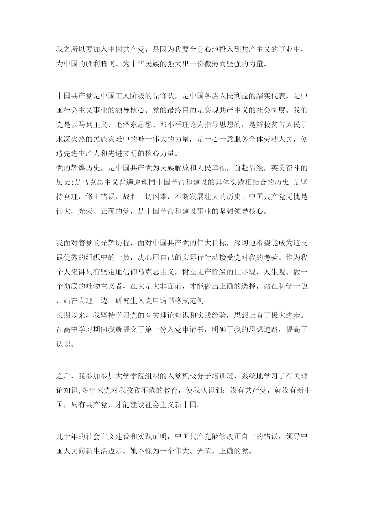 20XX年研究生入党申请书范文要求入党一般要由本人向党组织正式提出书面入党申请,这是因为中国共产党是将实现共产主义的社会制度作为自己最终奋斗目标的政治组织。下面是小编为大家收集整理的3篇20xx研究生入党申请书范文,欢迎大家阅读。20xx研究生入党申请书范文一尊敬的党组织:我要求加入中国共产党,愿意为共产主义而奋斗终生。作为一名研究生,考研复习期间我系统学习了马克思主义、毛泽东思想和邓小平理论,通过学习,我深刻领悟到社会的发展,社会意识形态的进步离不开先进思想的点拨和科学理论的引导。马克思主义传入中国在当时有着非常重要的意义。当时的中国是一个受封建统治两千多年的古老国家,封建愚昧根深蒂固,马克思主义象一阵清风,吹得死水起了微澜。它对物质意识关系的正确分析以及其科学的发展观、矛盾及普遍联系等观点如一剂醒脑药,将人们从封建愚昧中唤醒,指引人们用科学的世界观和方法论去重新认识这个世界。毛泽东思想是在长期反帝、反封建、反官僚资本主义的革命斗争中逐渐完善起来的科学理论,并最终指引中国取得革命的胜利。邓小平理论对中国经济的发展有着划时代的意义,社会主义本质论使人们摆脱了资/社争论的樊篱,最终认识到“归根到底,发展才是硬道理”这个真理。“三个有利于标准”的提出,更是为社会一切政治、经济的发展指明了方向。改革开放30年,使我们古老的国家焕发出了新的活力,在“建设有中国特色社会主义”科学思想的指引下,中国经济取得了令世界瞩目的长足进步。中国共产党提出“建设社会主义和谐社会”的思想,为全国人民描画出了一幅安定、祥和、富强、发展的美好愿景。“科学发展观”的提出预示着中国将走向更加人性化、理性化的发展道路。研究生在学期间我参加了业余党校的学习,使我对中国共产党有了更为全面的认识。我党自1920xx年建党至今,走过了近87年的艰辛历程,从建党之初的50多名党员,逐步发展到今天这个拥有六千万党员的执政党。在中国共产党的领导下,中国结束了半封建、半殖民地的历史,消灭了剥削制度和剥削阶级,并最终取得了新民主主义革命的胜利,建立了社会主义新中国,确立了人民的主人翁地位。还是在中国共产党的正确领导下,开辟了建设有中国特色的社会主义道路,解放了生产力,使经济得以飞速发展,人民生活水平彻底改观。现在全国人民又在党的领导下,本着科学发展的原则,向着“构建社会主义和谐社会”的美好愿景进发。1997、1999年,香港、澳门先后回归,标志着祖国统一大业迈出了坚实的一步;1999年建国50周年大庆,向世人展示了新中国成立50年来,各行各业取得的辉煌成就,坚定了我们民族崛起的信心;XX年申奥成功,20xx年办奥成功,让世界上更多的人开始关注北京这座有着古老历史和神奇传说,同时又散发着时代气息的传奇都市;……这些令全世界华人为之振奋的事件的相继发生绝不是偶然的,在中国共产党的正确领导下,中国这列古老的战车在经历几翻艰难的探索跋涉后,终于驶上了正确的轨道,勤劳、勇敢、善良的中华民族必将在世界上崛起,这是历史发展的必然。在改革开放、经济飞速发展的现时代,如何树立正确的世界观、人生关、价值观,我认为还是离不开党的领导。为此,我恳请加入党组织,在党的领导下,以先进的理论、科学的思想、正确的方针为指导,来实现我服务于社会,服务于人民的朴素理想。我崇尚平凡,我觉得平凡不是消极落后,不思进取,平凡应该是一种和谐安宁,就象“构建社会主义和谐社会”所描画的美好愿景。我是在新中国正统教育体制中培养出来的新一代的学生,肩负着建设祖国的使命。我把申请加入党组织作为一个新的起点,希望自己在思想认识、政治觉悟、工作能力、文化素养上能有一个全面的进步,把我平凡的一生和祖国富强、人民幸福紧密联系起来,和全国人民一起,在党的领导下,共同谱写社会主义和谐乐章。愿意接受党组织的考验。此致敬礼!申请人:xxxxxxx年xx月xx日20xx研究生入党申请书范文二敬爱的党组织:我志愿加入中国共产党,拥护党的纲领,遵守党的章程,履行党员义务,执行党的决定,严守党的纪律,保守党的秘密,对党忠诚,积极工作,为共产主义奋斗终身,随时准备为党和人民牺牲一切,永不叛党。中国共产党是中国工人阶级的先锋队,是中国各族人民利益的忠实代表,是中国社会主义事业的领导核心。党的最终目标是实现共产主义的社会制度。中国共产党以马列主义、毛泽东思想、邓小平理论作为自己的行动指南。自1920xx年建党至今,我们的党已经走过了近80年光荣的斗争道路。这几十年,中国共产党从小到大、从弱到强、从幼稚到成熟,不断发展壮大。从建党之初的50多名党员,逐步发展到今天这一个拥有六千万党员的执政党。并在长期的革命过程中,先后形成了分别以毛泽东、邓小平、xx为核心的三代党中央领导集体。正如xx所说:“党领导全国各族人民为中国社会主义进步和发