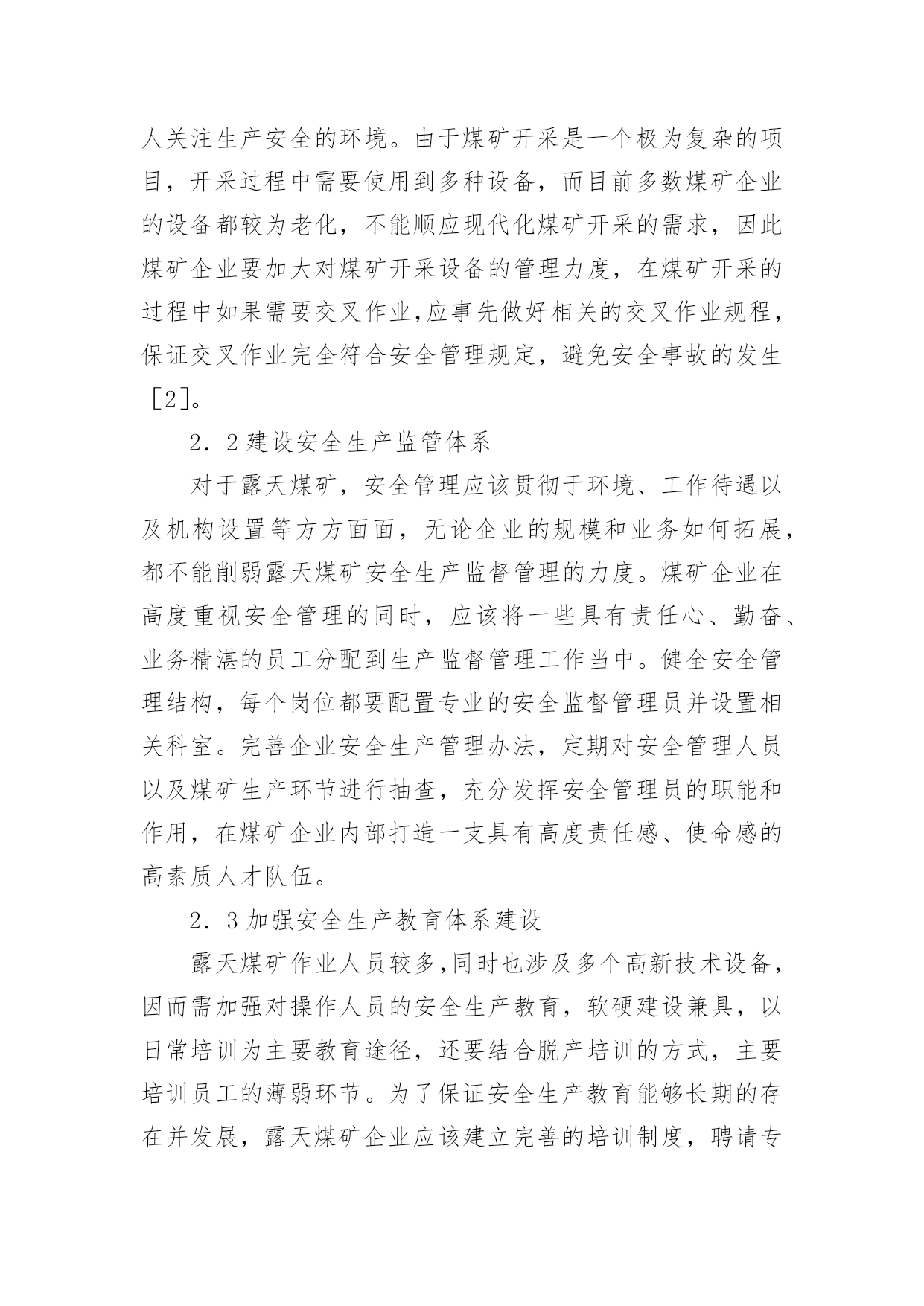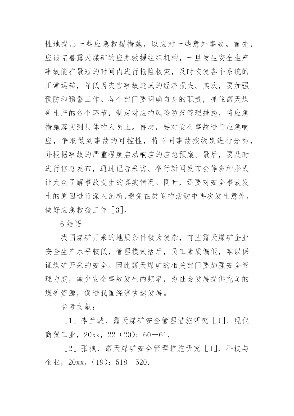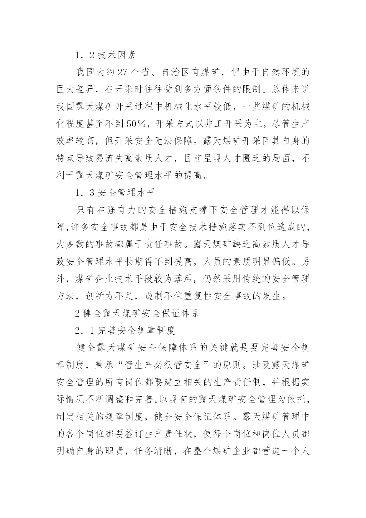 煤矿安全管理论文无论是在学校还是在社会中,大家都写过论文,肯定对各类论文都很熟悉吧,论文是探讨问题进行学术研究的一种手段。一篇什么样的论文才能称为优秀论文呢?以下是小编为大家整理的煤矿安全管理论文,仅供参考,欢迎大家阅读。煤矿安全管理论文1摘要:安全管理作为露天煤矿管理的重要组成部分,其管理水平的高低对露天煤矿的发展具有不可忽视的影响。针对露天煤矿安全管理进行研究,并提出了相关的管理对策。关键词:露天煤矿;安全管理;对策目前,露天煤矿发生的安全事故较多,对施工人员的生命安全造成巨大的威胁,同时也造成了许多不必要的经济损失。1我国露天煤矿开采安全状况1.1自然环境我国大陆多由小型地块汇聚组成,地块在汇聚的过程中会发生挤压、碰撞出现变形的情况,大大增加了煤矿开采的复杂性。近些年来由于印度板块不断向我国大陆凸起,造成我国地质条件更为复杂,煤矿开采过程中难度更大,容易发生瓦斯压力、地应力等问题,影响露天煤矿的发展。自然环境对煤矿开采具有直接影响,其难度系数制约煤矿的安全生产[1]。1.2技术因素我国大约27个省、自治区有煤矿,但由于自然环境的巨大差异,在开采时往往受到多方面条件的限制。总体来说我国露天煤矿开采过程中机械化水平较低,一些煤矿的机械化程度甚至不到50%,开采方式以井工开采为主,尽管生产效率较高,但开采安全无法保障。露天煤矿开采因其自身的特点导致易流失高素质人才,目前呈现人才匮乏的局面,不利于露天煤矿安全管理水平的提高。1.3安全管理水平只有在强有力的安全措施支撑下安全管理才能得以保障,许多安全事故都是由于安全技术措施落实不到位造成的,大多数的事故都属于责任事故。露天煤矿缺乏高素质人才导致安全管理水平长期得不到提高,人员的素质明显偏低。另外,煤矿企业技术手段较为落后,仍然采用传统的安全管理方法,创新力不足,遏制不住重复性安全事故的发生。2健全露天煤矿安全保证体系2.1完善安全规章制度健全露天煤矿安全保障体系的关键就是要完善安全规章制度,秉承“管生产必须管安全”的原则。涉及露天煤矿安全管理的所有岗位都要建立相关的生产责任制,并根据实际情况不断调整和完善。以现有的露天煤矿安全管理为依托,制定相关的规章制度,健全安全保证体系。露天煤矿管理中的各个岗位都要签订生产责任状,使每个岗位和岗位人员都明确自身的职责,任务清晰,在整个煤矿企业都营造一个人人关注生产安全的环境。由于煤矿开采是一个极为复杂的项目,开采过程中需要使用到多种设备,而目前多数煤矿企业的设备都较为老化,不能顺应现代化煤矿开采的需求,因此煤矿企业要加大对煤矿开采设备的管理力度,在煤矿开采的过程中如果需要交叉作业,应事先做好相关的交叉作业规程,保证交叉作业完全符合安全管理规定,避免安全事故的发生[2]。2.2建设安全生产监管体系对于露天煤矿,安全管理应该贯彻于环境、工作待遇以及机构设置等方方面面,无论企业的规模和业务如何拓展,都不能削弱露天煤矿安全生产监督管理的力度。煤矿企业在高度重视安全管理的同时,应该将一些具有责任心、勤奋、业务精湛的员工分配到生产监督管理工作当中。健全安全管理结构,每个岗位都要配置专业的安全监督管理员并设置相关科室。完善企业安全生产管理办法,定期对安全管理人员以及煤矿生产环节进行抽查,充分发挥安全管理员的职能和作用,在煤矿企业内部打造一支具有高度责任感、使命感的高素质人才队伍。2.3加强安全生产教育体系建设露天煤矿作业人员较多,同时也涉及多个高新技术设备,因而需加强对操作人员的安全生产教育,软硬建设兼具,以日常培训为主要教育途径,还要结合脱产培训的方式,主要培训员工的薄弱环节。为了保证安全生产教育能够长期的存在并发展,露天煤矿企业应该建立完善的培训制度,聘请专业人员担任讲师,条件允许的情况下还要建立安全生产培训基地,根据煤矿企业的实际情况制定科学合理的培训计划,全面提高整个露天煤矿企业人员的安全素质。此外,在煤矿企业内部还要形成极具特色的企业文化,建立现代企业安全管理制度,开展多种形式的安全宣传活动,丰富安全教育内容,有效调动员工的积极性,多方参与到安全建设当中。在员工工作环境中设立多个宣传点和宣传标语,将安全教育深化到企业内部的方方面面,坚持安全生产主题不动摇。3强化安全管理机制建设3.1完善安全约束和激励机制露天煤矿企业要结合企业自身情况建立完善的安全约束和激励机制,定期对安全知识进行考察,对考核成绩优秀的员工给予物质和精神奖励,而对于考核成绩较差的员工则要给予惩罚。将岗位责任制纳入到日常的考核当中,充分调动每个岗位员工的安全意识,对于违规操作的人员取消评优评先的资格。通过多种安全约束和激励机制能够有效增强员工的安全生产意识,积极置身于露天煤矿安全生产过程中。3.2建立群防群治机制充分调动企业党委负责部门,联合企业的员工互相监督,纪检抓生产效能监
