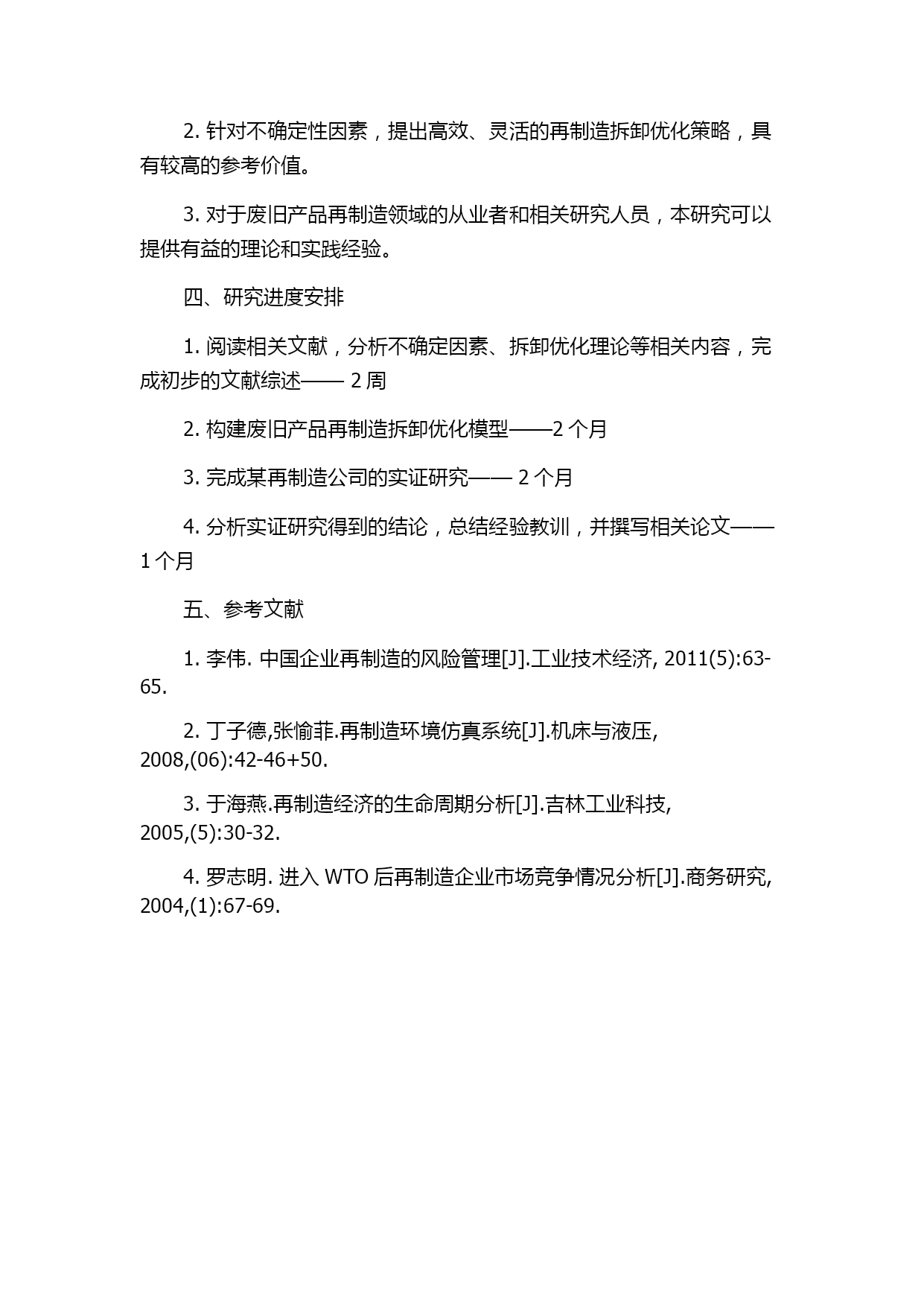 不确定环境下废旧产品再制造拆卸优化研究的开题报告.docx