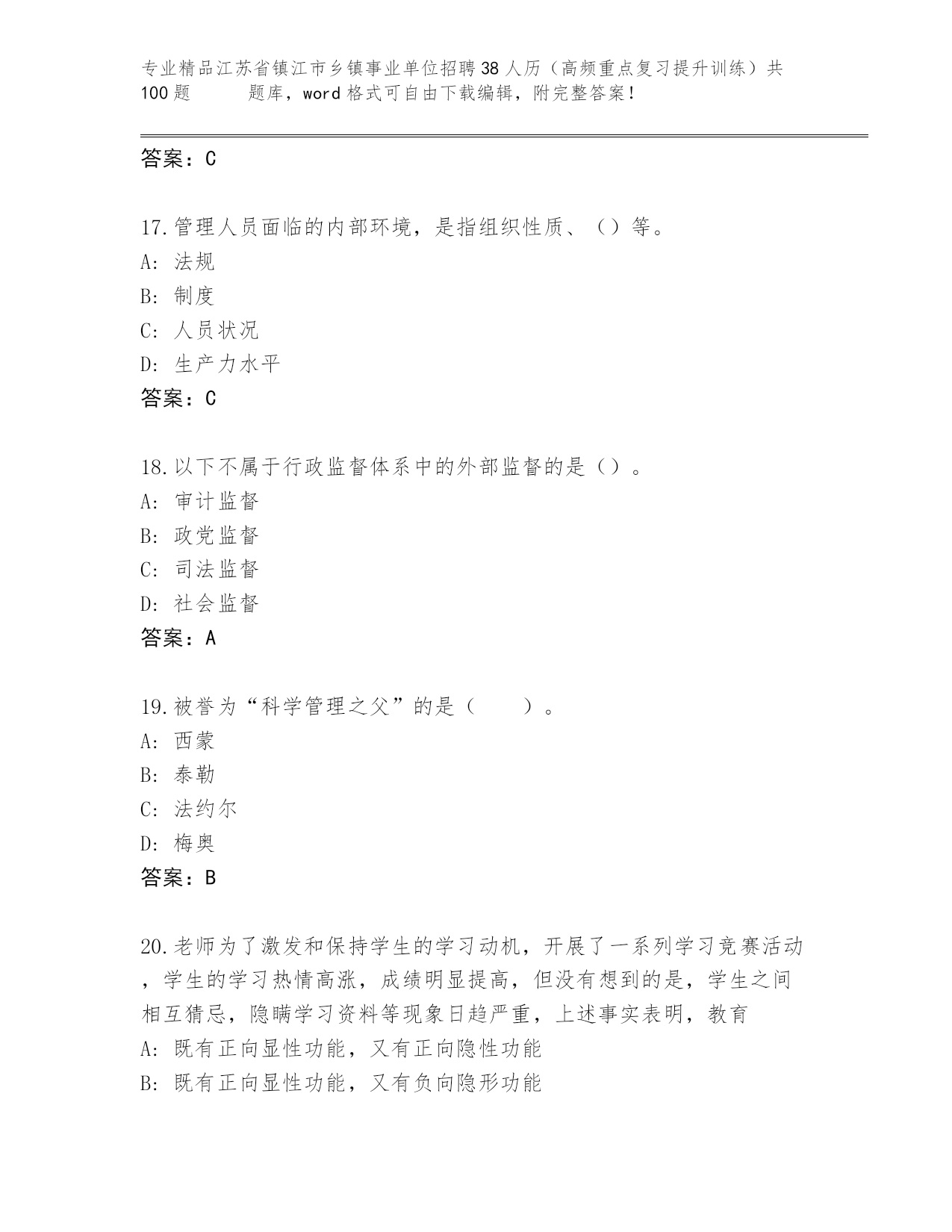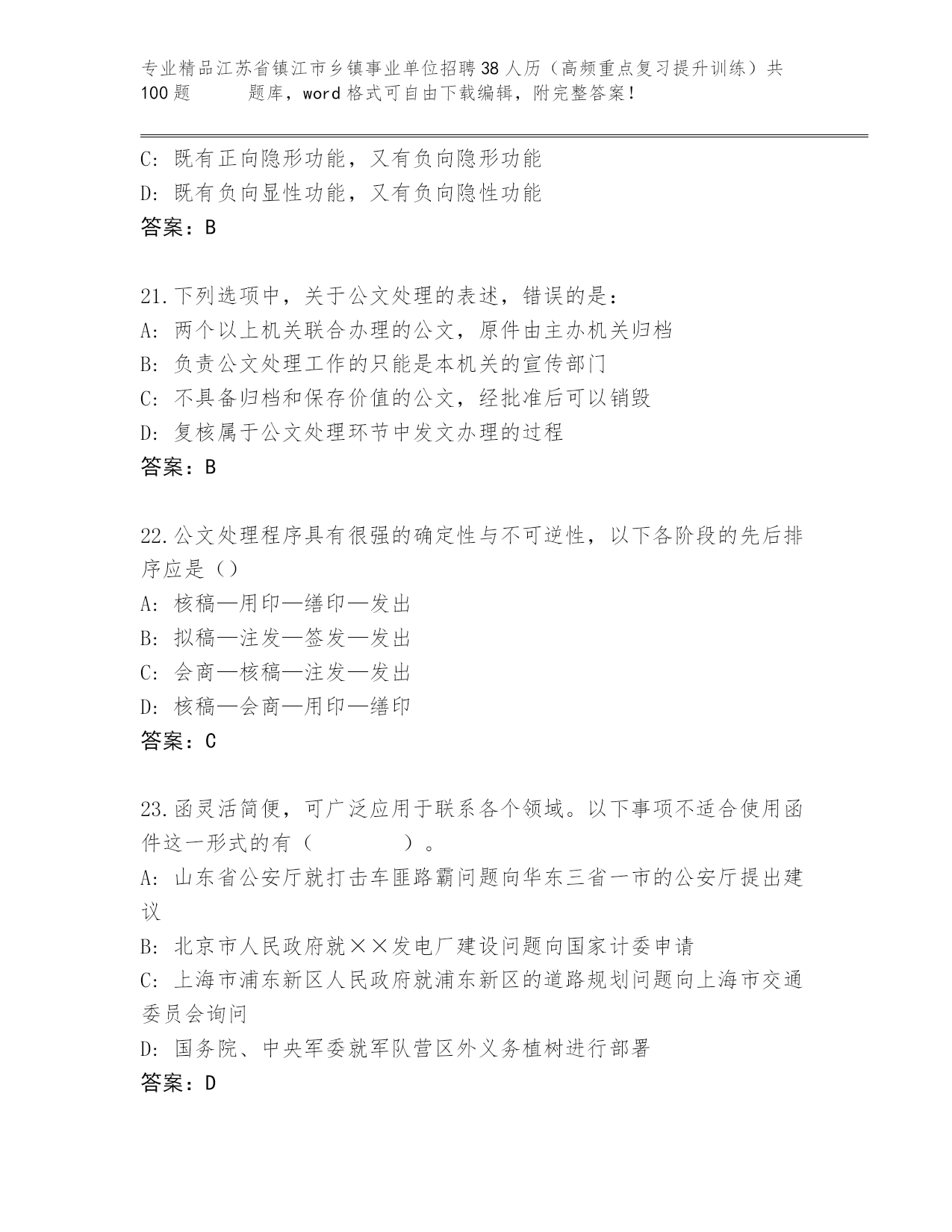 完整版江苏省镇江市乡镇事业单位招聘38人历(高频重点复习提升训练)共100题 【研优卷】