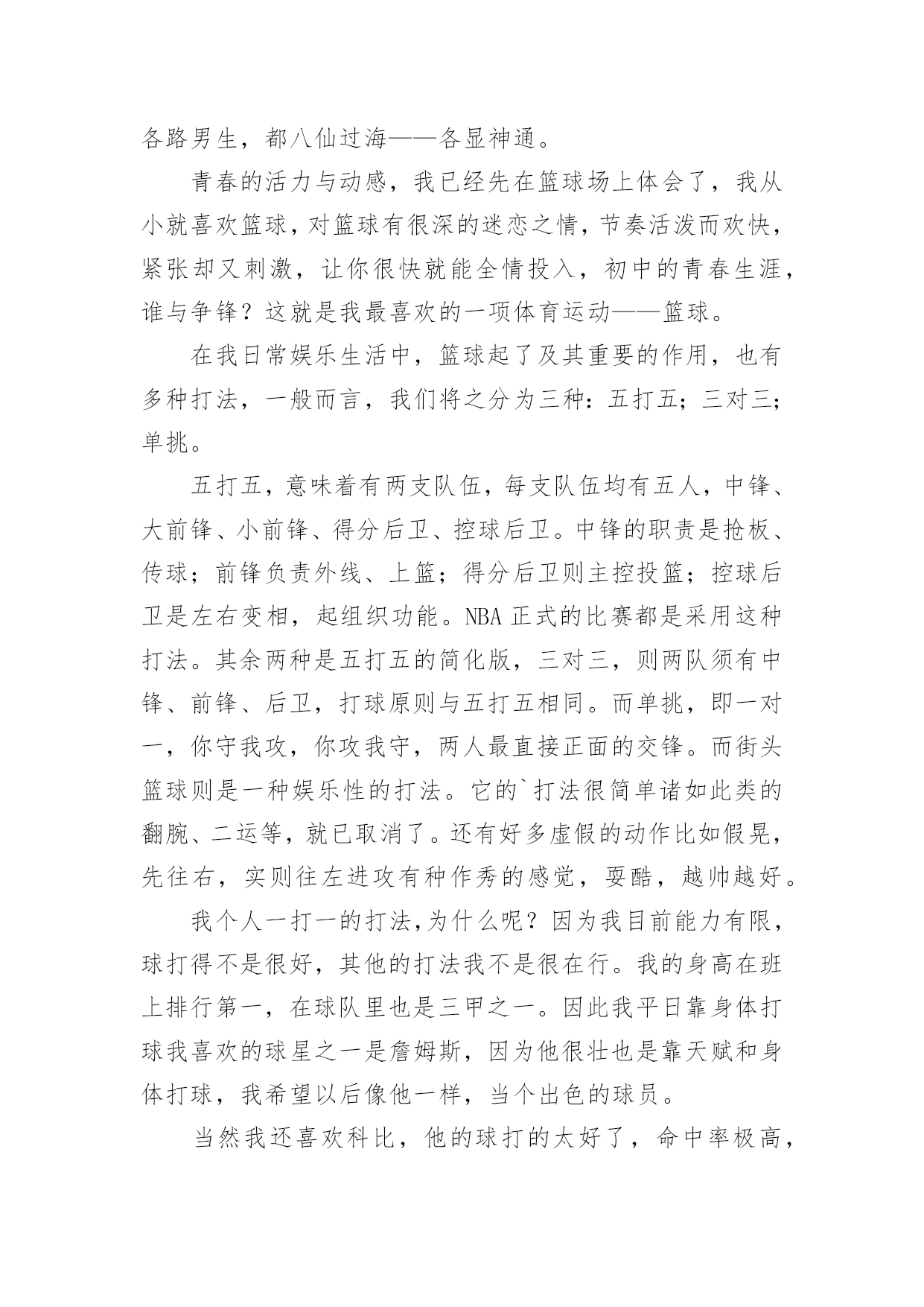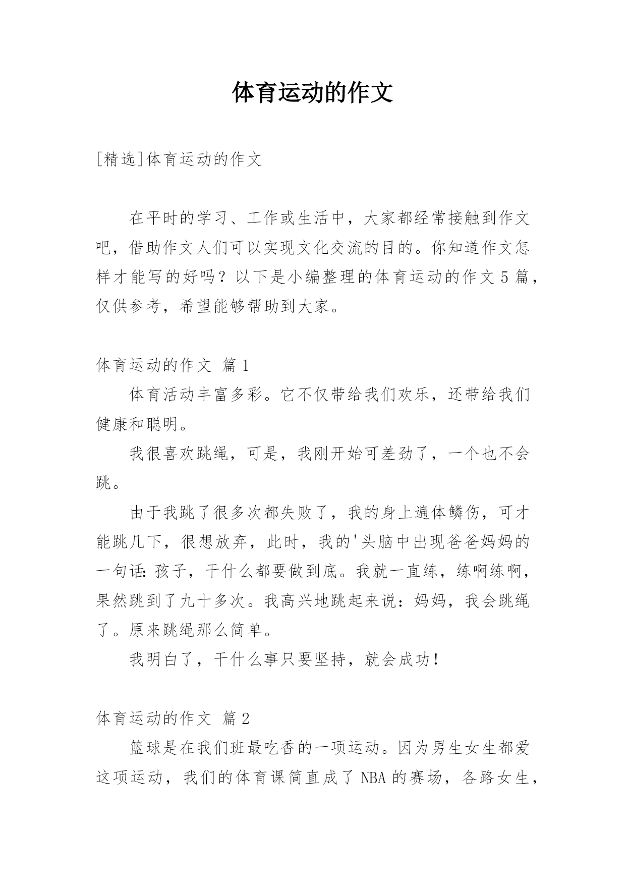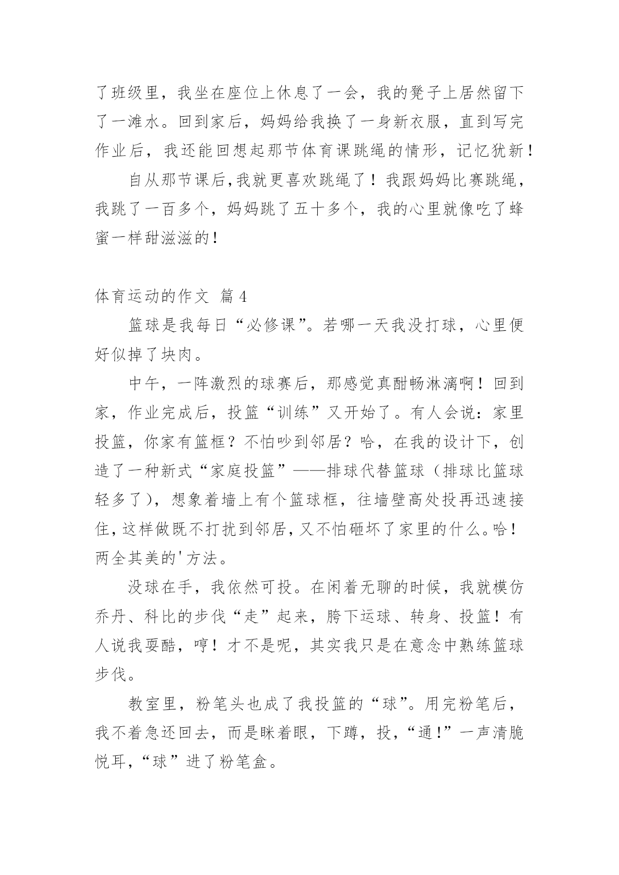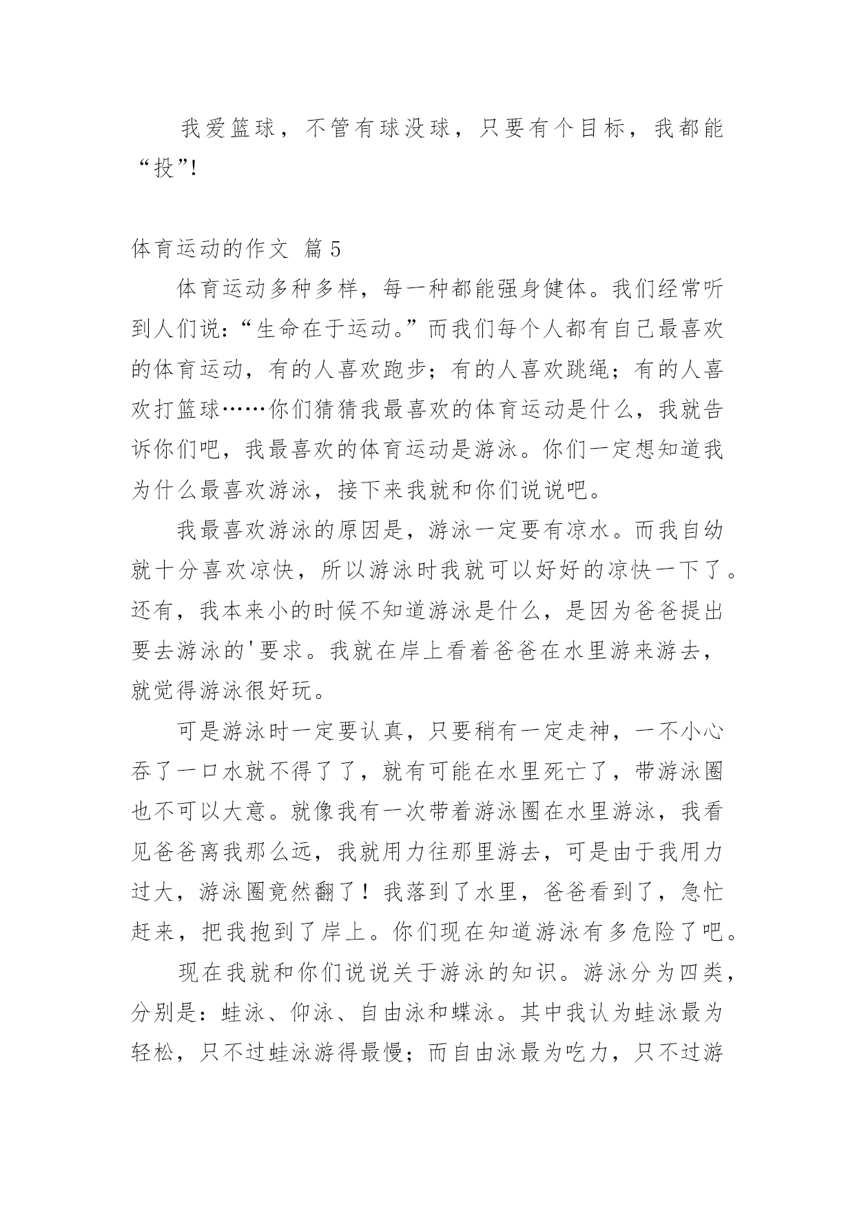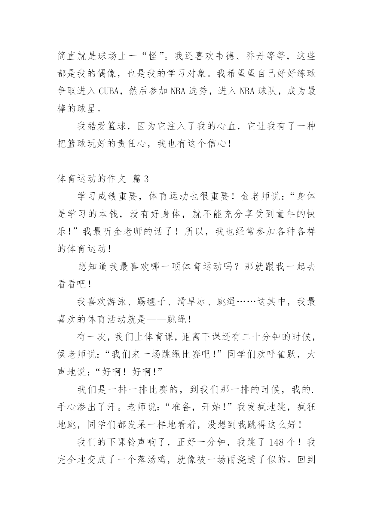 体育运动的作文[精选]体育运动的作文在平时的学习、工作或生活中,大家都经常接触到作文吧,借助作文人们可以实现文化交流的目的。你知道作文怎样才能写的好吗?以下是小编整理的体育运动的作文5篇,仅供参考,希望能够帮助到大家。体育运动的作文篇1体育活动丰富多彩。它不仅带给我们欢乐,还带给我们健康和聪明。我很喜欢跳绳,可是,我刚开始可差劲了,一个也不会跳。由于我跳了很多次都失败了,我的身上遍体鳞伤,可才能跳几下,很想放弃,此时,我的'头脑中出现爸爸妈妈的一句话:孩子,干什么都要做到底。我就一直练,练啊练啊,果然跳到了九十多次。我高兴地跳起来说:妈妈,我会跳绳了。原来跳绳那么简单。我明白了,干什么事只要坚持,就会成功!体育运动的作文篇2篮球是在我们班最吃香的一项运动。因为男生女生都爱这项运动,我们的体育课简直成了NBA的赛场,各路女生,各路男生,都八仙过海——各显神通。青春的活力与动感,我已经先在篮球场上体会了,我从小就喜欢篮球,对篮球有很深的迷恋之情,节奏活泼而欢快,紧张却又刺激,让你很快就能全情投入,初中的青春生涯,谁与争锋?这就是我最喜欢的一项体育运动——篮球。在我日常娱乐生活中,篮球起了及其重要的作用,也有多种打法,一般而言,我们将之分为三种:五打五;三对三;单挑。五打五,意味着有两支队伍,每支队伍均有五人,中锋、大前锋、小前锋、得分后卫、控球后卫。中锋的职责是抢板、传球;前锋负责外线、上篮;得分后卫则主控投篮;控球后卫是左右变相,起组织功能。NBA正式的比赛都是采用这种打法。其余两种是五打五的简化版,三对三,则两队须有中锋、前锋、后卫,打球原则与五打五相同。而单挑,即一对一,你守我攻,你攻我守,两人最直接正面的交锋。而街头篮球则是一种娱乐性的打法。它的`打法很简单诸如此类的翻腕、二运等,就已取消了。还有好多虚假的动作比如假晃,先往右,实则往左进攻有种作秀的感觉,耍酷,越帅越好。我个人一打一的打法,为什么呢?因为我目前能力有限,球打得不是很好,其他的打法我不是很在行。我的身高在班上排行第一,在球队里也是三甲之一。因此我平日靠身体打球我喜欢的球星之一是詹姆斯,因为他很壮也是靠天赋和身体打球,我希望以后像他一样,当个出色的球员。当然我还喜欢科比,他的球打的太好了,命中率极高,简直就是球场上一“怪”。我还喜欢韦德、乔丹等等,这些都是我的偶像,也是我的学习对象。我希望望自己好好练球争取进入CUBA,然后参加NBA选秀,进入NBA球队,成为最棒的球星。我酷爱篮球,因为它注入了我的心血,它让我有了一种把篮球玩好的责任心,我也有这个信心!体育运动的作文篇3学习成绩重要,体育运动也很重要!金老师说:“身体是学习的本钱,没有好身体,就不能充分享受到童年的快乐!”我最听金老师的话了!所以,我也经常参加各种各样的体育运动!想知道我最喜欢哪一项体育运动吗?那就跟我一起去看看吧!我喜欢游泳、踢毽子、滑旱冰、跳绳……这其中,我最喜欢的体育活动就是——跳绳!有一次,我们上体育课,距离下课还有二十分钟的时候,侯老师说:“我们来一场跳绳比赛吧!”同学们欢呼雀跃,大声地说:“好啊!好啊!”我们是一排一排比赛的,到我们那一排的时候,我的.手心渗出了汗。老师说:“准备,开始!”我发疯地跳,疯狂地跳,同学们都发呆一样地看着,没想到我跳得这么好!我们的下课铃声响了,正好一分钟,我跳了148个!我完全地变成了一个落汤鸡,就像被一场雨浇透了似的。回到了班级里,我坐在座位上休息了一会,我的凳子上居然留下了一滩水。回到家后,妈妈给我换了一身新衣服,直到写完作业后,我还能回想起那节体育课跳绳的情形,记忆犹新!自从那节课后,我就更喜欢跳绳了!我跟妈妈比赛跳绳,我跳了一百多个,妈妈跳了五十多个,我的心里就像吃了蜂蜜一样甜滋滋的!体育运动的作文篇4篮球是我每日“必修课”。若哪一天我没打球,心里便好似掉了块肉。中午,一阵激烈的球赛后,那感觉真酣畅淋漓啊!回到家,作业完成后,投篮“训练”又开始了。有人会说:家里投篮,你家有篮框?不怕吵到邻居?哈,在我的设计下,创造了一种新式“家庭投篮”——排球代替篮球(排球比篮球轻多了),想象着墙上有个篮球框,往墙壁高处投再迅速接住,这样做既不打扰到邻居,又不怕砸坏了家里的什么。哈!两全其美的'方法。没球在手,我依然可投。在闲着无聊的时候,我就模仿乔丹、科比的步伐“走”起来,胯下运球、转身、投篮!有人说我耍酷,哼!才不是呢,其实我只是在意念中熟练篮球步伐。教室里,粉笔头也成了我投篮的“球”。用完粉笔后,我不着急还回去,而是眯着眼,下蹲,投,“通!”一声清脆悦耳,“球”进了粉笔盒。我爱篮球,不管有球没球,只要有个目标,我都能“投”!体育运动的作文篇5体育运动多种多样,每一种都能强身健体。我们经常听到人们说:“生命在于运动。”而我们每个人都有自己最喜欢的体育运