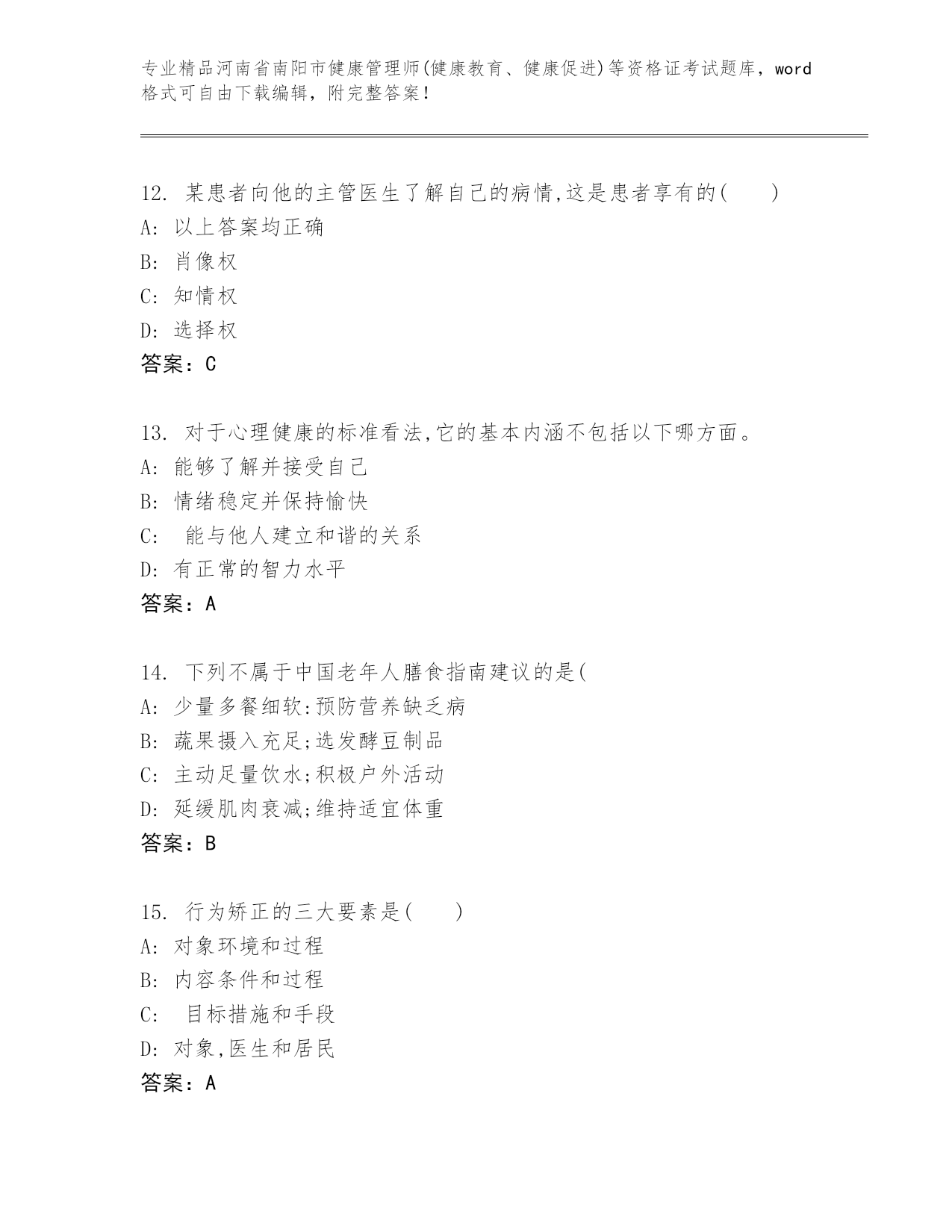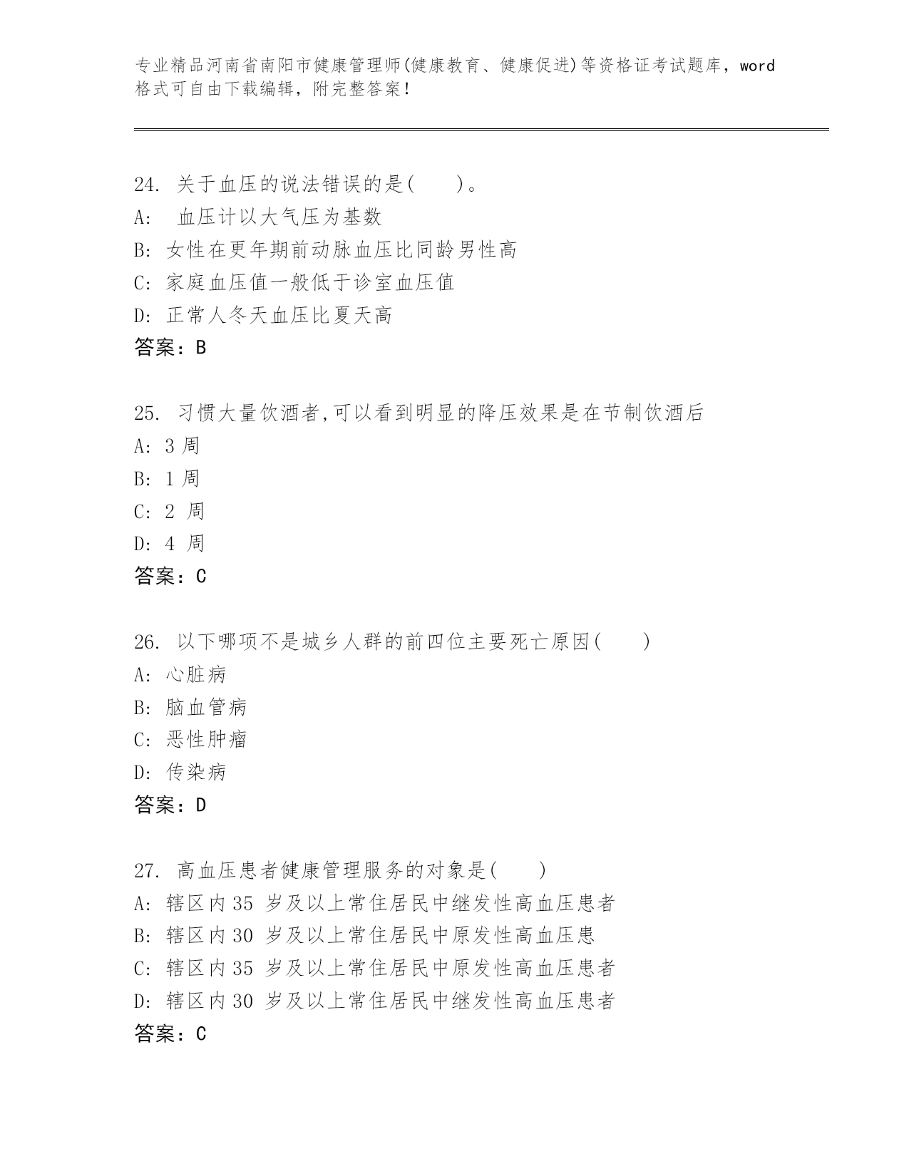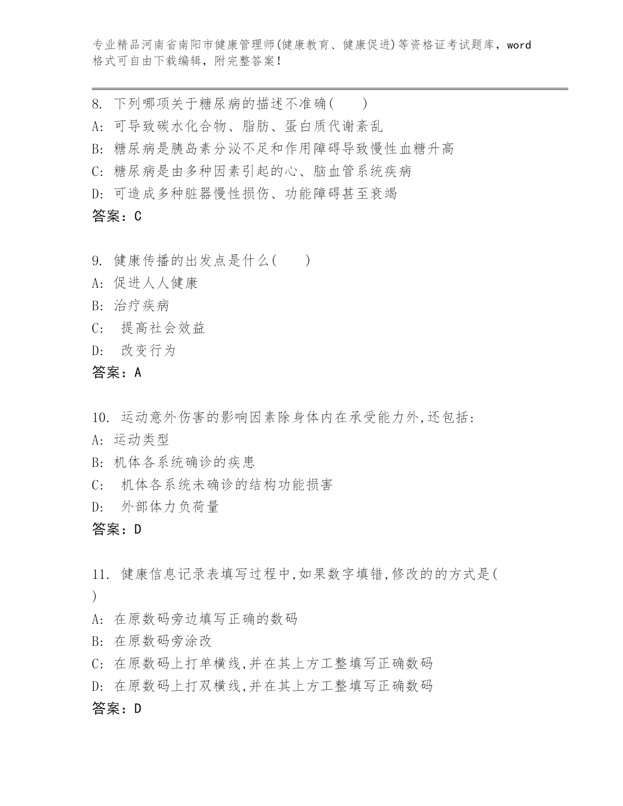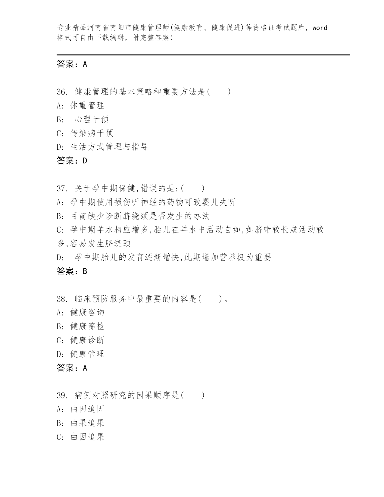 最新河南省南阳市健康管理师(健康教育、健康促进)等资格证考试真题及答案【最新】.docx