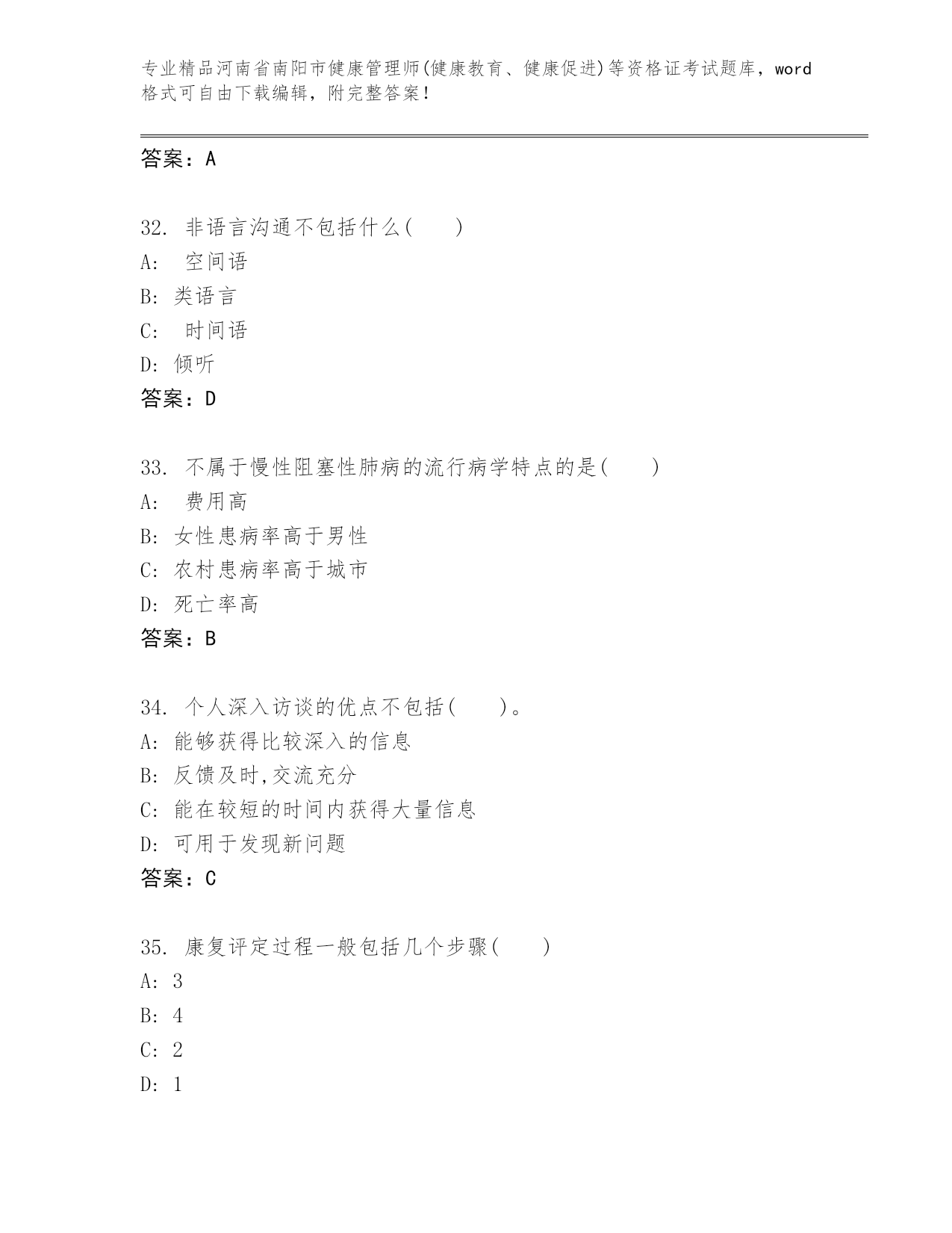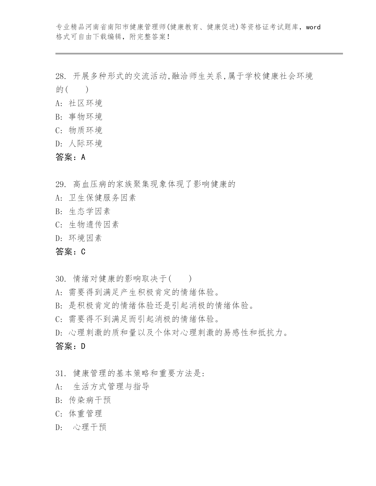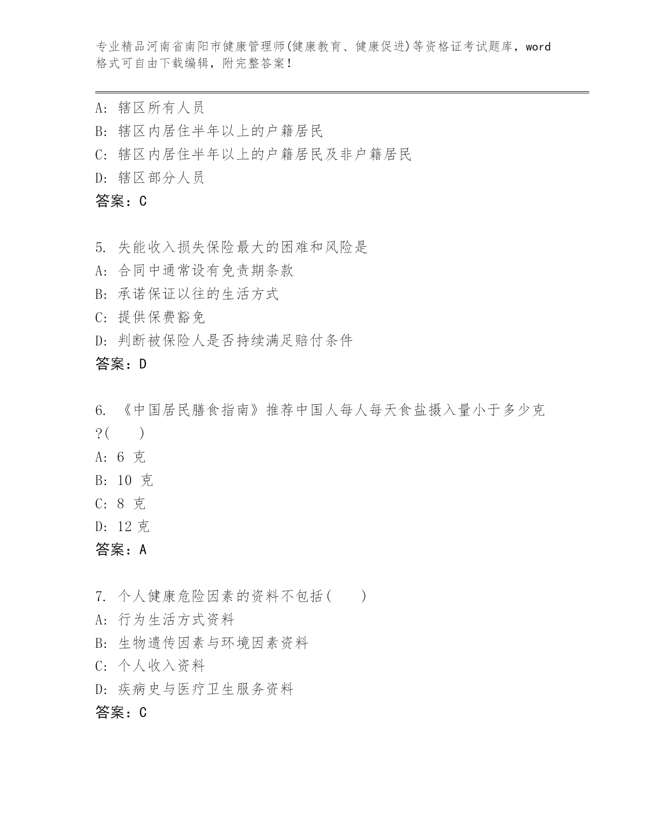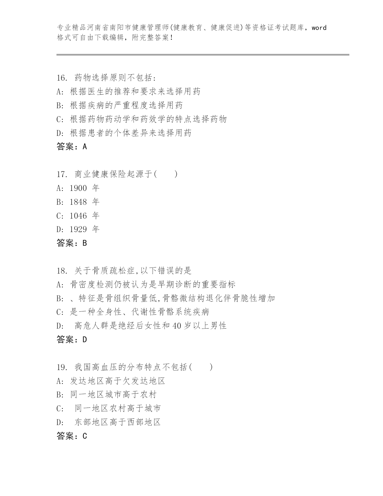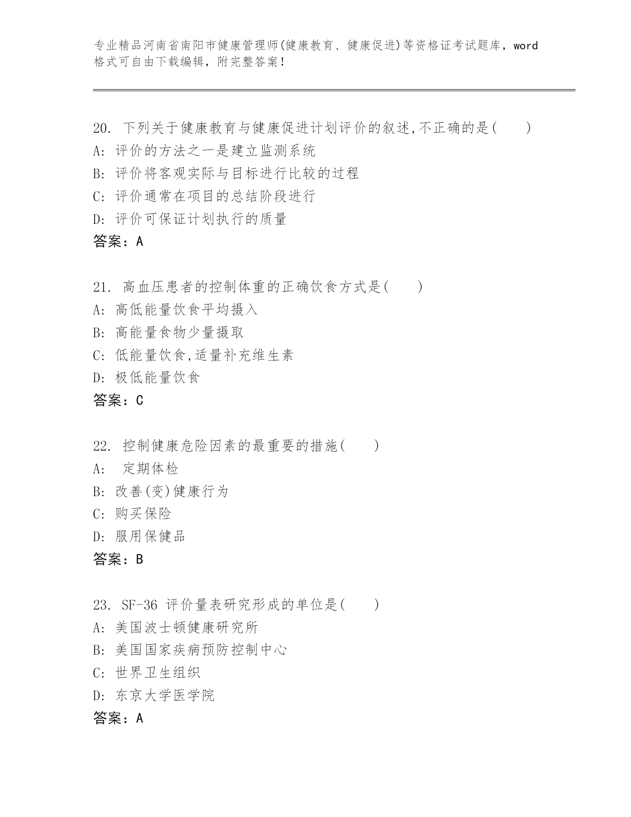 最新河南省南阳市健康管理师(健康教育、健康促进)等资格证考试真题及答案【最新】.docx