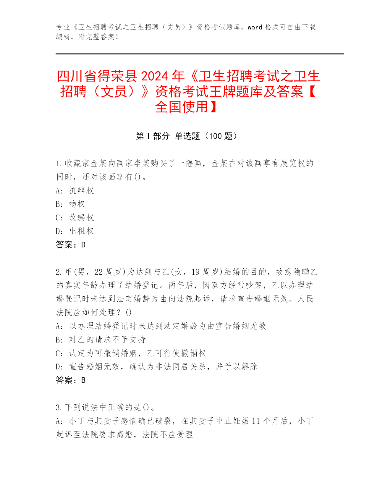 四川省得荣县2024年《卫生招聘考试之卫生招聘(文员)》资格考试王牌题库及答案【全国使用】