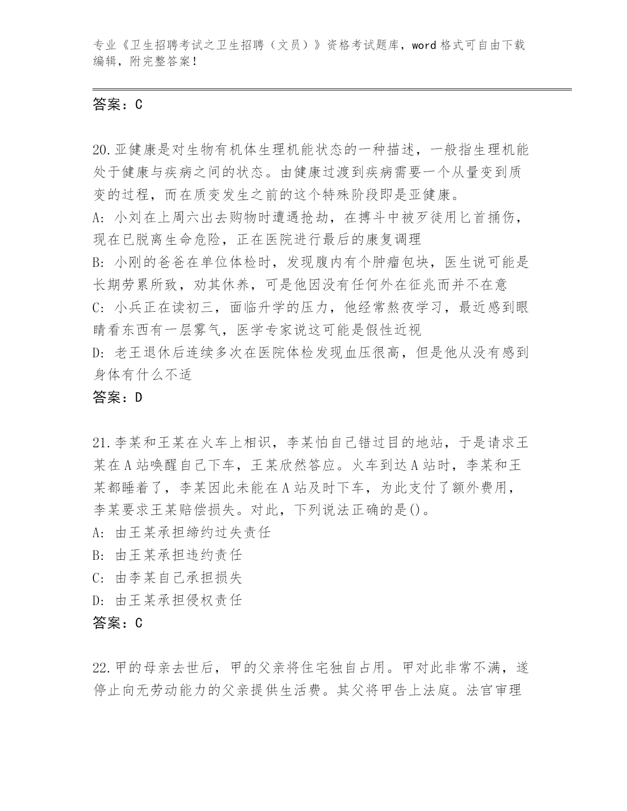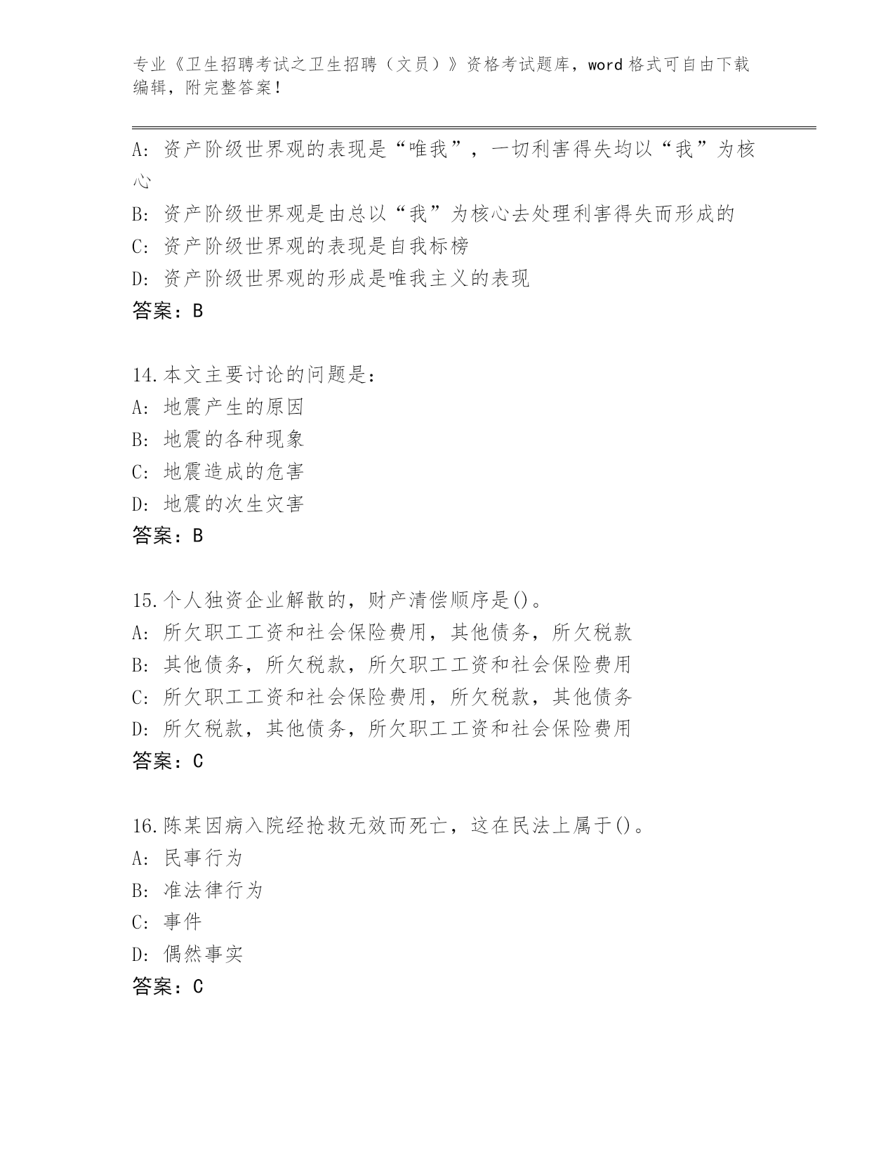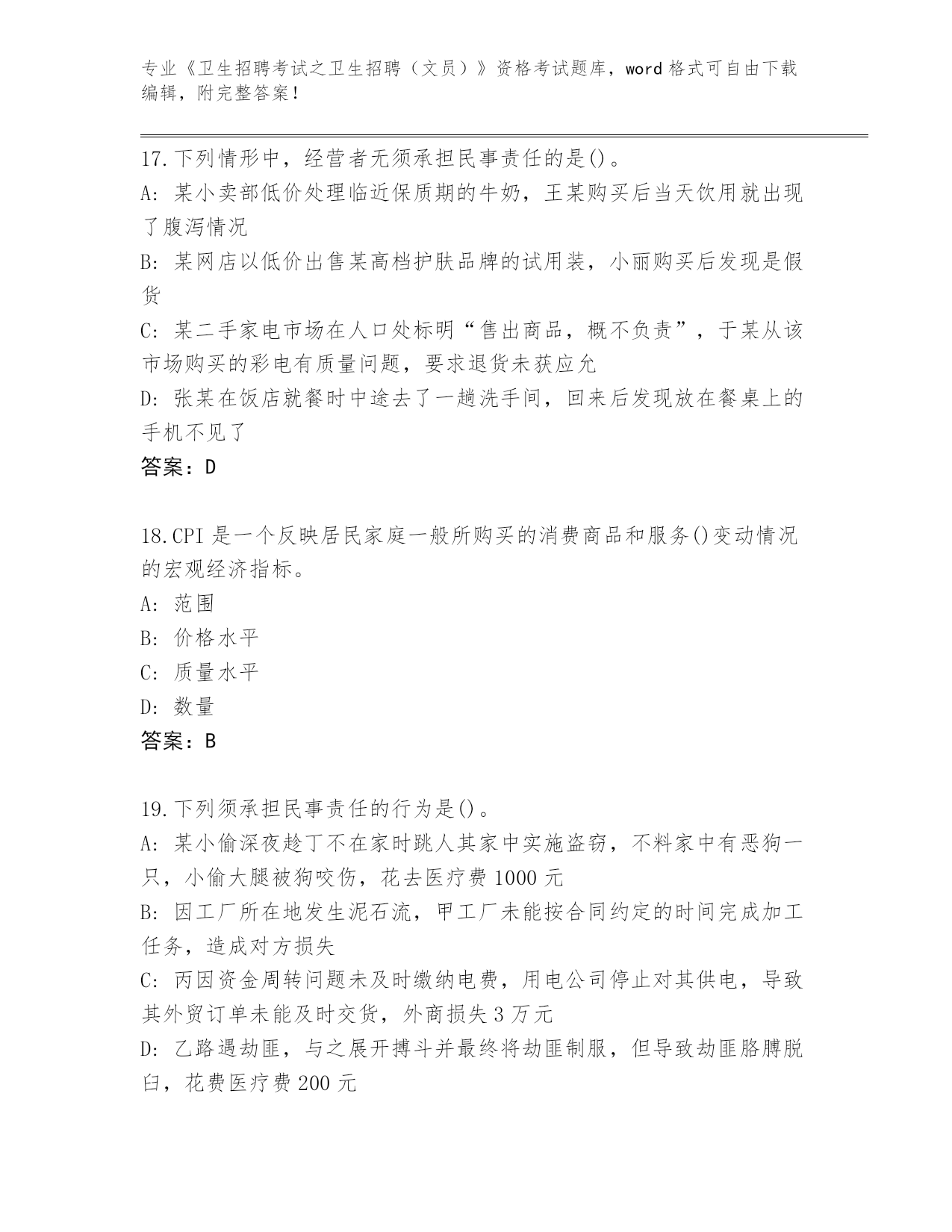 甘肃省完整版《卫生招聘考试之卫生招聘(文员)》资格考试王牌题库及答案【全国使用】