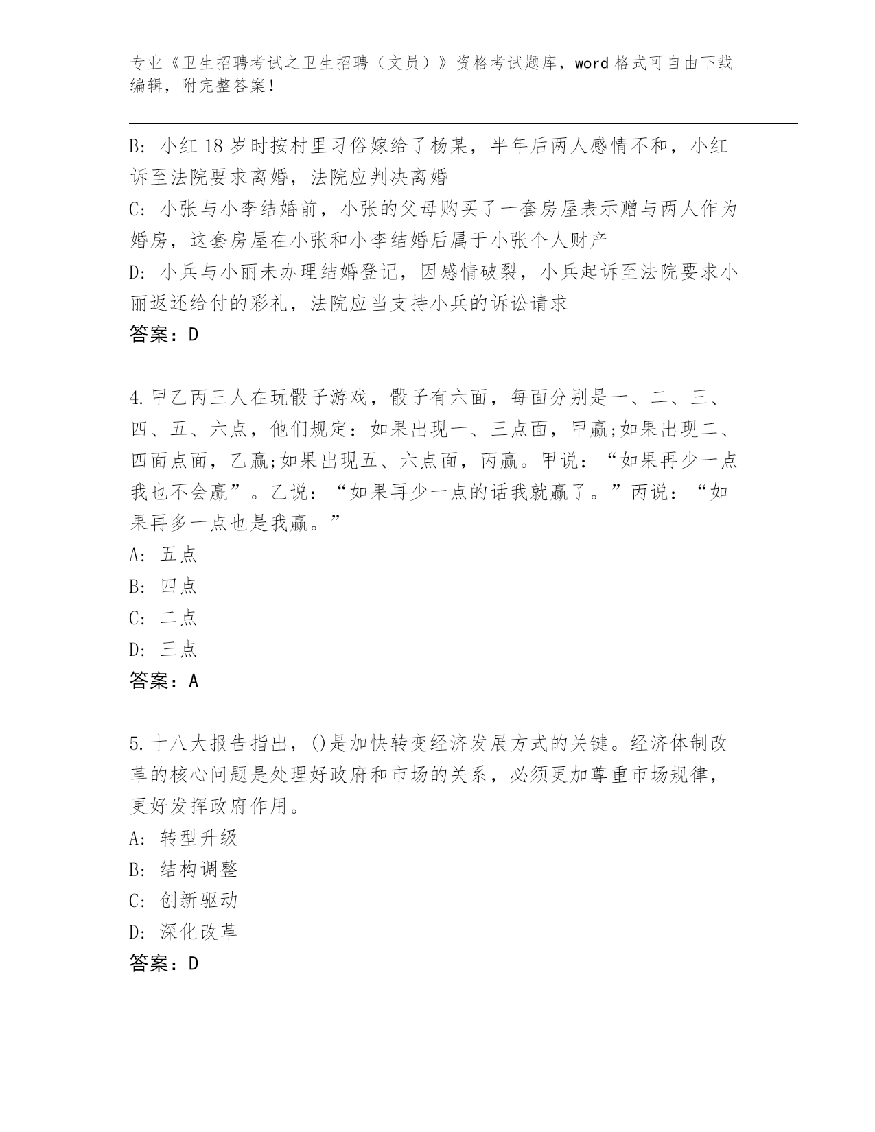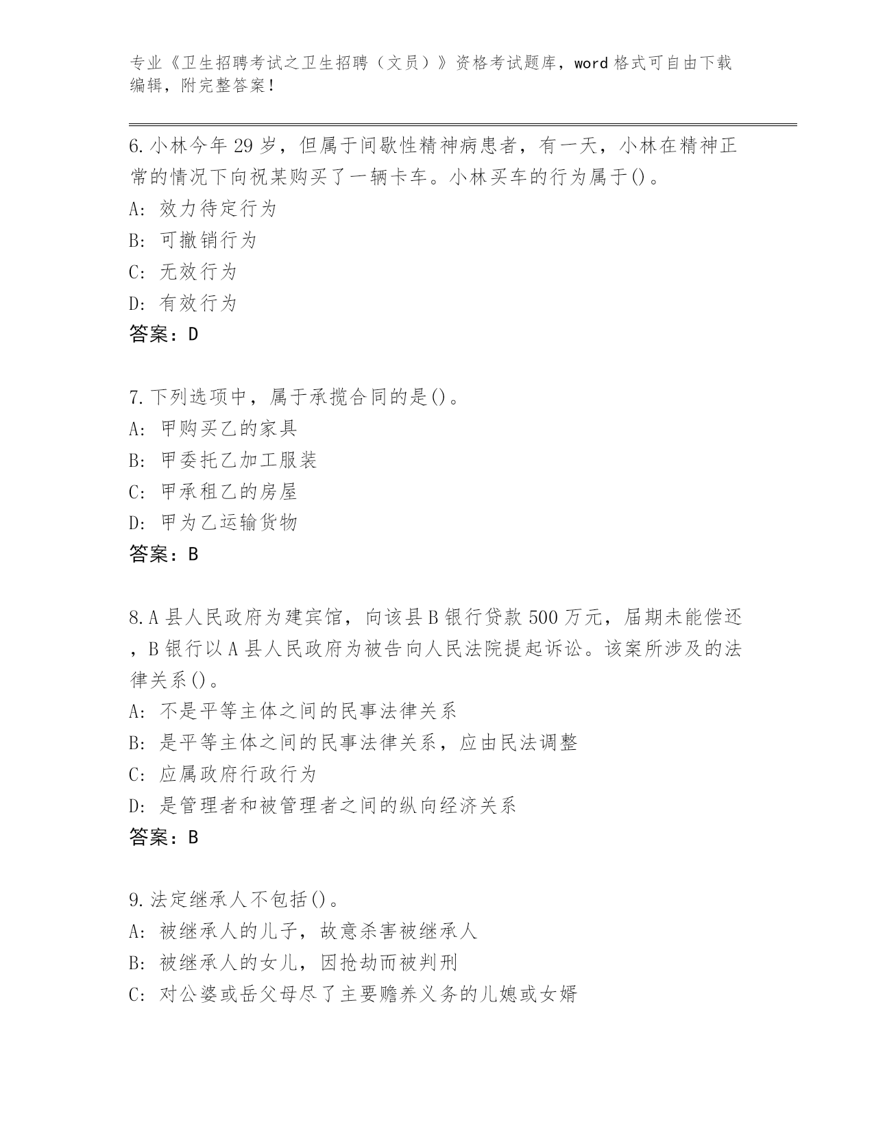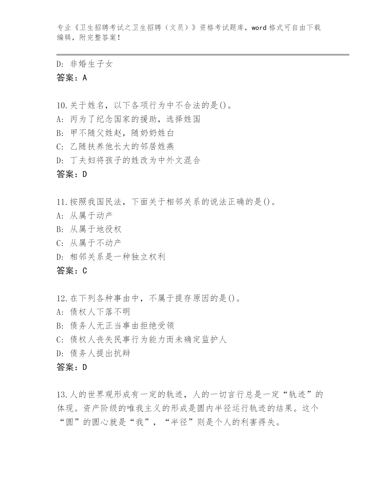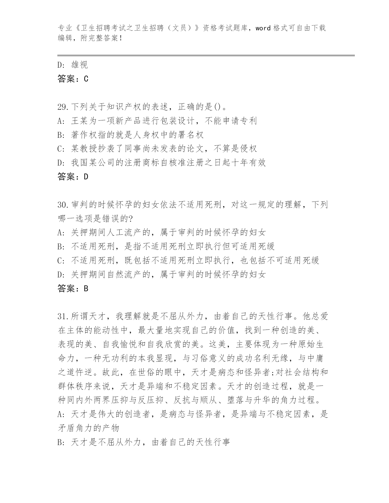 甘肃省完整版《卫生招聘考试之卫生招聘(文员)》资格考试王牌题库及答案【全国使用】