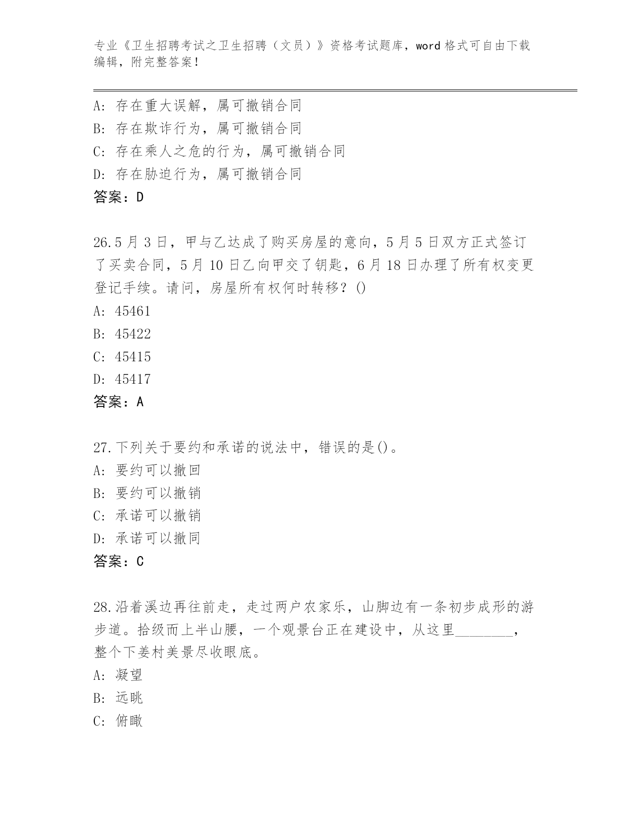 江西省2024年《卫生招聘考试之卫生招聘(文员)》资格考试王牌题库(全国使用)