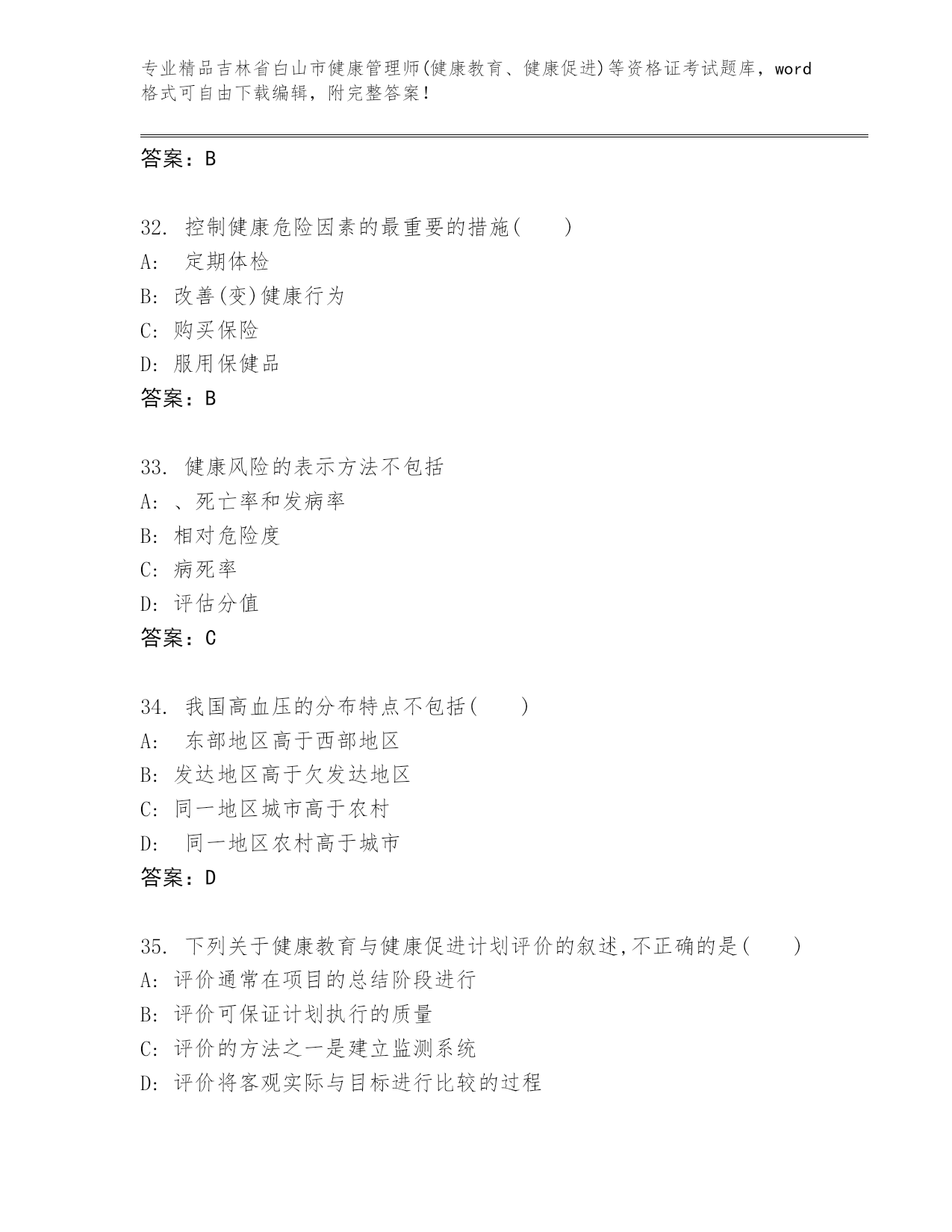 最新吉林省白山市健康管理师(健康教育、健康促进)等资格证考试通用题库【考点提分】.docx