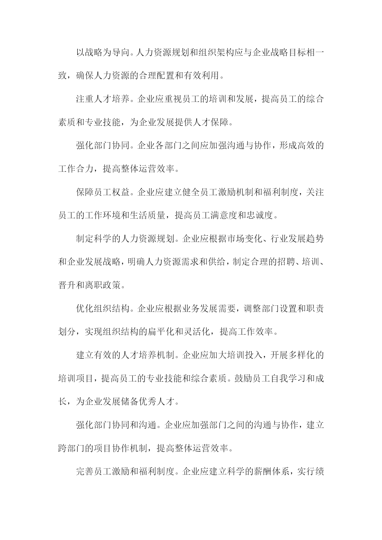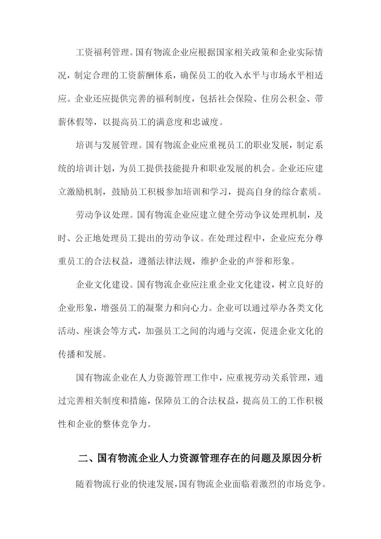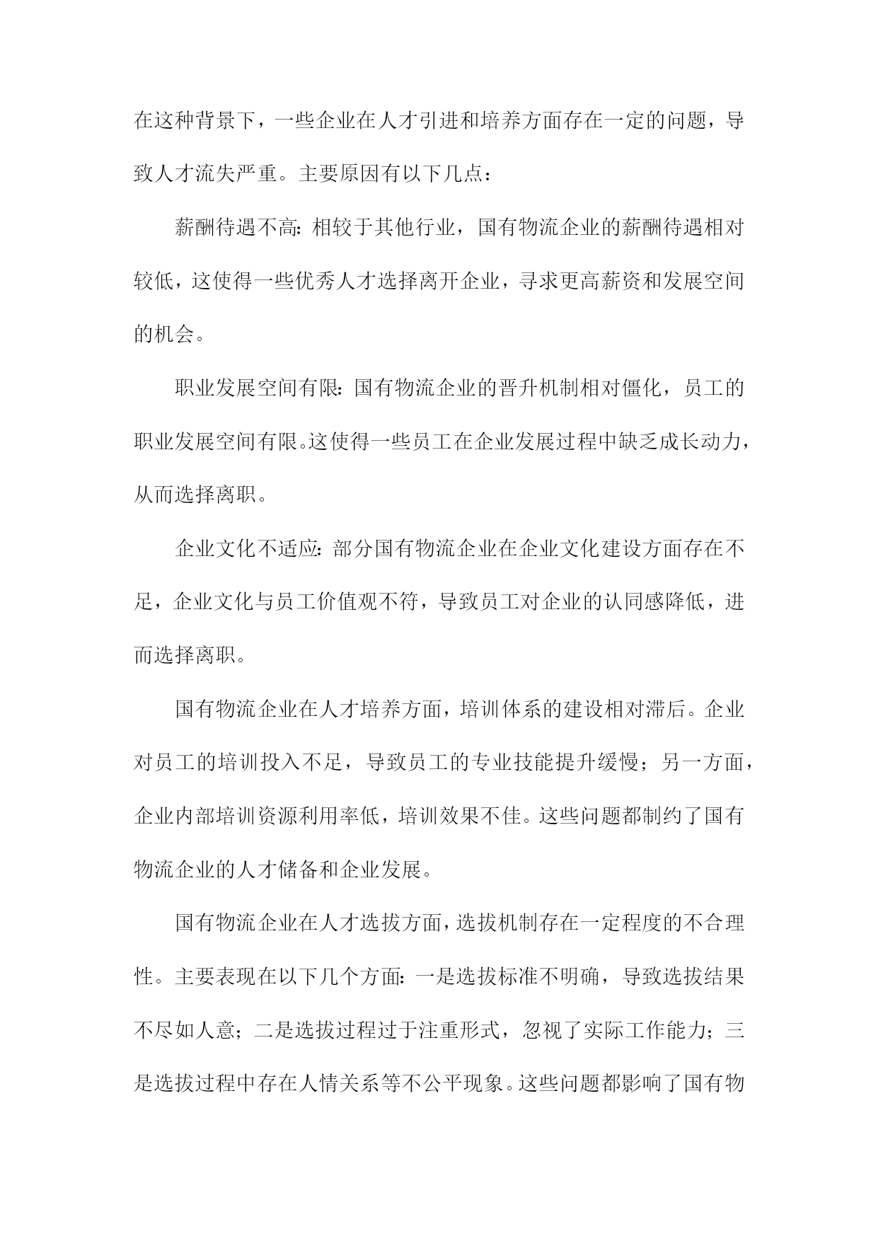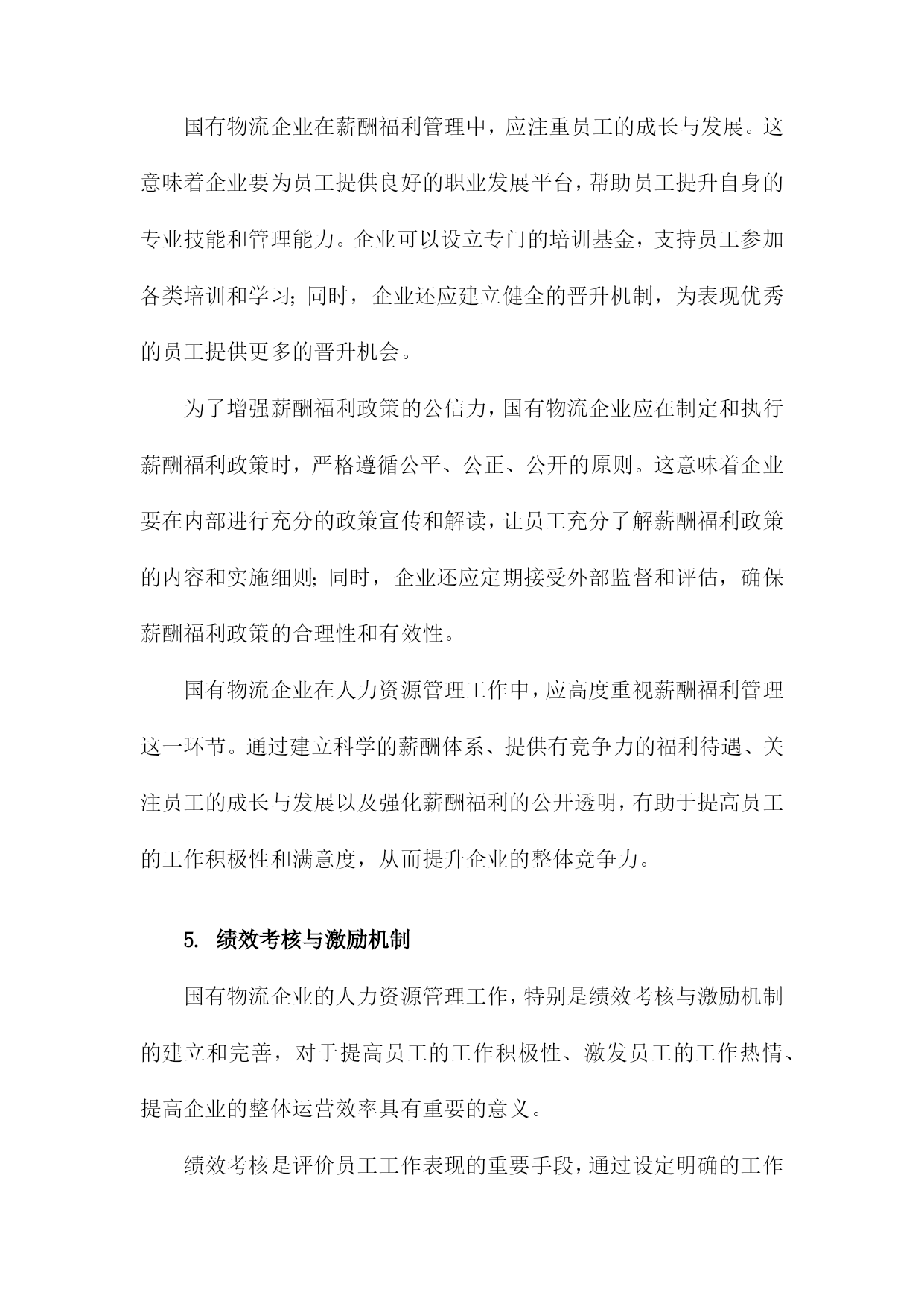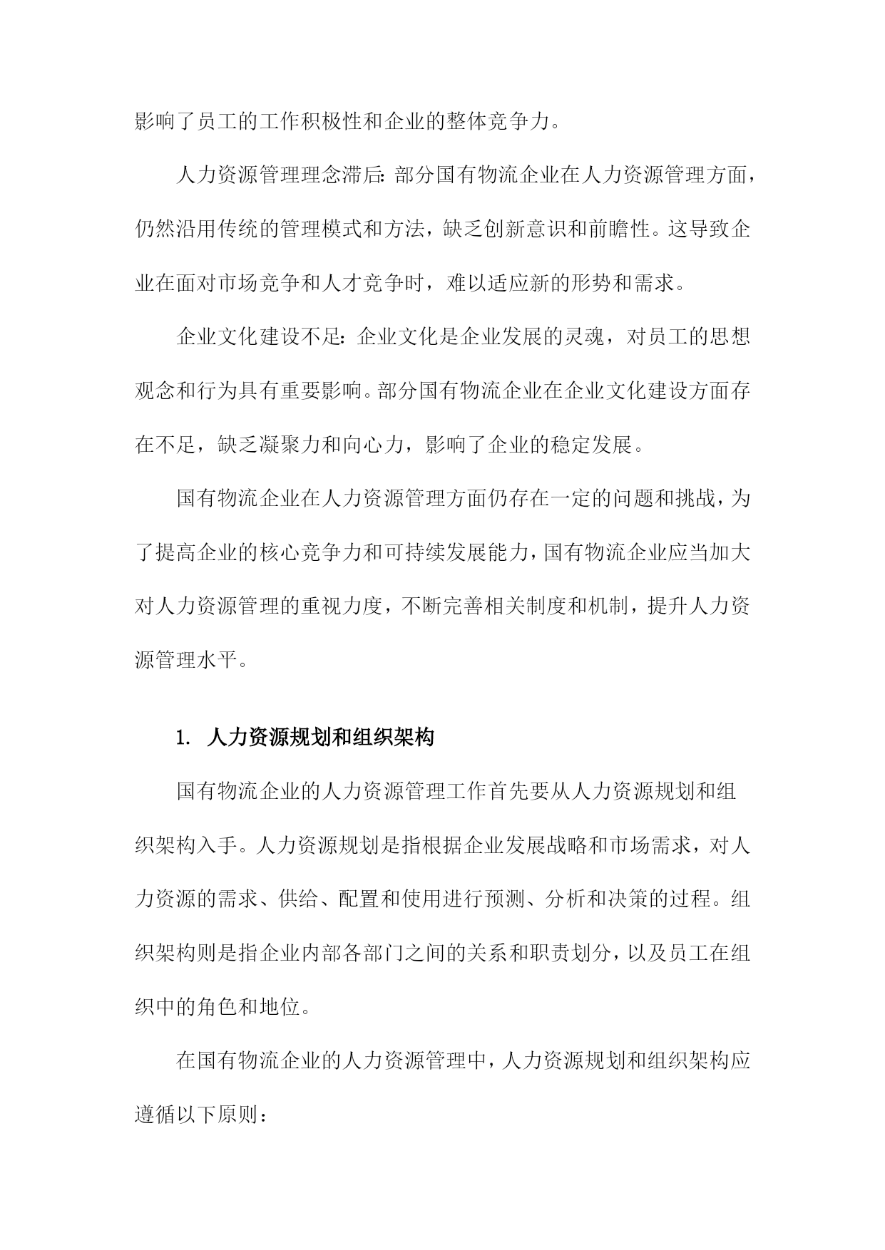国有物流企业人力资源管理工作思考一、国有物流企业人力资源管理的现状随着我国经济的快速发展,物流行业作为国民经济的重要组成部分,其发展速度和规模也在不断扩大。国有物流企业在国家经济发展中起到了举足轻重的作用,为保障国家物资流通和市场供应提供了有力支持。在人力资源管理方面,国有物流企业仍然面临着一些问题和挑战。人力资源配置不合理:由于国有物流企业的发展历史较长,组织结构相对复杂,部分企业在人力资源配置上存在一定的不合理现象,如高龄员工较多、技能型人才短缺等。这导致企业在市场竞争中处于劣势地位,影响了企业的持续发展。薪酬福利制度不完善:尽管国有物流企业的薪酬福利制度在一定程度上得到了改善,但仍存在较大的差距。部分企业薪酬水平偏低,无法吸引和留住优秀人才;福利待遇不够完善,不能满足员工的需求。这些问题导致企业的人才流失严重,影响了企业的稳定发展。培训与发展机制不健全:国有物流企业在培训与发展方面的投入相对较少,培训内容和方式较为单一,不能满足员工不断提升自身技能的需求。企业缺乏完善的晋升机制,使得员工的职业发展空间受限,影响了员工的工作积极性和企业的整体竞争力。人力资源管理理念滞后:部分国有物流企业在人力资源管理方面,仍然沿用传统的管理模式和方法,缺乏创新意识和前瞻性。这导致企业在面对市场竞争和人才竞争时,难以适应新的形势和需求。企业文化建设不足:企业文化是企业发展的灵魂,对员工的思想观念和行为具有重要影响。部分国有物流企业在企业文化建设方面存在不足,缺乏凝聚力和向心力,影响了企业的稳定发展。国有物流企业在人力资源管理方面仍存在一定的问题和挑战,为了提高企业的核心竞争力和可持续发展能力,国有物流企业应当加大对人力资源管理的重视力度,不断完善相关制度和机制,提升人力资源管理水平。1.人力资源规划和组织架构国有物流企业的人力资源管理工作首先要从人力资源规划和组织架构入手。人力资源规划是指根据企业发展战略和市场需求,对人力资源的需求、供给、配置和使用进行预测、分析和决策的过程。组织架构则是指企业内部各部门之间的关系和职责划分,以及员工在组织中的角色和地位。在国有物流企业的人力资源管理中,人力资源规划和组织架构应遵循以下原则:以战略为导向。人力资源规划和组织架构应与企业战略目标相一致,确保人力资源的合理配置和有效利用。注重人才培养。企业应重视员工的培训和发展,提高员工的综合素质和专业技能,为企业发展提供人才保障。强化部门协同。企业各部门之间应加强沟通与协作,形成高效的工作合力,提高整体运营效率。保障员工权益。企业应建立健全员工激励机制和福利制度,关注员工的工作环境和生活质量,提高员工满意度和忠诚度。制定科学的人力资源规划。企业应根据市场变化、行业发展趋势和企业发展战略,明确人力资源需求和供给,制定合理的招聘、培训、晋升和离职政策。优化组织结构。企业应根据业务发展需要,调整部门设置和职责划分,实现组织结构的扁平化和灵活化,提高工作效率。建立有效的人才培养机制。企业应加大培训投入,开展多样化的培训项目,提高员工的专业技能和综合素质。鼓励员工自我学习和成长,为企业发展储备优秀人才。强化部门协同和沟通。企业应加强部门之间的沟通与协作,建立跨部门的项目协作机制,提高整体运营效率。完善员工激励和福利制度。企业应建立科学的薪酬体系,实行绩效考核和奖励机制,激发员工的工作积极性。完善员工福利制度,关注员工的生活品质,提高员工满意度和忠诚度。2.招聘与选拔国有物流企业在招聘时应根据企业发展战略、市场规模和人才需求,制定合适的招聘策略。这包括明确招聘岗位的职责、要求和薪酬水平,以及招聘渠道的选择等。企业还应关注行业发展趋势,以便及时调整招聘策略。为了提高招聘效率和质量,国有物流企业应不断优化招聘流程。这包括简化简历筛选、面试安排和录用决策等环节,确保招聘过程的公平、公正和透明。企业还应加强对应聘者的培训和指导,帮助他们更好地适应企业文化和工作环境。国有物流企业在选拔员工时,应建立科学、合理的选拔标准和方法。这包括对应聘者的基本素质、工作经验、专业技能和综合素质等方面进行全面评估。企业还应注重考察应聘者的团队协作能力、沟通能力和创新能力等软性素质,以确保选拔出具备潜力的优秀人才。为了激发员工的工作积极性和创造力,国有物流企业应建立有效的激励机制和考核体系。这包括设立竞争性的薪酬福利制度、晋升机制和培训机会等,以吸引和留住优秀人才。企业还应定期对员工进行绩效考核,以便及时发现问题并进行改进。国有物流企业在招聘与选拔环节应注重人才的培养和发展,通过优化招聘策略、完善选拔标准和方法以及建立有效的激励机制和考核体系,为企业的长远发展提供有力的人才支持。3.培训与发展在国有物流企业的人力资源管理工作中,培训与发展是至关
