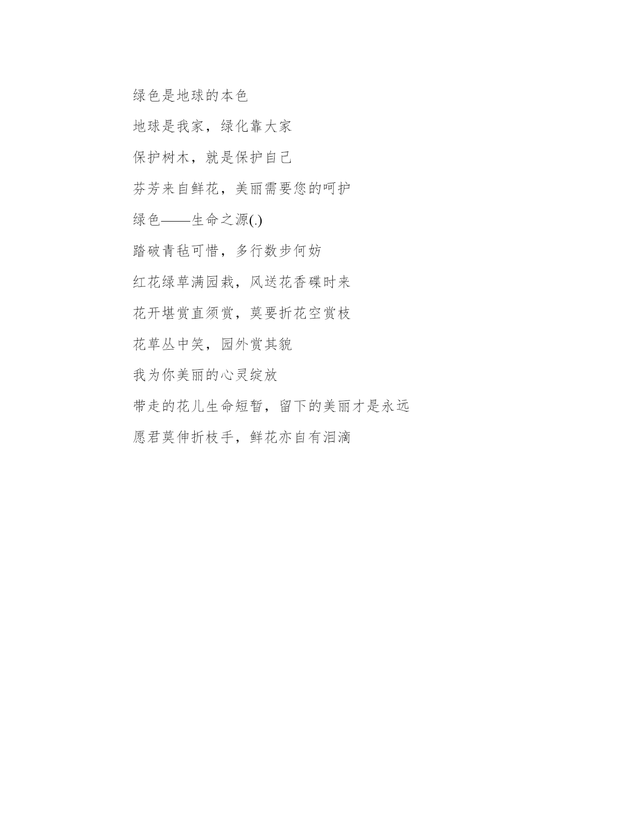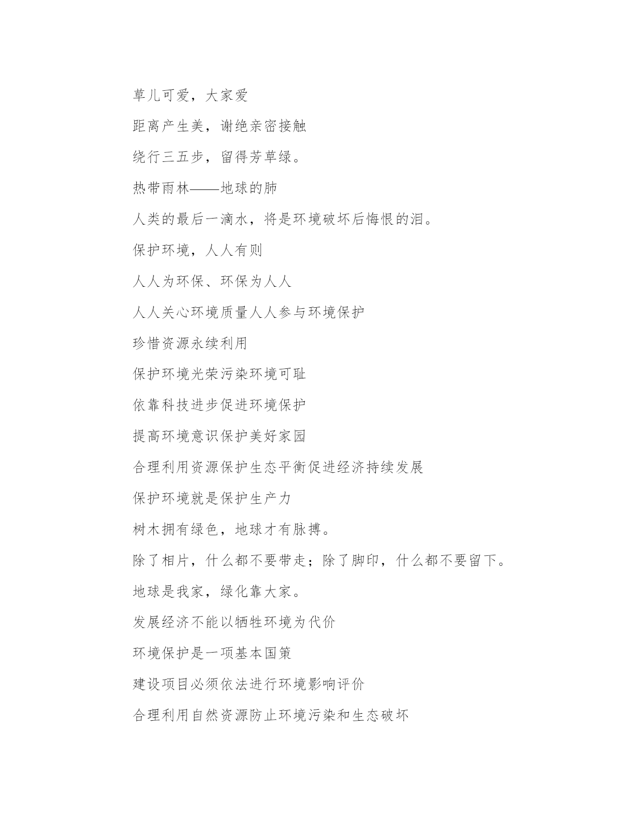 关于公共场所公益广告词集锦“痰吐”得体,从我做起。让您的痰吐与谈吐同样高雅。公共场所,测试美德,不设监考,祝您合格。距离产生美,谢绝亲密接触。(保护草坪)带走的花儿生命短暂,留下的美丽才是永远。敬请脚下留“青”。垃圾箱说:您丢弃的正是我需要的。把美的记忆带走,把美的心灵留下。喜欢你深情的注视,讨厌用刀子表达对我的刻骨铭心。除了脚印的痕迹什么也别留下,除了照片美丽什么也别带走。除了记忆什么也不带走,除了脚印什么也别留下保护环境的公益广告一花一草皆生命,一枝一叶总关情。来时给你一阵芳香,走时还我一身洁净。小草有生命,足下多留“青”。小草对您微微笑,请您把路绕一绕。欲揽春色入自家,无可奈何成落花。我是一只小小小鸟,总是飞呀飞不高。1+1=2,一棵树+一棵树=一片树林种一棵树,种一枝花,世界会更美好草儿可爱,大家爱距离产生美,谢绝亲密接触绕行三五步,留得芳草绿。热带雨林——地球的肺人类的最后一滴水,将是环境破坏后悔恨的泪。保护环境,人人有则人人为环保、环保为人人人人关心环境质量人人参与环境保护珍惜资源永续利用保护环境光荣污染环境可耻依靠科技进步促进环境保护提高环境意识保护美好家园合理利用资源保护生态平衡促进经济持续发展保护环境就是保护生产力树木拥有绿色,地球才有脉搏。除了相片,什么都不要带走;除了脚印,什么都不要留下。地球是我家,绿化靠大家。发展经济不能以牺牲环境为代价环境保护是一项基本国策建设项目必须依法进行环境影响评价合理利用自然资源防止环境污染和生态破坏绿色是地球的本色地球是我家,绿化靠大家保护树木,就是保护自己芬芳来自鲜花,美丽需要您的呵护绿色——生命之源(.)踏破青毡可惜,多行数步何妨红花绿草满园栽,风送花香碟时来花开堪赏直须赏,莫要折花空赏枝花草丛中笑,园外赏其貌我为你美丽的心灵绽放带走的花儿生命短暂,留下的美丽才是永远愿君莫伸折枝手,鲜花亦自有泪滴