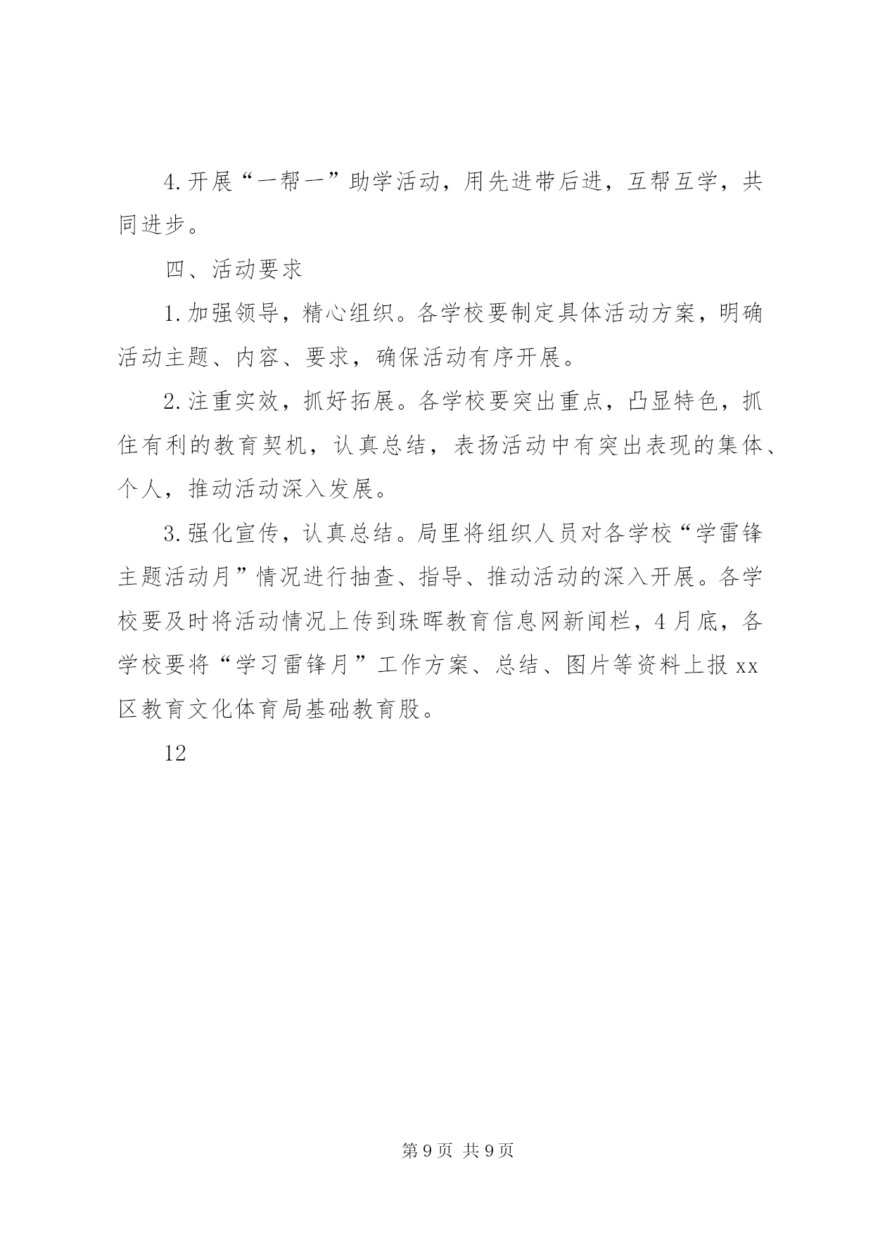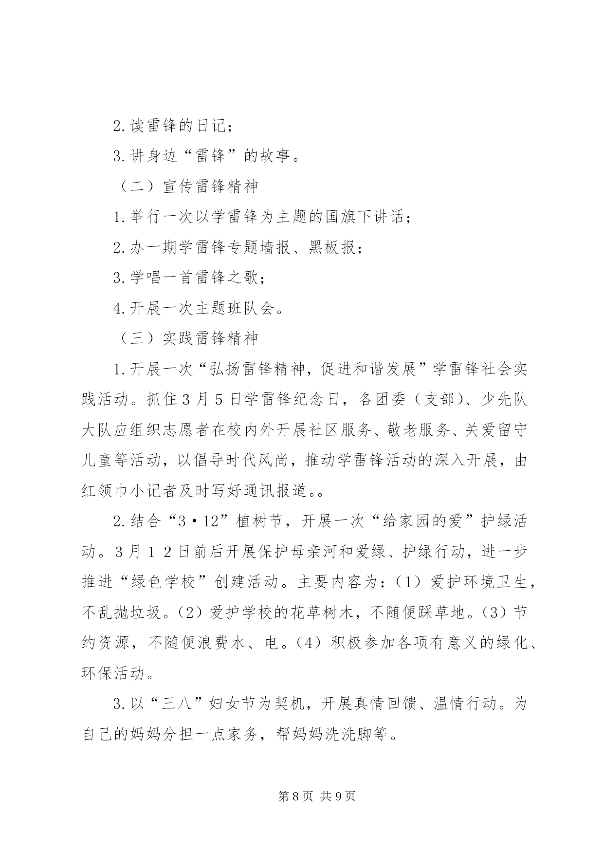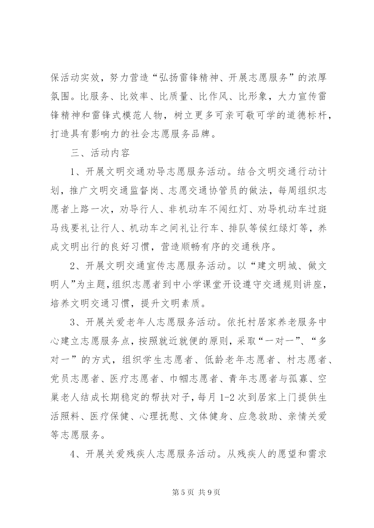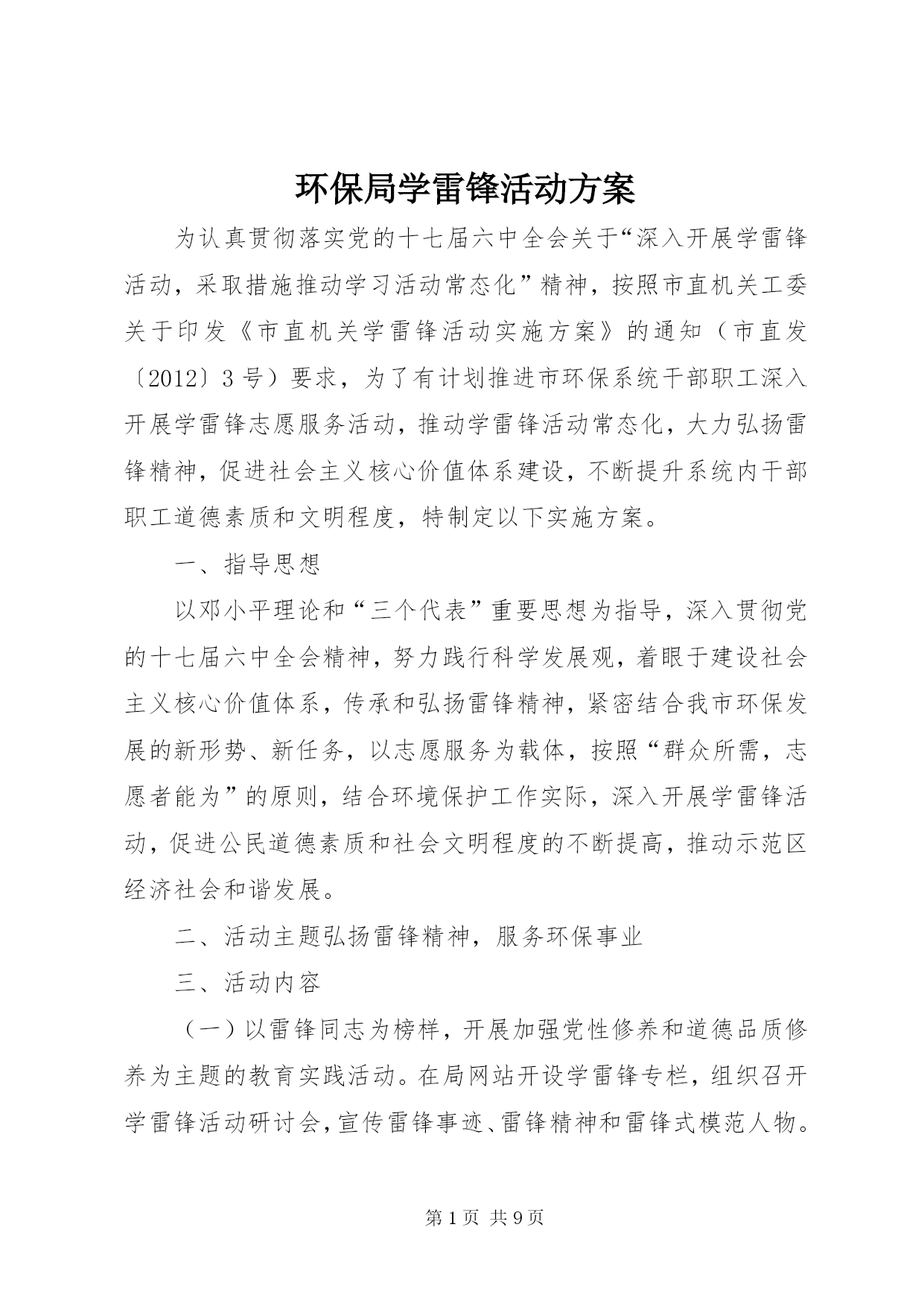 第PAGE\*Arabic\*MERGEFORMAT9页共NUMPAGES\*MERGEFORMAT9页环保局学雷锋活动方案为认真贯彻落实党的十七届六中全会关于“深入开展学雷锋活动,采取措施推动学习活动常态化”精神,按照市直机关工委关于印发《市直机关学雷锋活动实施方案》的通知(市直发〔2012〕3号)要求,为了有计划推进市环保系统干部职工深入开展学雷锋志愿服务活动,推动学雷锋活动常态化,大力弘扬雷锋精神,促进社会主义核心价值体系建设,不断提升系统内干部职工道德素质和文明程度,特制定以下实施方案。一、指导思想以邓小平理论和“三个代表”重要思想为指导,深入贯彻党的十七届六中全会精神,努力践行科学发展观,着眼于建设社会主义核心价值体系,传承和弘扬雷锋精神,紧密结合我市环保发展的新形势、新任务,以志愿服务为载体,按照“群众所需,志愿者能为”的原则,结合环境保护工作实际,深入开展学雷锋活动,促进公民道德素质和社会文明程度的不断提高,推动示范区经济社会和谐发展。二、活动主题弘扬雷锋精神,服务环保事业三、活动内容(一)以雷锋同志为榜样,开展加强党性修养和道德品质修养为主题的教育实践活动。在局网站开设学雷锋专栏,组织召开学雷锋活动研讨会,宣传雷锋事迹、雷锋精神和雷锋式模范人物。以社会主义核心价值体系和中国环保精神为先导,以“三思三知三守三立”为主要内容,以“砥砺品德树正气,修炼操行求作为”为目标,努力建设一支“品位高、品格优、品质好、品行正”的党员干部队伍,塑造环保精神,推进环保事业的发展,树立环保部门的良好形象。(二)组织开展实践活动,用实际行动弘扬新时代下雷锋精神。广泛开展志愿服务活动,推动建立参与广泛、形式多样、内容丰富、机构健全的志愿服务体系,引导广大干部职工结合工作实际,开展倡导环境保护、帮扶困难、奉献爱心等活动,以实际行动发扬雷锋精神。1、广泛开展“帮困解难、奉献爱心”活动。通过联村(社区)、联企业、联学校等方式,组织并落实每个机关党员干部结对帮扶一个困难户或一个贫困学生,保证每人每年帮扶金额不低于300元。继续在“七一”前后,走访慰问一批困难党员,真正体现组织上的温暖,表达同志间的关爱。2、从4月份起,“学雷锋”志愿服务活动进入常态化。立足环保局本职工作,广泛开展“岗位学雷锋、争做好员工”活动,把雷锋精神转化为系统内同志敬业爱岗、努力工作、敢于拼搏、敢于创先争优的内在动力。把“学雷锋”志愿服务活动与窗口服务单位创先争优活动相结合,着力提高服务意识,提升工作效能,用实际行动诠释当代的雷锋精神。3、与市林业局、市住房和城乡建设局、市城管局、市公安交警支队一起,组织环保志愿者开展“义务植树”、保护市容环境等行动,增强群众的环境意识,着力打造整洁、亮丽的XX县区环境。4、大力宣讲雷锋精神,营造市环保系统学雷锋的浓厚氛围。要把雷锋精神纳入中心组学习、“三会一课”、机关政治学习的规定内容,作为单位局域网、板报栏宣传的重要方面;及时总结宣讲本单位学雷锋的典型人物和先进事迹,促使广大机关党员干部对雷锋精神入心入脑,将学雷锋化作自觉行动。四、工作要求(一)加强组织领导。充分认识当前新形势下学雷锋活动的重要意义,把学雷锋活动摆上党组重要议事日程,周密安排部署,精心组织实施。成立环保系统学雷锋领导小组,党组书记李寿云为组长,其他党组成员为副组长。学雷锋办公室设政工科,具体落实学雷锋活动实施方案中的具体事务。(二)注重群众参与。坚持工、青、妇多部门联动,多搭建群众便于参与的平台,吸引广大群众参与到学雷锋活动中来。丰富活动题材,推动学雷锋志愿服务工作,为今后环保志愿服务活动的开展增添活力。(三)不断改进创新。坚持以创新精神推进学雷锋活动,使学雷锋活动常做常新,不断焕发生机活力。全系统要结合环境保护工作实际,以建设“五个邵阳”为目标,积极拓展活动内容,创新活动载体,不断赋予学雷锋活动以新的形式,弘扬雷锋精神。(四)力求实效。把活动开展纳入党员评议、目标考核和年度考核的范围,作为加强队伍建设的有效载体和推动中心工作的强大动力。12一、指导思想认真贯彻落实党的十七届六中全会和中共中央办公厅《关于深入开展学雷锋活动的意见》以及省、市、区、街道有关文件及会议精神,深入开展学雷锋活动,弘扬和培育民族精神,构建社会主义核心价值体系,促进社会和谐发展,增强责任感和时代感。推动学雷锋活动常态化、机制化。二、总体要求1、村要明确目标、扎实推进开展学雷锋志愿服务活动,要着眼于提升公民思想道德素质和社会文明程度,以传承和弘扬雷锋精神为主题,以青少年为重点,以社会志愿服务为载体,营造人人参与志愿服务的良好社会氛围。2、要切合实际,深入持久。要坚持学雷锋活动与文明城市创建相结合,与公民道德建设相结合,与志愿服务相结合,与人们的日常学习工作和生活相结合,广泛