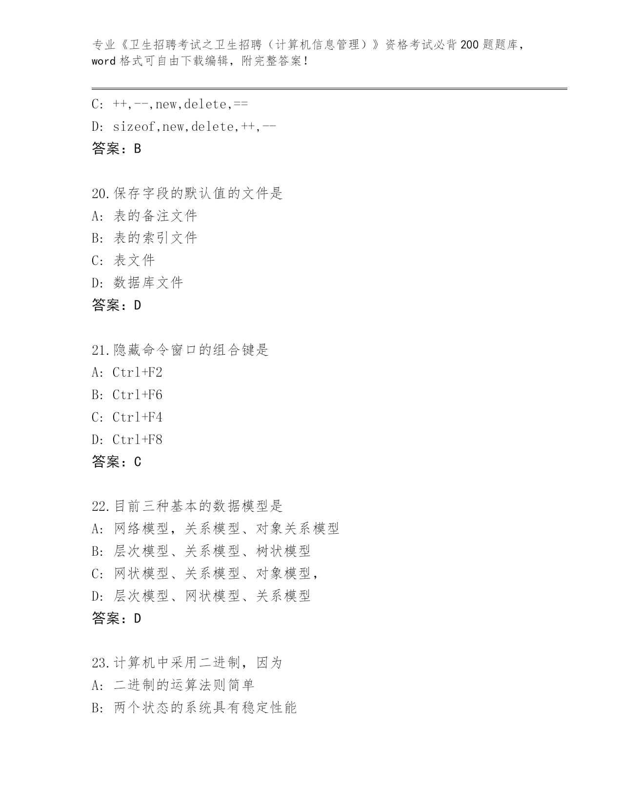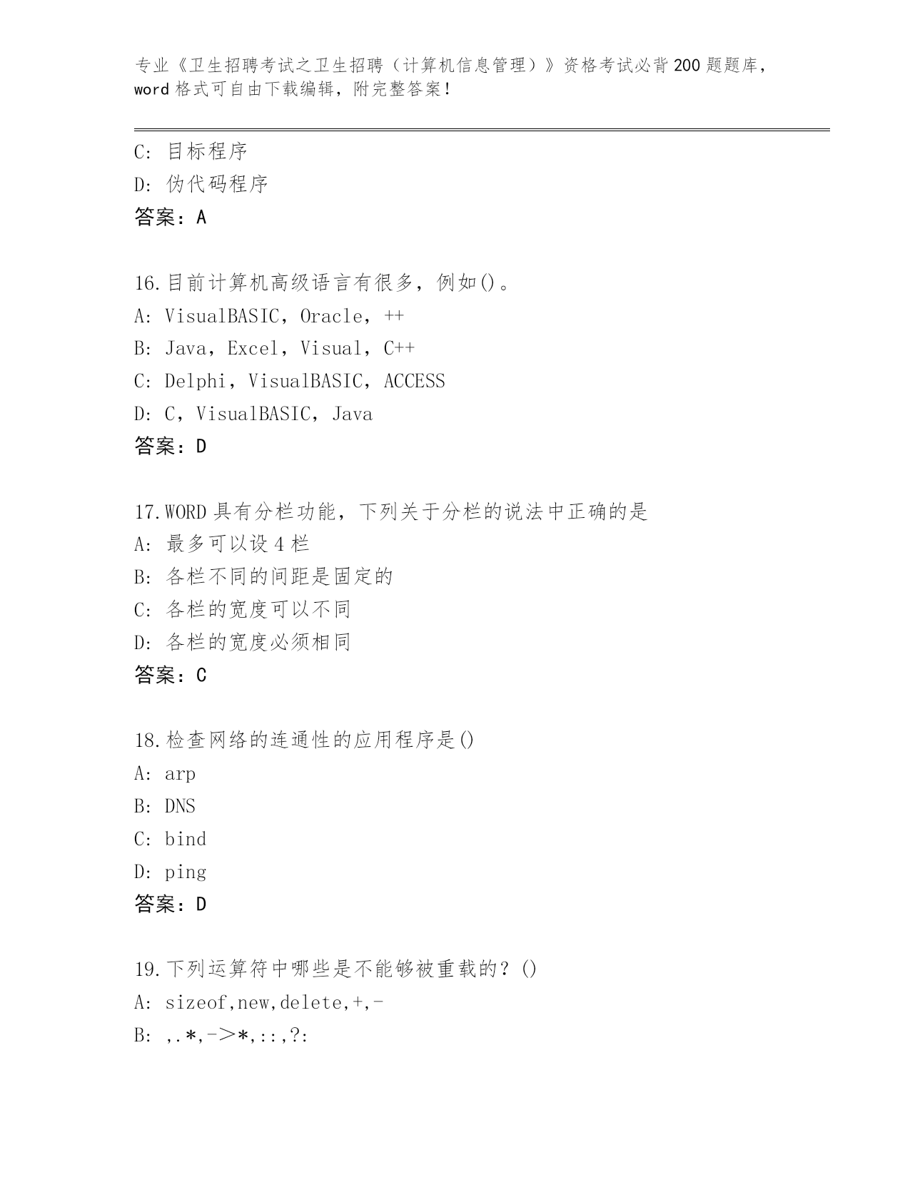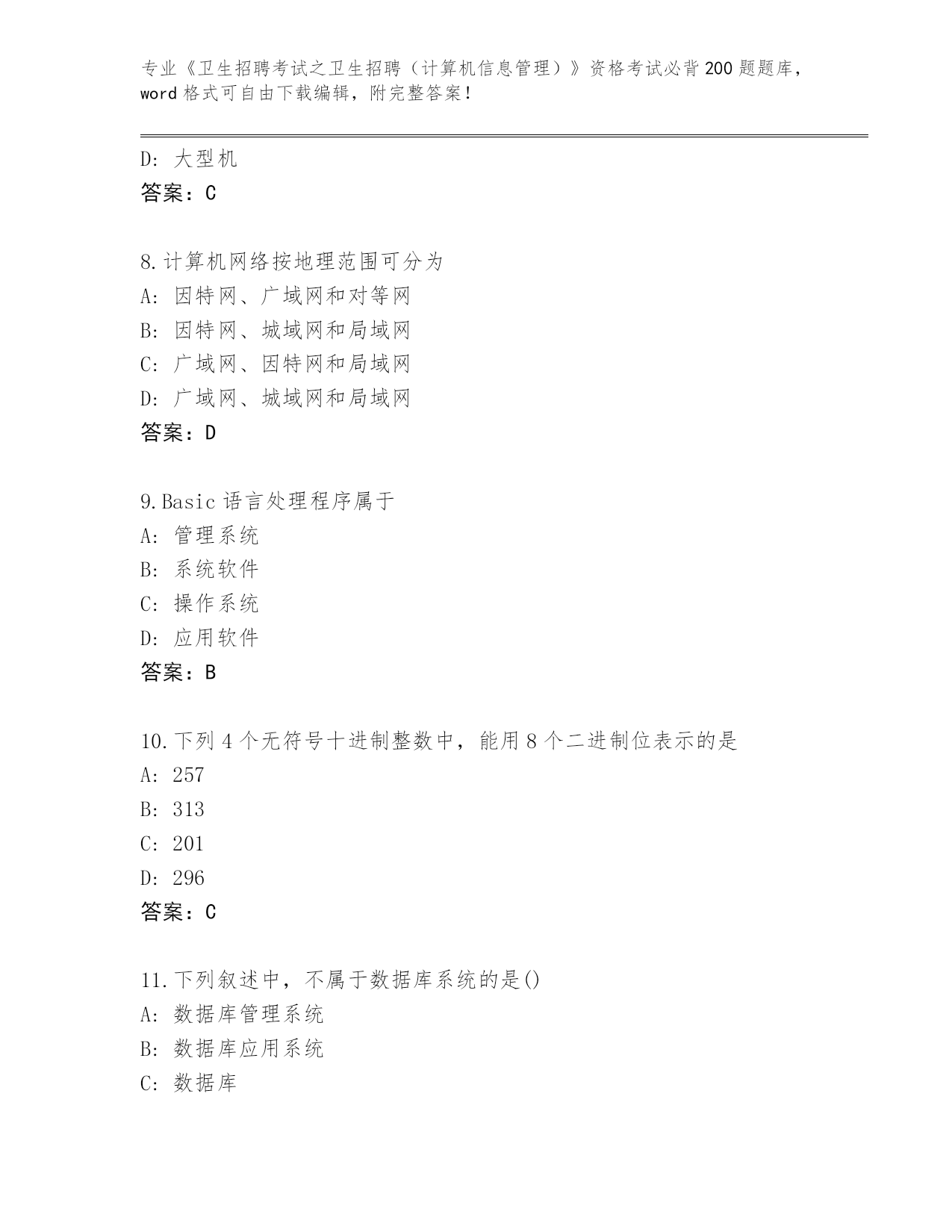 浙江省遂昌县历年《卫生招聘考试之卫生招聘(计算机信息管理)》资格考试必背200题及下载答案