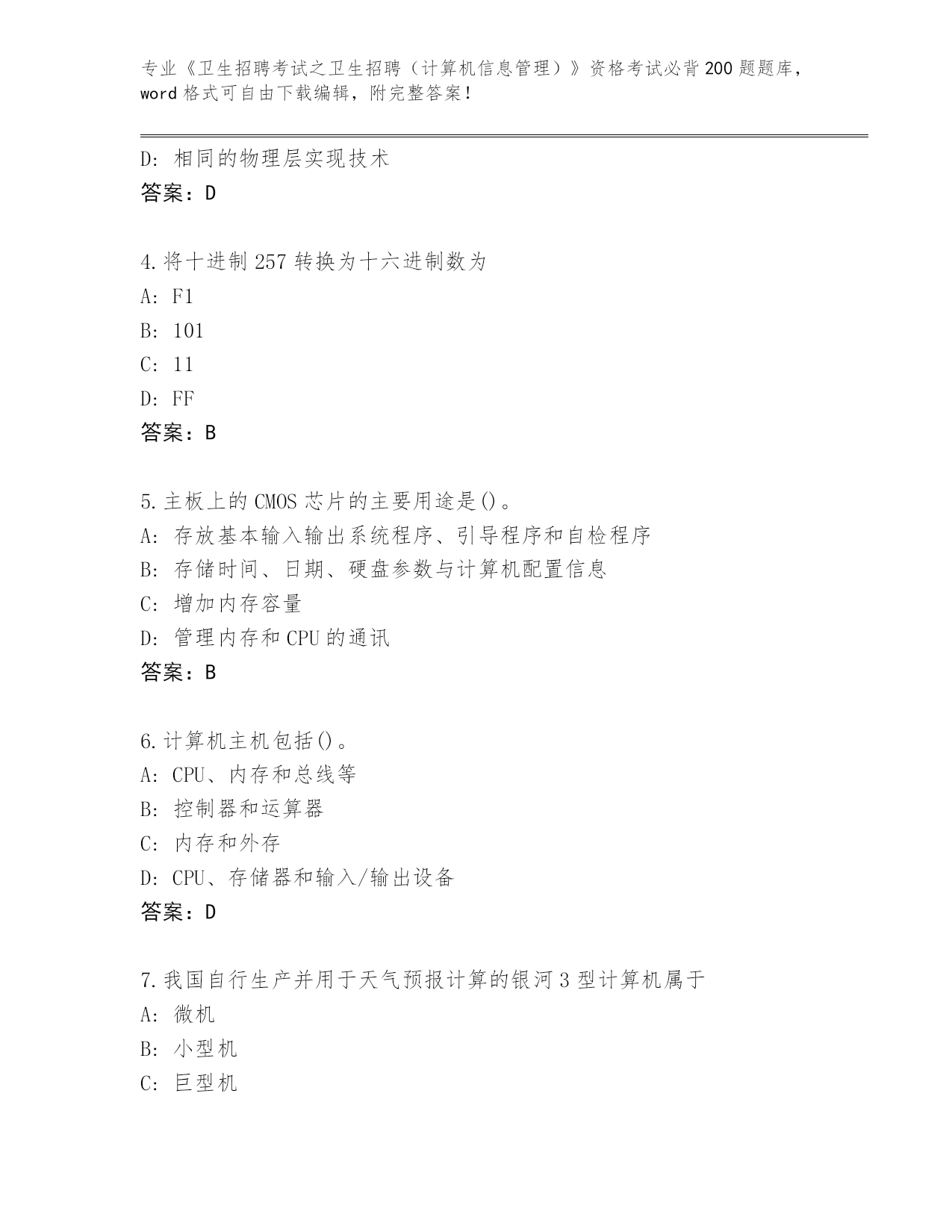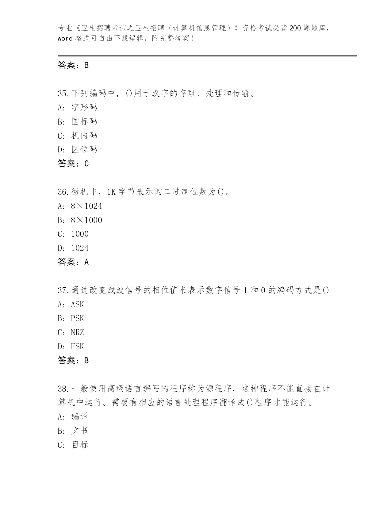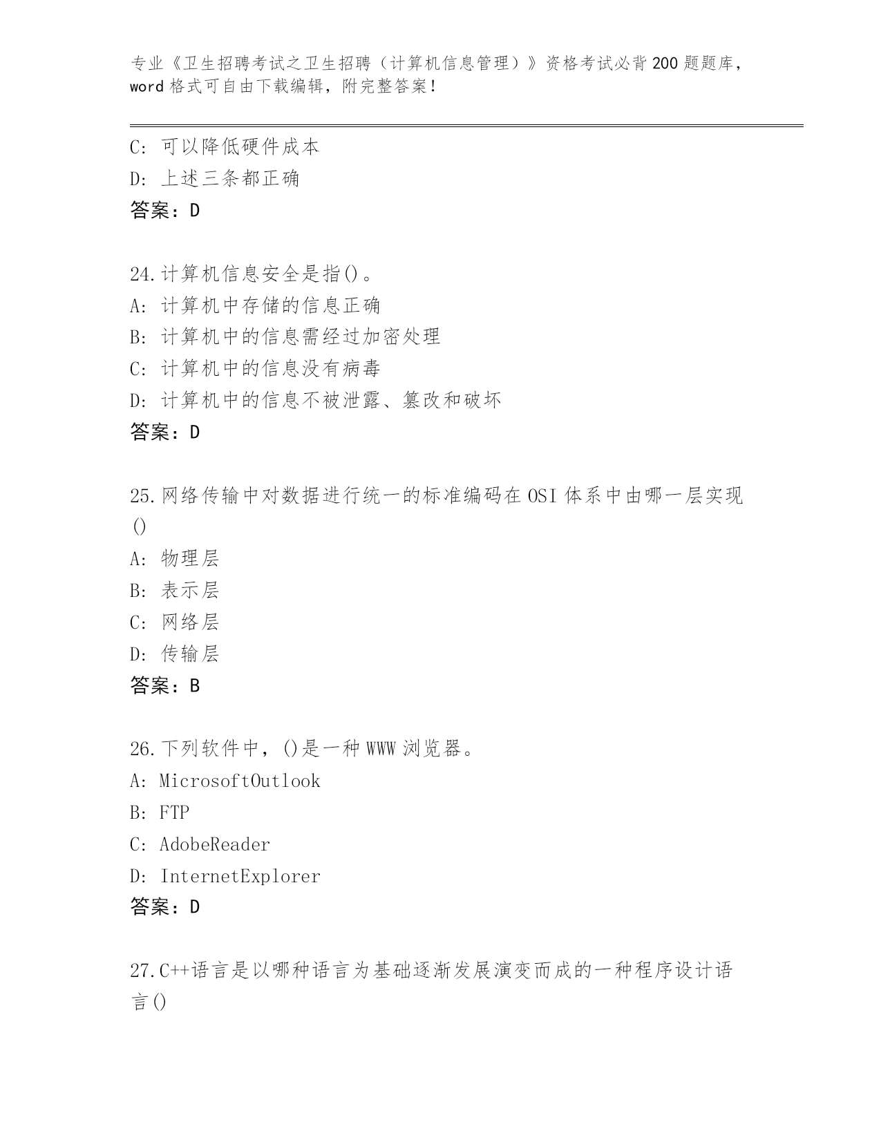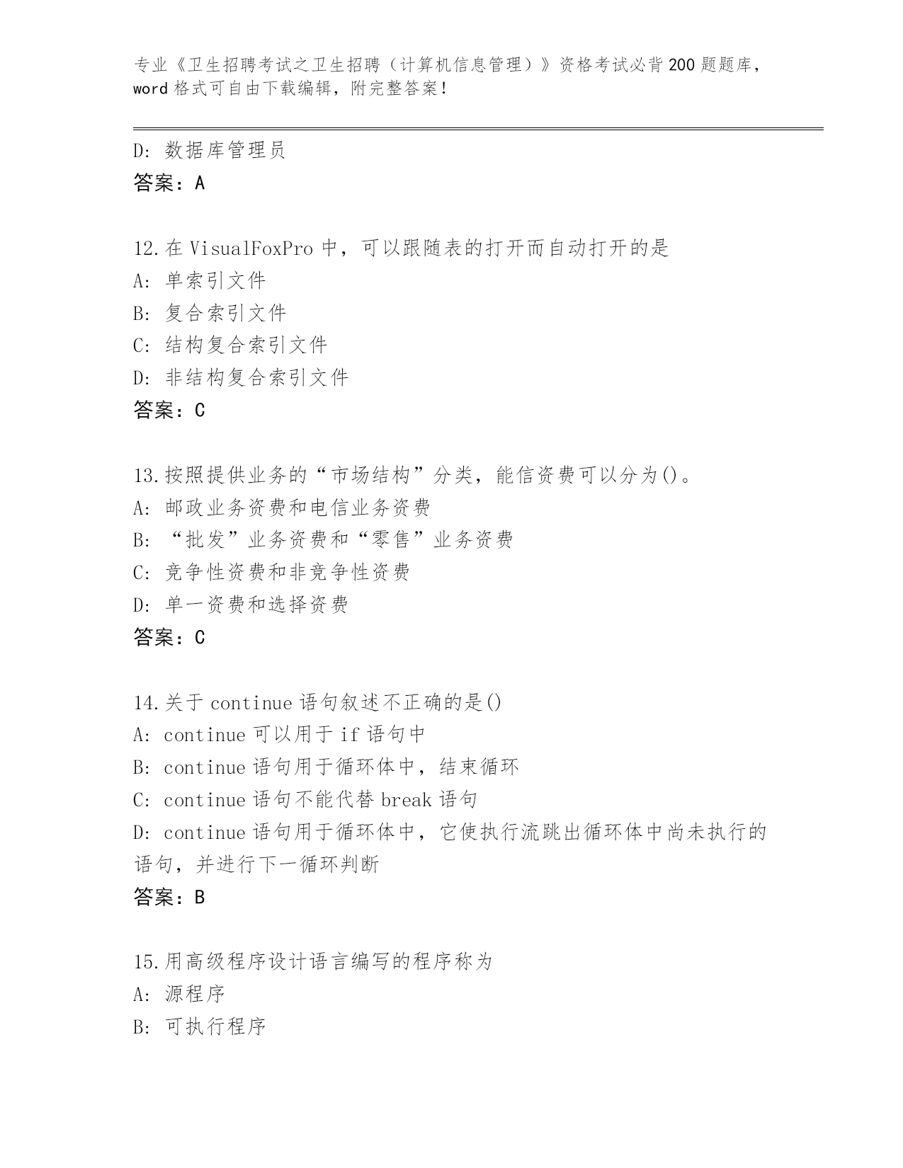 浙江省遂昌县历年《卫生招聘考试之卫生招聘(计算机信息管理)》资格考试必背200题及下载答案