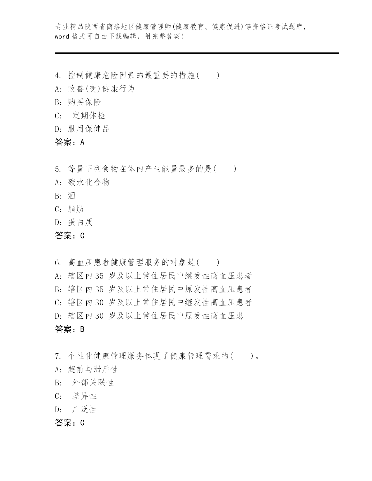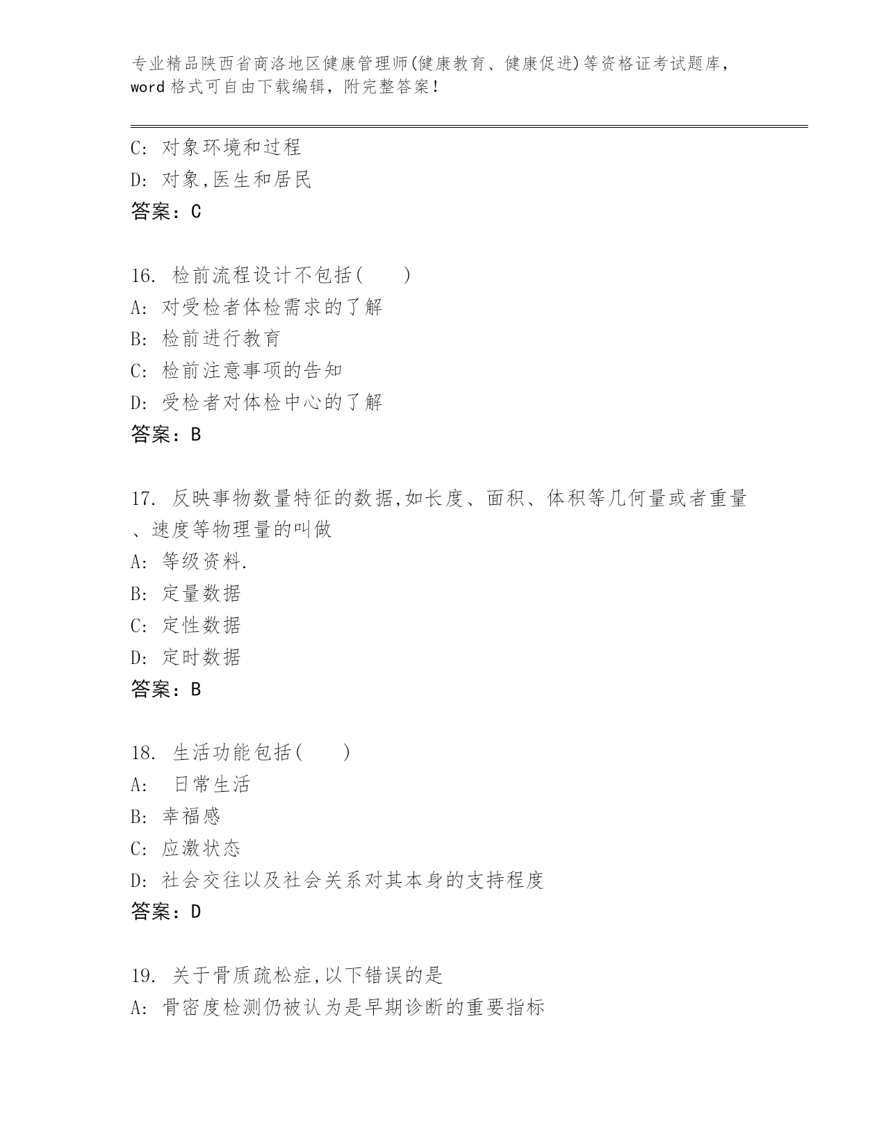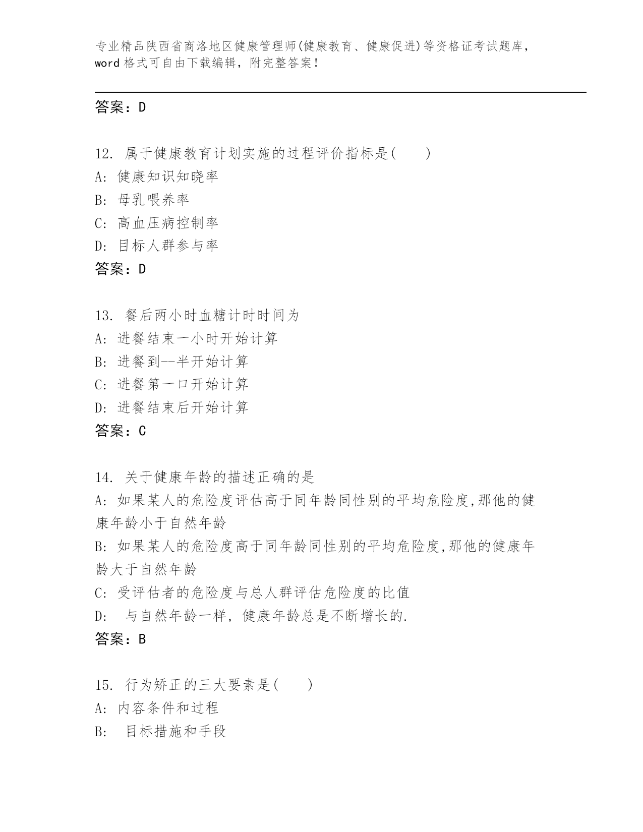 优选陕西省商洛地区健康管理师(健康教育、健康促进)等资格证考试内部题库汇总