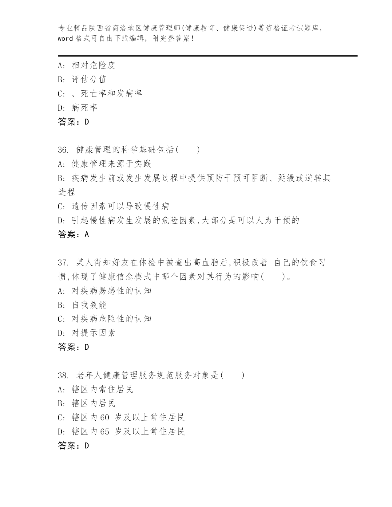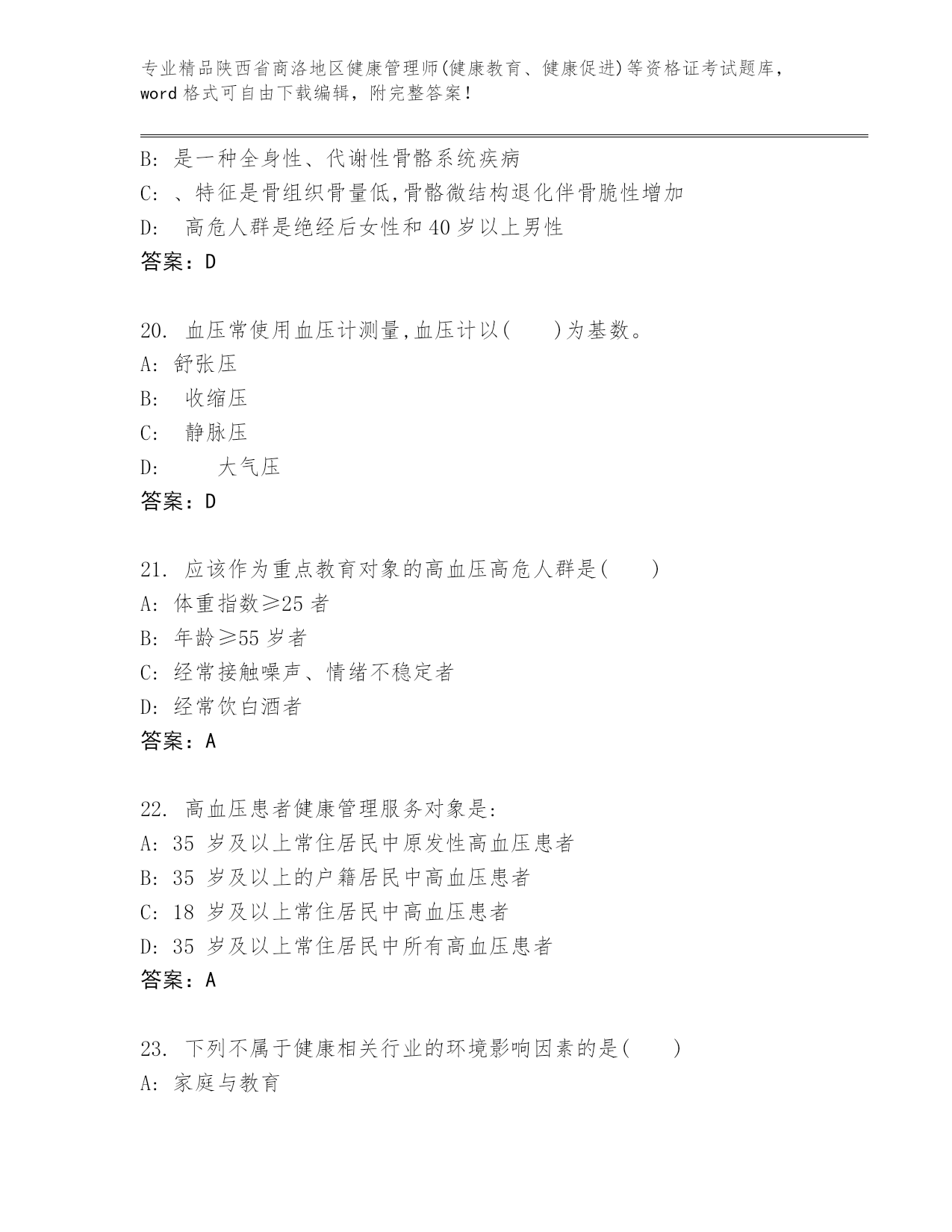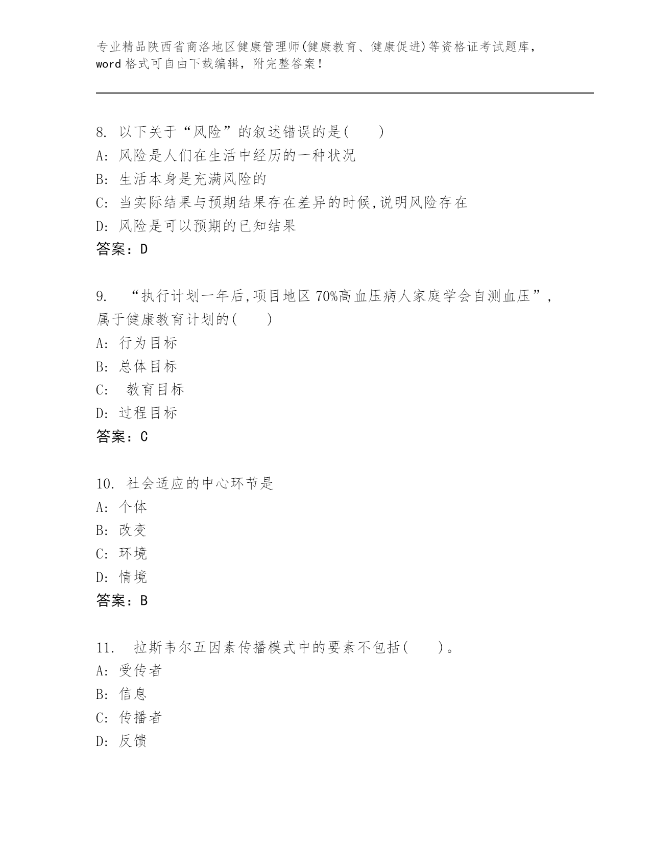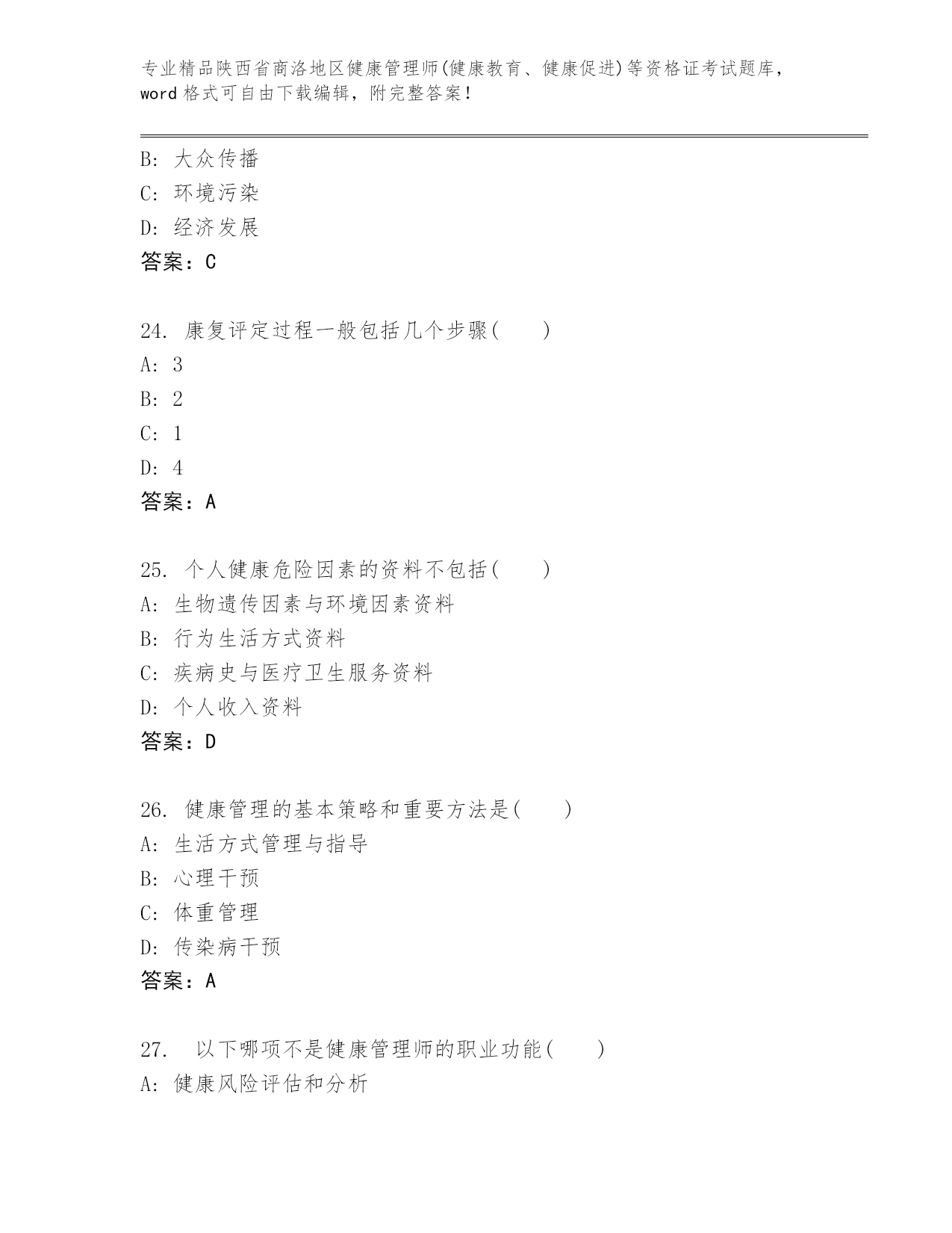 优选陕西省商洛地区健康管理师(健康教育、健康促进)等资格证考试内部题库汇总