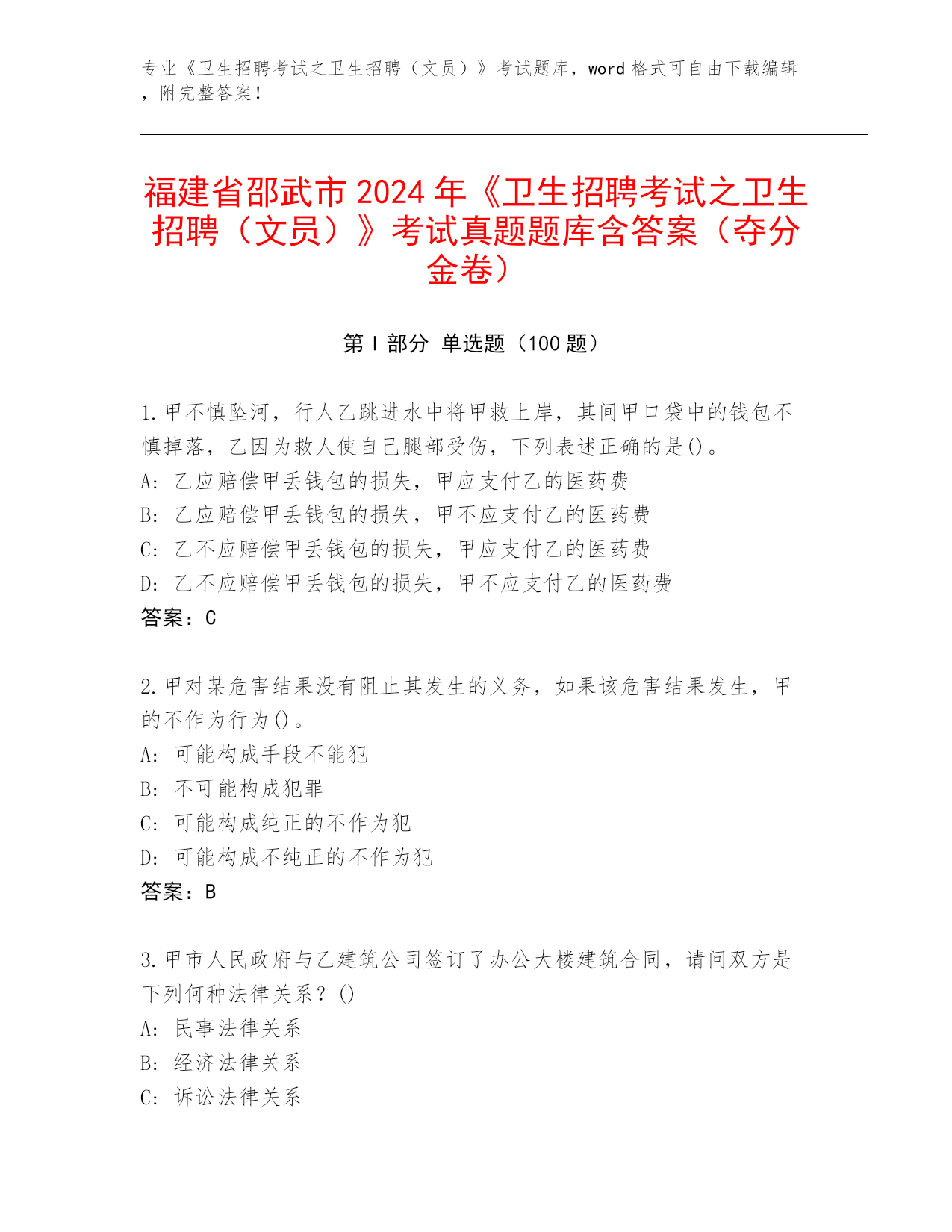 福建省邵武市2024年《卫生招聘考试之卫生招聘(文员)》考试真题题库含答案(夺分金卷)