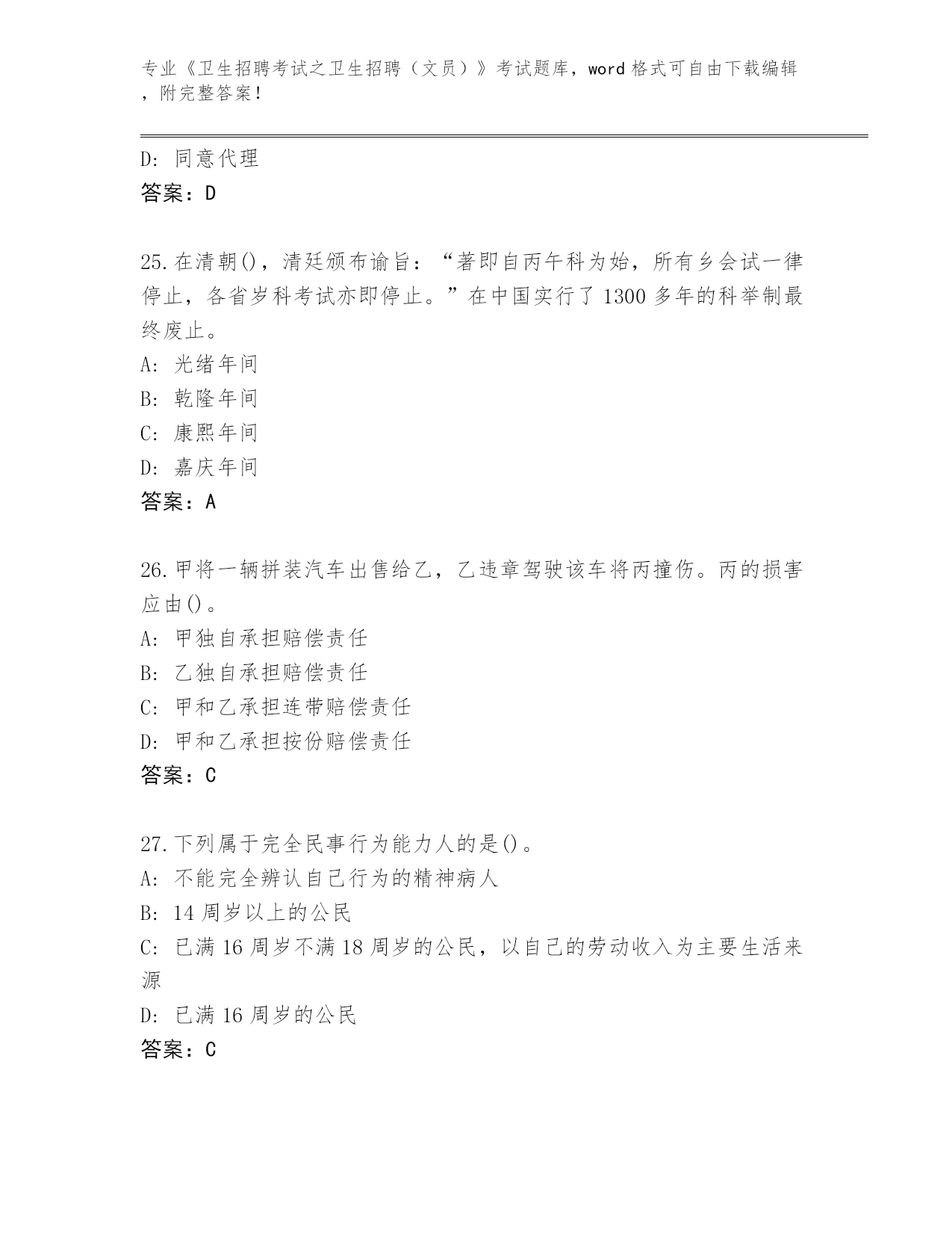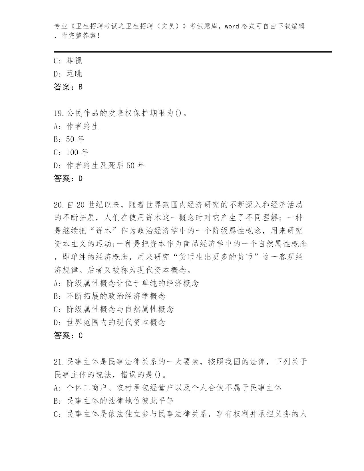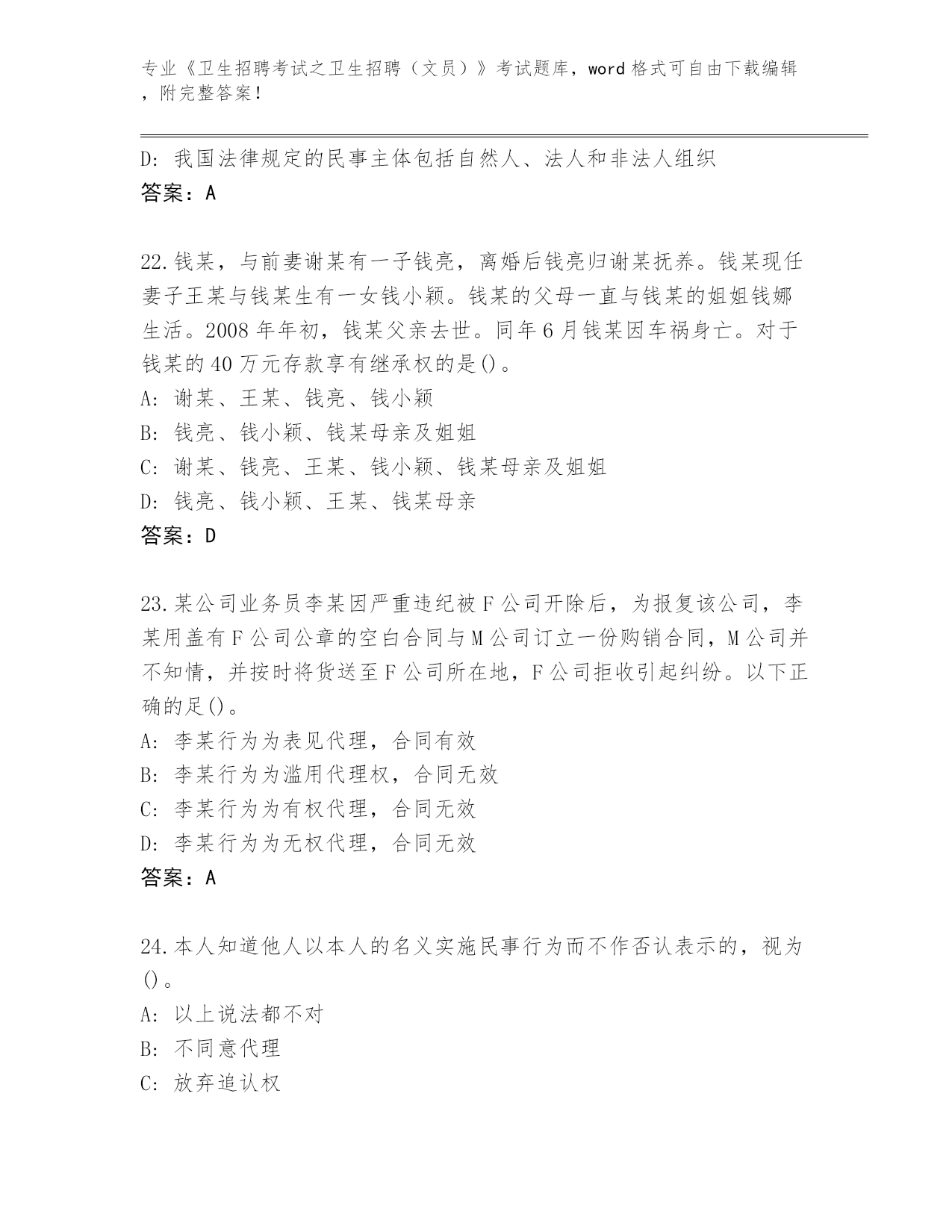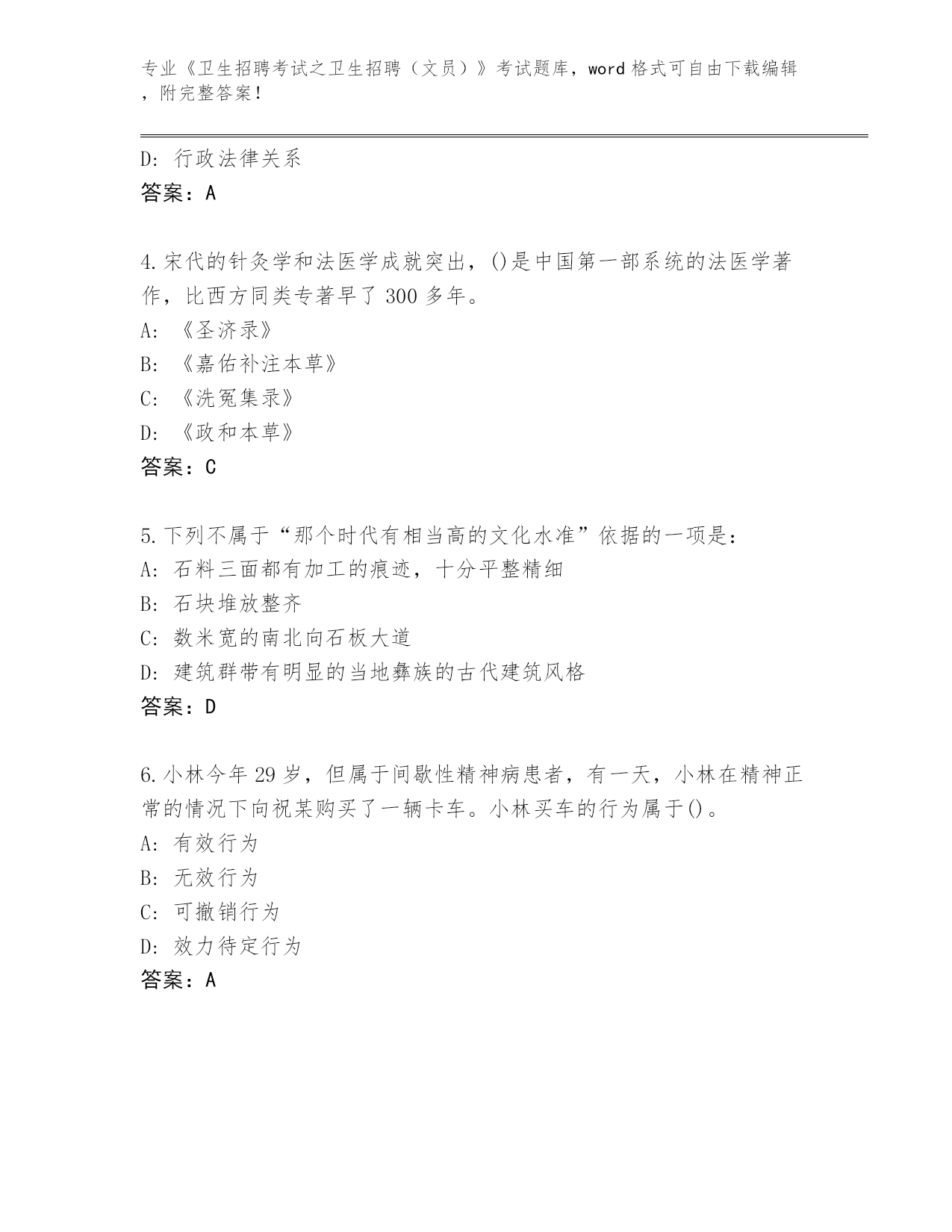 福建省邵武市2024《卫生招聘考试之卫生招聘(文员)》考试必考200题真题附答案【综合卷】