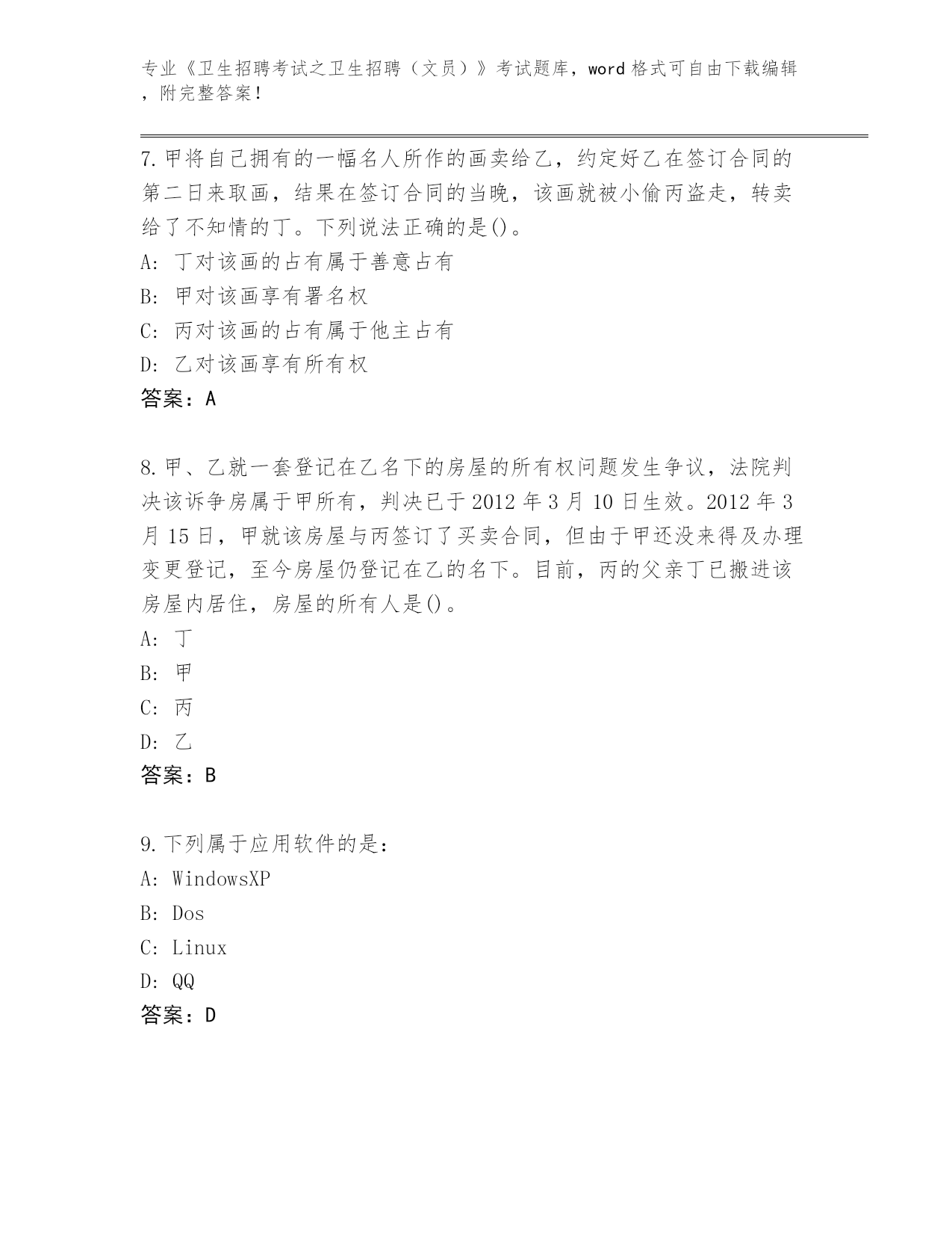 甘肃省《卫生招聘考试之卫生招聘(文员)》资格考试真题题库(夺分金卷)