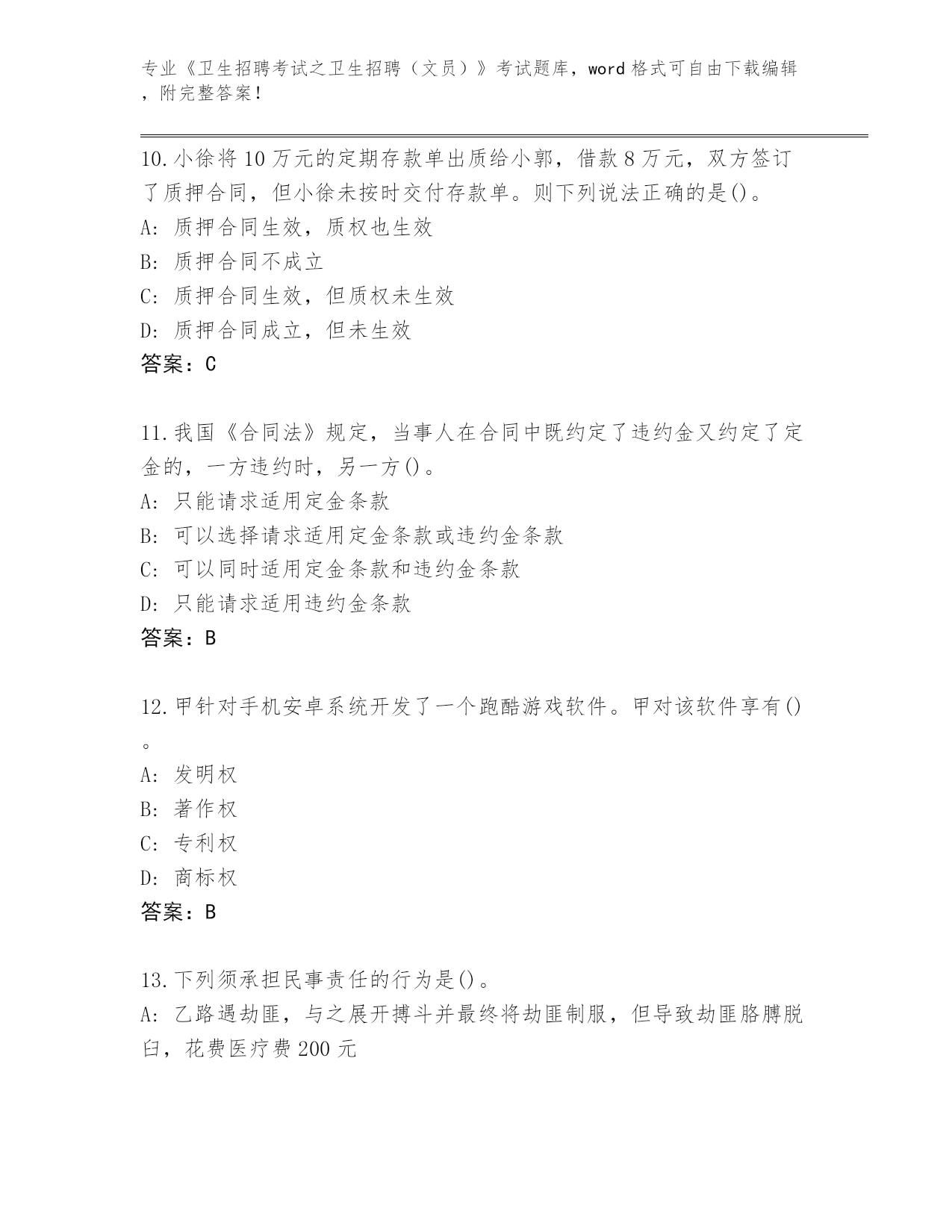江苏省《卫生招聘考试之卫生招聘(文员)》考试必刷200题真题题库含答案【夺分金卷】