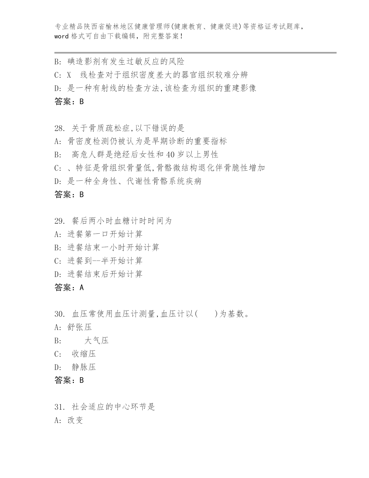 精品陕西省榆林地区健康管理师(健康教育、健康促进)等资格证考试王牌题库加答案