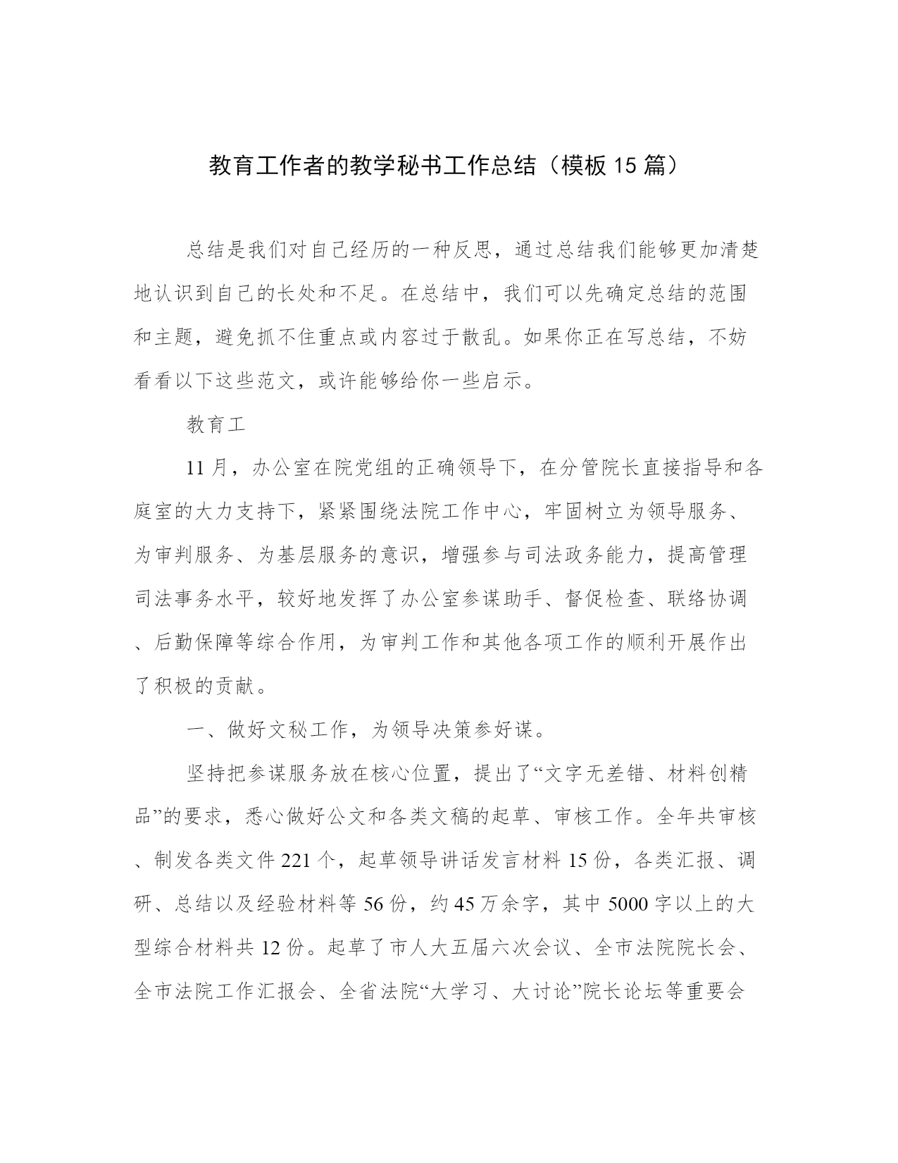 教育工作者的教学秘书工作总结(模板15篇).docx