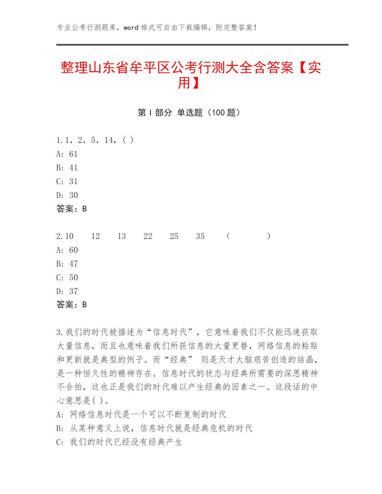 整理山东省牟平区公考行测大全含答案【实用】.docx