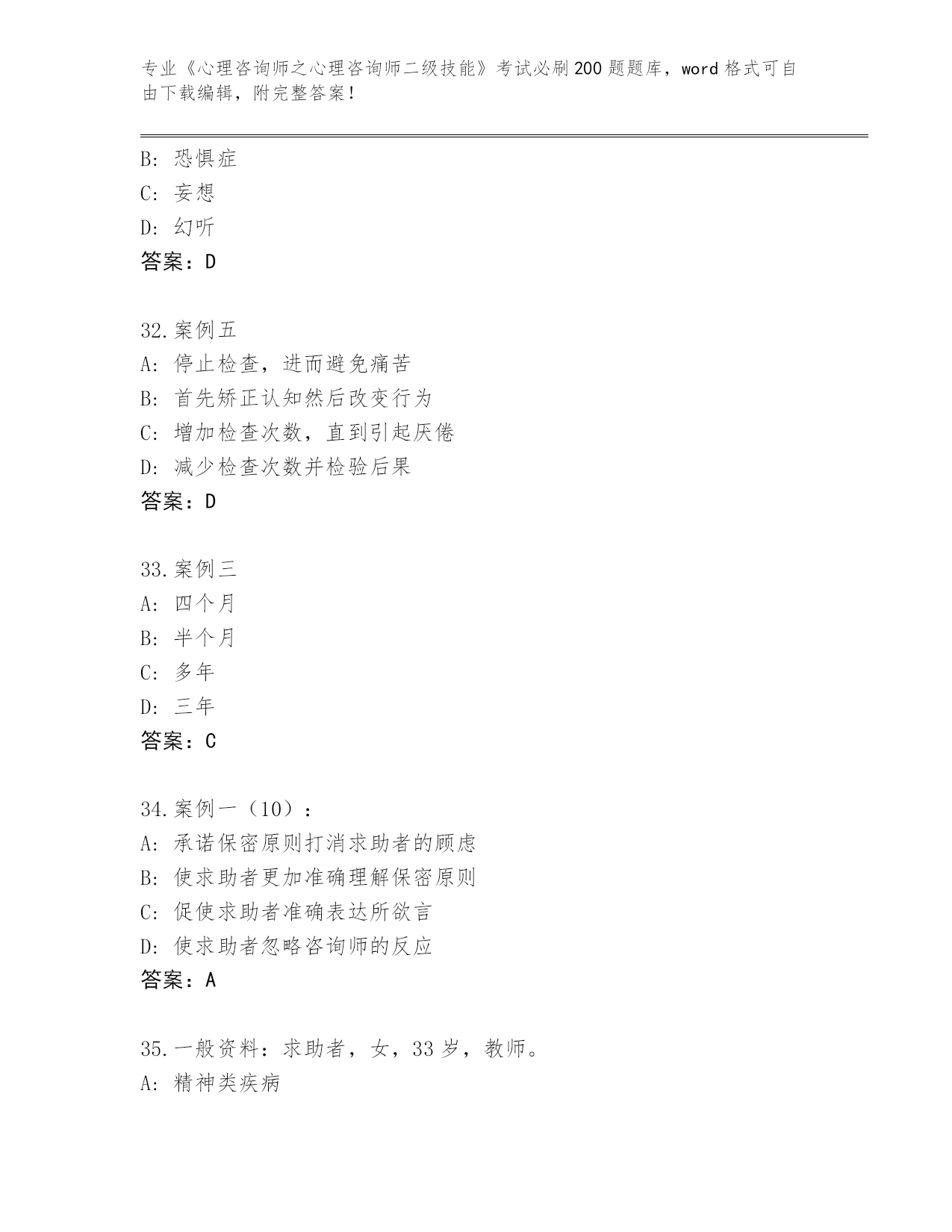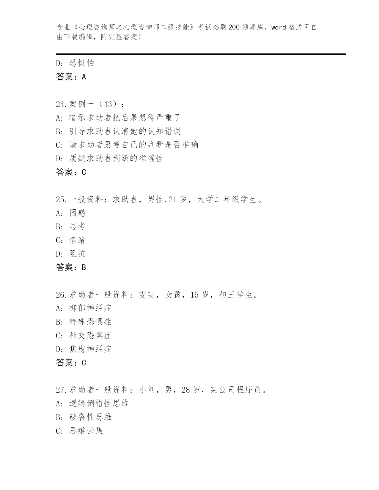 2024年福建省《心理咨询师之心理咨询师二级技能》考试必刷200题通关秘籍题库【】