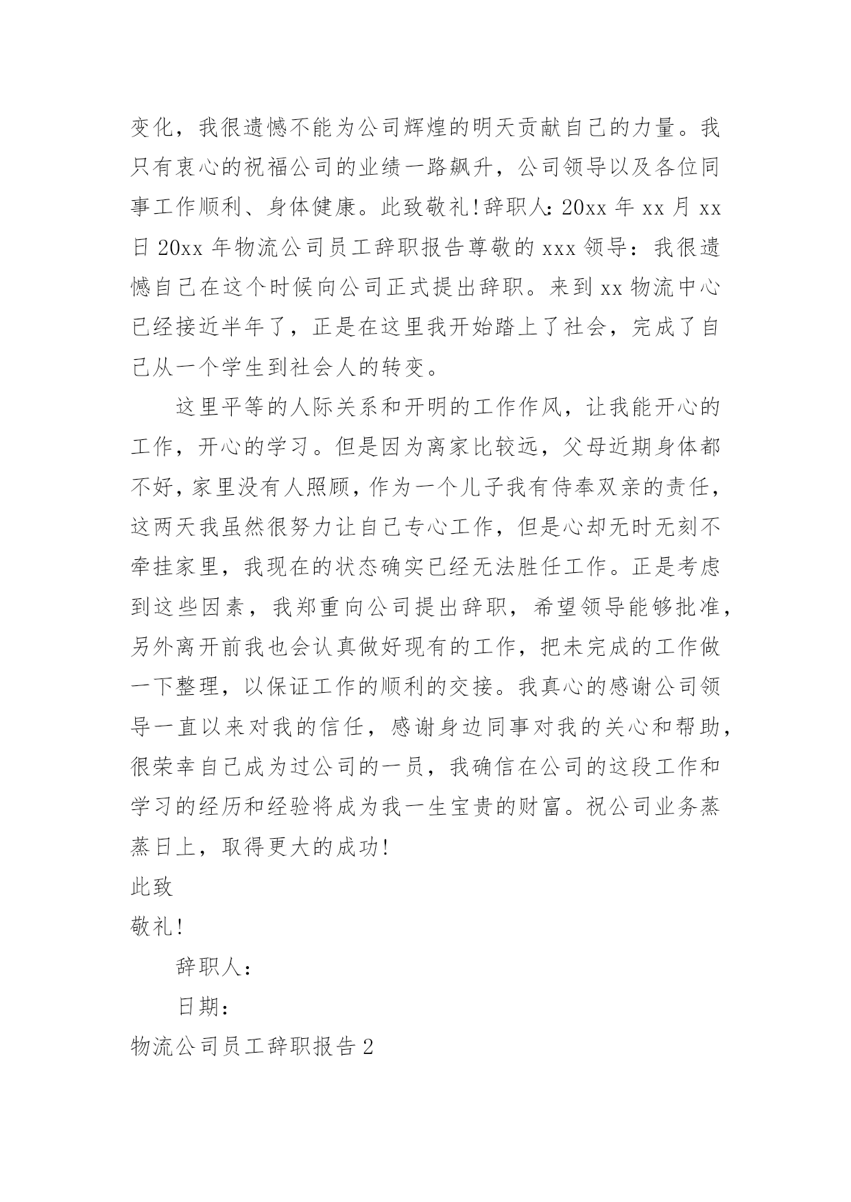 物流公司员工辞职报告物流公司员工辞职报告在现实生活中,我们都不可避免地要接触到报告,报告成为了一种新兴产业。为了让您不再为写报告头疼,以下是小编为大家整理的物流公司员工辞职报告,仅供参考,欢迎大家阅读。物流公司员工辞职报告1尊敬的领导:您好!首先,非常感谢您这几个月对我的关照和信任。这段时间,我认真回顾了这几个月的工作情况,感谢领导在这几个月的关心和照顾,和同事们对我的帮助与关心。在公司的这段时间内,我学到了很多东西,无论是从专业技能还是做人的个方面都有了很大的提高,感谢公司领导对我的关心和培养,对于我此刻的离开我只能表示深深的歉意。非常感谢公司给予我这样的工作和锻炼机会。但同时,我发觉自己从事物流行业的兴趣也减退了,我不希望自己带着这种情绪工作,对不起您也对不起我自己。所以我决定辞职,请您支持。请您谅解我作出的决定,也原谅我所采取的暂别方式,我会在上交辞职报告后,这个月底离开公司,以便完成工作交接。在短短的几个月时间我们公司已经发生了巨大可喜的变化,我很遗憾不能为公司辉煌的明天贡献自己的力量。我只有衷心的祝福公司的业绩一路飙升,公司领导以及各位同事工作顺利、身体健康。此致敬礼!辞职人:20xx年xx月xx日20xx年物流公司员工辞职报告尊敬的xxx领导:我很遗憾自己在这个时候向公司正式提出辞职。来到xx物流中心已经接近半年了,正是在这里我开始踏上了社会,完成了自己从一个学生到社会人的转变。这里平等的人际关系和开明的工作作风,让我能开心的工作,开心的学习。但是因为离家比较远,父母近期身体都不好,家里没有人照顾,作为一个儿子我有侍奉双亲的责任,这两天我虽然很努力让自己专心工作,但是心却无时无刻不牵挂家里,我现在的状态确实已经无法胜任工作。正是考虑到这些因素,我郑重向公司提出辞职,希望领导能够批准,另外离开前我也会认真做好现有的工作,把未完成的工作做一下整理,以保证工作的顺利的交接。我真心的感谢公司领导一直以来对我的信任,感谢身边同事对我的关心和帮助,很荣幸自己成为过公司的一员,我确信在公司的这段工作和学习的经历和经验将成为我一生宝贵的财富。祝公司业务蒸蒸日上,取得更大的成功!此致敬礼!辞职人:日期:物流公司员工辞职报告2x总:您好!不知不觉在公司也呆了快一年了,(去年9月进公司),在卢经理和各位领导的栽培和信任下,我从一个底层跟车的,到现在能够出来共同合作管理福建dc!这样的深情,我铭记在心!想来,当初进迪申物流的时候,第一个是对“乐事”这样年轻的休闲食品的所包含的文化的'认同,我想我们的公司也是这样的一个年轻的公司,或者说具有年轻力量的公司,!我也体会到了这样的氛围:年轻,拼搏,能力,创新,团结!公司也在飞速的发展,从济南到福建,从苏州到南京!可以说公司的成长是几何的!我也很庆幸可以在这样的环境中长大!我没有什么样的文凭,可是我在这里是被认可的,这让我找到了我的自信心!我深深的感激这里!或者我是一个不好的学生,或者员工,最后,在这样的环境中我还是选择了离开!我不知道这样算不算背叛。只是我不得不离开!大凡员工离去是有2个原因的:1,员工对公司不满意2,公司对员工不满意我想员工对公司的不满还是因为:个人文化同公司文化的差异,或者说的直白点就是公司给与的和员工本身要求达到的不和谐!我想我还是要离开这培养我的热土的,就象一个孩子要离了家乡去远方锻炼自己一般,我辜负了领导对我的深切期望!深深的感谢那些培养我,鼓励我的人:(特别是x经理)和那些给我信任的领导!(特别是x总)我由于种种个人原因要离开公司了,希望钱总能够在百忙中尽快解决我的问题!附:我想在10号之前离开公司,希望x总能够批准。此致敬礼!辞职人:20xx年xx月xx日物流公司员工辞职报告3尊敬的领导:您好!我因为诸多个人原因,经过深刻冷静的思考后,郑重的向贵厂提出辞职申请。由于部门领导对我的能力的信任,使我得以加入贵公司,并且组织学习来提高个人能力,经过这两年多在贵公司的工作,使我学到了很多知识、积累了一定的经验。对此我深怀感激!感谢部门领导给我提供了一个发展舞台,并且给了我一个能与一群出色员工一起工作的机会,感谢在我们共同工作的这段时间给予我的支持与鼓励!我很满意贵公司的工作环境,但是由于一些个人原因,我不得不向贵公司提出辞职申请。现提前一个月提交辞职申请报告,希望能在1月份正式离职。并在办完手续后搬离宿舍。对于由此为贵公司造成的不便,我深感抱歉。但同时也希望贵厂能体恤我的个人实际情况,对我的申请予以考虑并批准作顺利、身体健康。此致敬礼!辞职人:年月日物流公司员工辞职报告4各位领导:您好!首先非常感谢近几个月来大家对我的关心和信任。在此期间,我认真回顾了这几个月的工作,感谢领导的关心和照顾,感谢同事们的帮助和关心。在公司的这段时间,我学到了很多,专业技能和生活都有了很大的