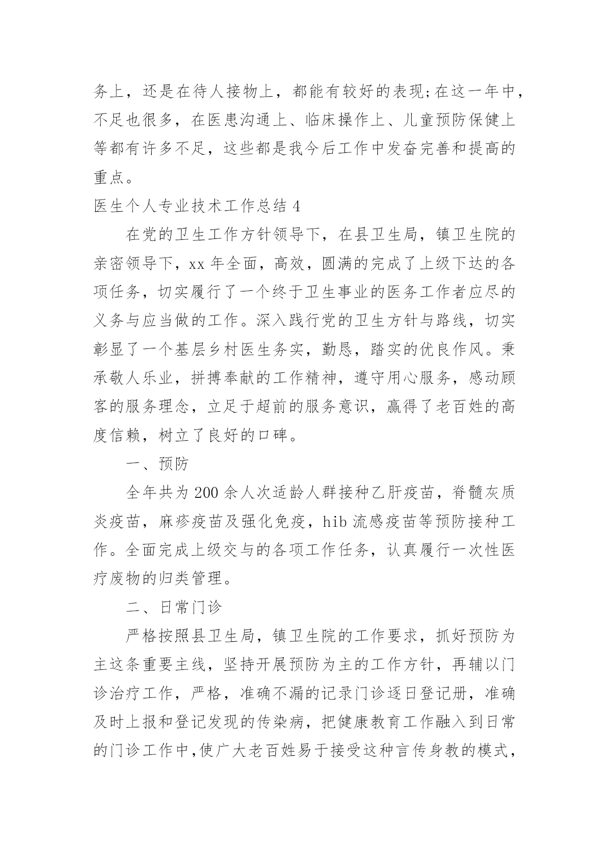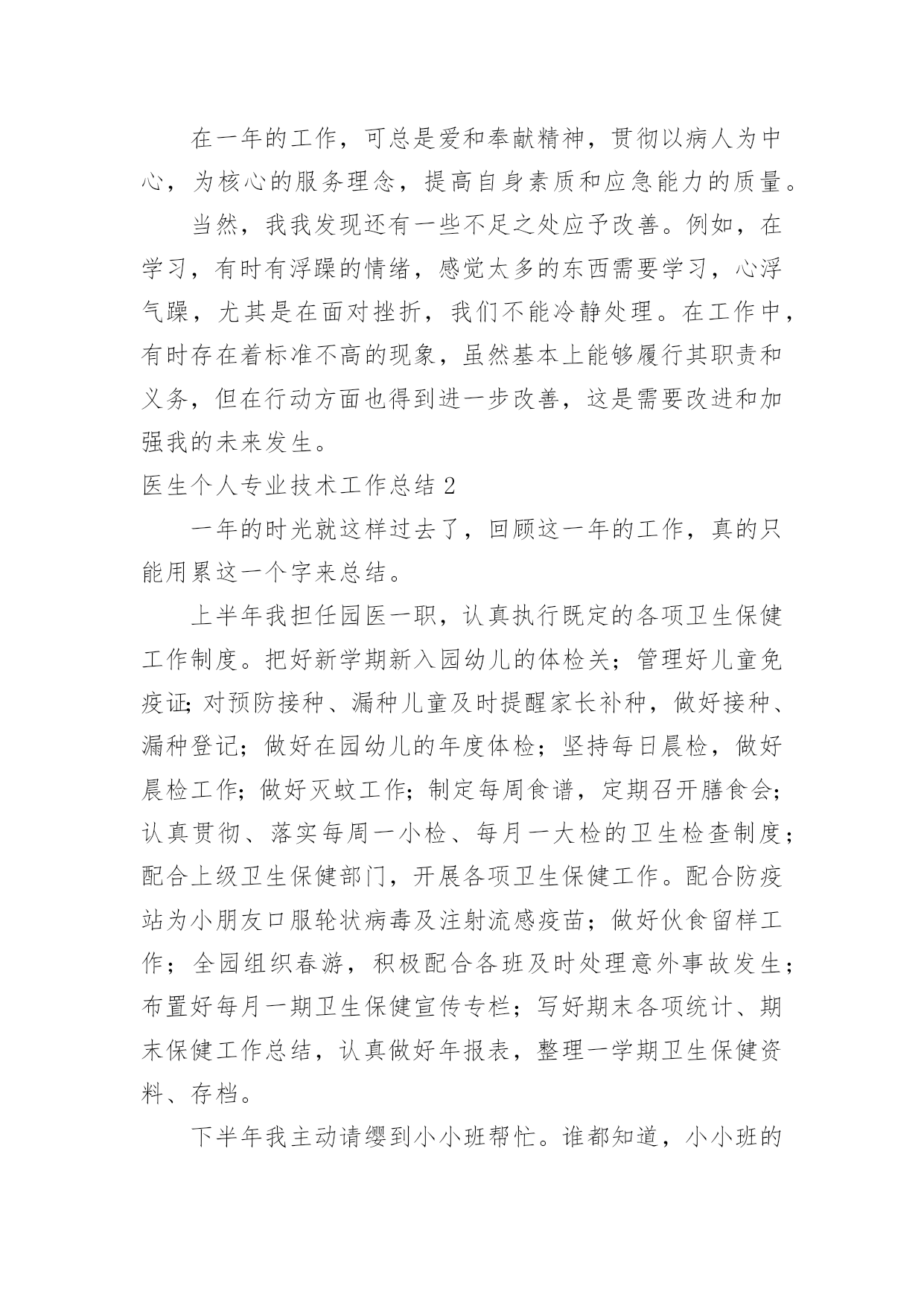 医生个人专业技术工作总结医生个人专业技术工作总结(汇编15篇)总结就是把一个时段的学习、工作或其完成情况进行一次全面系统的总结,它能帮我们理顺知识结构,突出重点,突破难点,因此十分有必须要写一份总结哦。我们该怎么去写总结呢?下面是小编为大家整理的医生个人专业技术工作总结,欢迎阅读,希望大家能够喜欢。医生个人专业技术工作总结1自去年7月到医院工作,我在二十部,二十部,二十科和重症监护病房轮换,学习工作。体验式学习,通过一年的感觉,以先前获得的理论知识和临床工作的实际相结合,我们必须在和平时期,一方面对自己的严格要求,并就此与多老师教另一方面,业余的时间刻苦钻研业务,经验要素的使用。在同期间对癌症化疗,化疗适应症,禁忌症和并发症的治疗各类专业第三十第一次接触的xx科目比较陌生。经过4个月的学习,感觉学到了很多有用的知识,如:各种形式的化疗药物在不同的外周静脉的刺激,在化疗,如毒品泄漏的危险,应立即采取保健措施,长期的发生术后深静脉导管护理的病人长期化疗。此外,在化疗的病人会出现胃肠道,皮肤,粘膜,精神状态和化疗的一系列反应的病人,此时,我们需要为病人提供护理子护理领域的热情,尊重,耐心听病人的主诉,良好的床头交接班,给病人精神上的支持。在有关知识,在学科学习的xx三十。术前准备的心理辅导和肠道准备,饮食指导。术后生命体征监测,观察切口,协助咳嗽咳痰,观察输液量和输液速度,各种引流管护理,导管护理,饮食护理,与观察和护理等术后并发症。作为妇女事务局与特异性肿瘤患者,在日常工作中,它要求我们必须更多的耐心去与他们的交流和沟通,才能更好地提高护理质量,让病人信任我们的工作。现在我三十病房旋转,这是一个综合部门,有超声刀,介入性研究,西医和化疗。我觉得在这里学习,如很多事情:谐波手术刀病人应注意皮肤的保护,感觉活动的体温,和肢端足背脉搏等;后,应逐患者肢体制动干预对象,沙袋加拿大的压力,观察病人排尿。经过近一年的研究,除了与企业各部门的知识,熟悉,但我仍然注意到,在注意文明礼貌服务,坚持文明和语言,有尊严的日常工作,文书工作,护士的专业形象,整洁的衣服,头发,没有浓妆艳抹,不穿高跟鞋,堵塞环,礼貌患有态度和蔼,语言规范。认真学习医疗事故处理条例及其法律和法规,对医疗的积极参与医院组织学习活动,以丰富的法律知识,增强安全法规自我保护意识。在积极和护士长严格的指导下,我在许多方面取得了长足的进步和改善通常在商业部门参加每月一次学习,每个星期二的上午的会议上,坚持以病人护理的关键轮,护理人员为基础的培训,由部组织的关怀坚持二是技术操作考试,取得了良好的效果。在一年的工作,可总是爱和奉献精神,贯彻以病人为中心,为核心的服务理念,提高自身素质和应急能力的质量。当然,我我发现还有一些不足之处应予改善。例如,在学习,有时有浮躁的情绪,感觉太多的东西需要学习,心浮气躁,尤其是在面对挫折,我们不能冷静处理。在工作中,有时存在着标准不高的现象,虽然基本上能够履行其职责和义务,但在行动方面也得到进一步改善,这是需要改进和加强我的未来发生。医生个人专业技术工作总结2一年的时光就这样过去了,回顾这一年的工作,真的只能用累这一个字来总结。上半年我担任园医一职,认真执行既定的各项卫生保健工作制度。把好新学期新入园幼儿的体检关;管理好儿童免疫证;对预防接种、漏种儿童及时提醒家长补种,做好接种、漏种登记;做好在园幼儿的年度体检;坚持每日晨检,做好晨检工作;做好灭蚊工作;制定每周食谱,定期召开膳食会;认真贯彻、落实每周一小检、每月一大检的卫生检查制度;配合上级卫生保健部门,开展各项卫生保健工作。配合防疫站为小朋友口服轮状病毒及注射流感疫苗;做好伙食留样工作;全园组织春游,积极配合各班及时处理意外事故发生;布置好每月一期卫生保健宣传专栏;写好期末各项统计、期末保健工作总结,认真做好年报表,整理一学期卫生保健资料、存档。下半年我主动请缨到小小班帮忙。谁都知道,小小班的工作既辛苦又繁琐,特别是上学期,每个幼儿都是初次体验集体生活的新生,哭闹不止是难免的,本着爱孩子的一颗心,我抱持着耐心细致的态度,做好新生来园的安抚工作。在小小班这一学期中,我与班里其他老师团结互助,不怕辛劳,不分彼此,在班里经常缺乏人手的情况下把工作做好。我充当着既是老师,又是保育员,更是医护人员的三重角色。当班里的蓝老师请假时,我主动与黄老师分担教学任务,教幼儿念诗歌,唱儿歌,协助黄老师进行绘画活动、户外活动及日常活动;当孩子把大小便拉在裤子上时,我不怕脏、不怕臭的帮孩子换下脏的衣物,清洗身体,空闲时间帮唐阿姨拖地板、洗勺子杯子,做好班里的清洁工作;当孩子跌着磕着时,我又以我的专业知识对受伤幼儿进行及时合理的医护处理,把孩子的受伤程度降至最低。以上是本人对过去一年的总结,今后我将更加努力工作,把工作做得更好