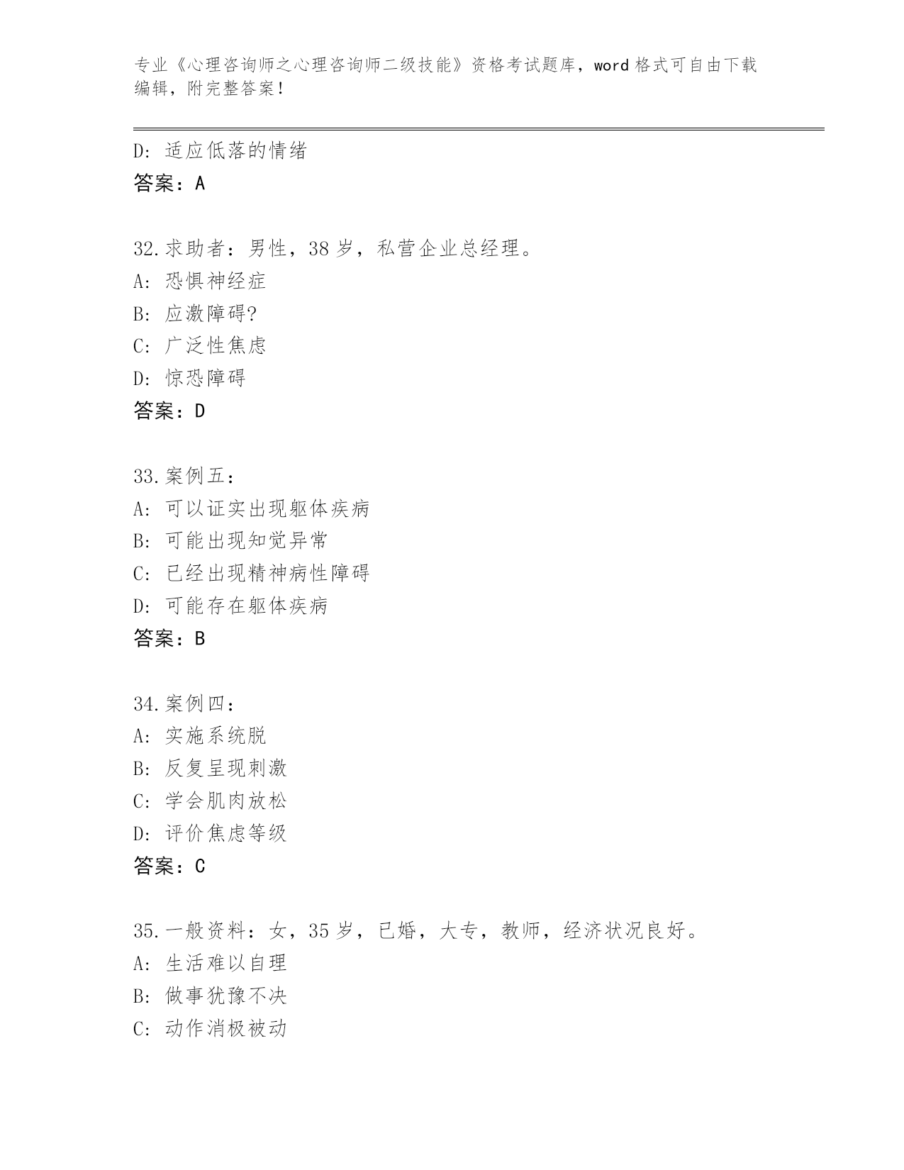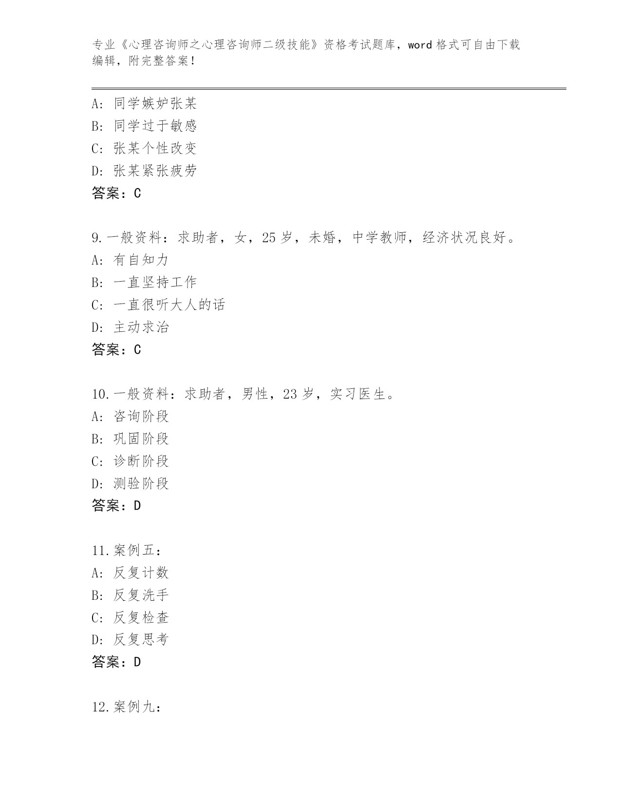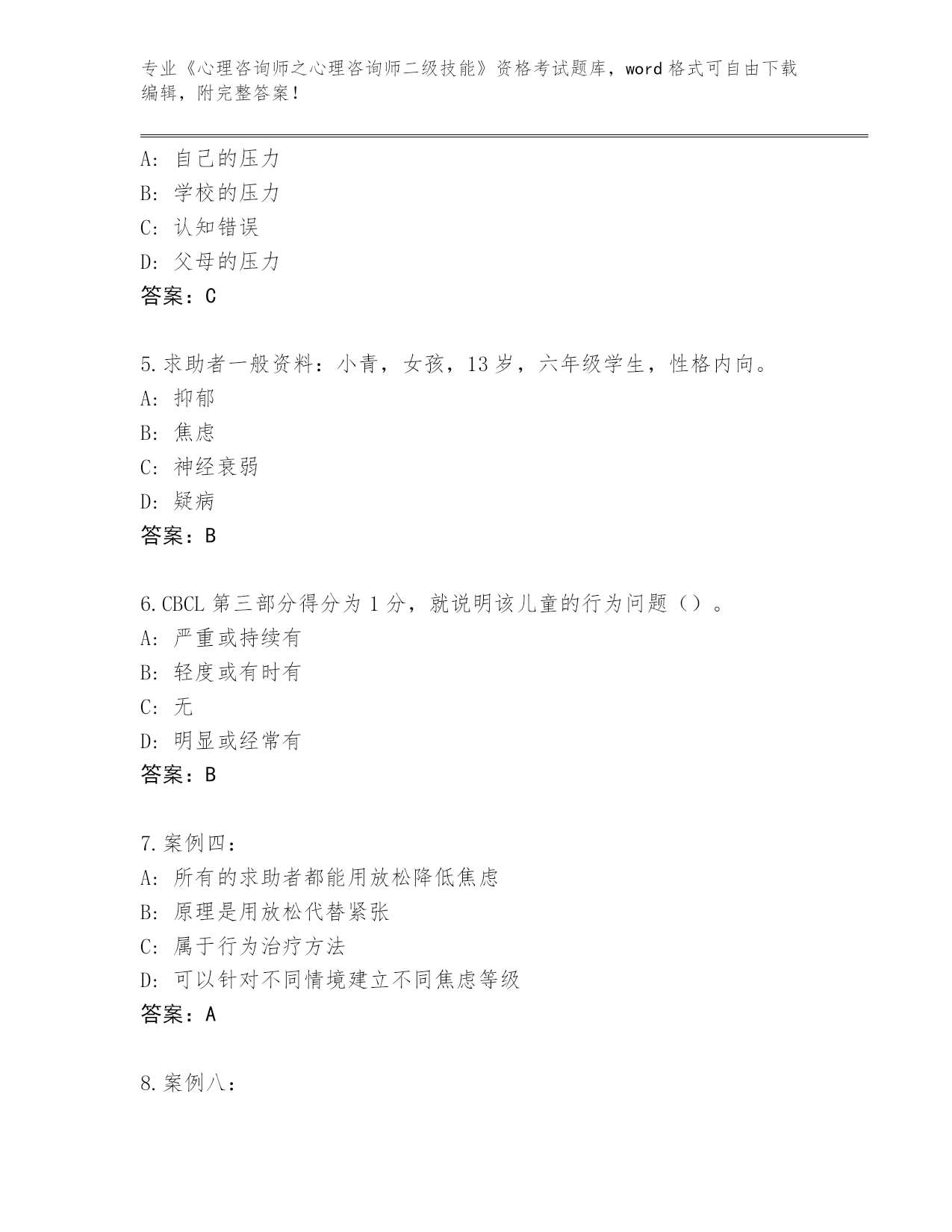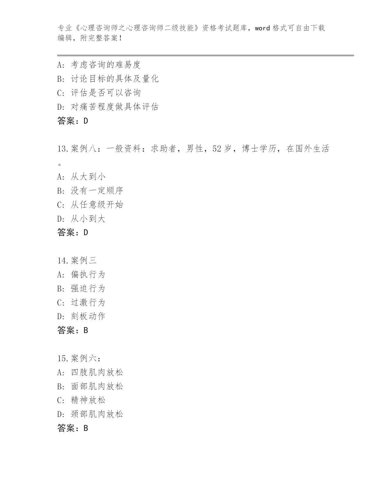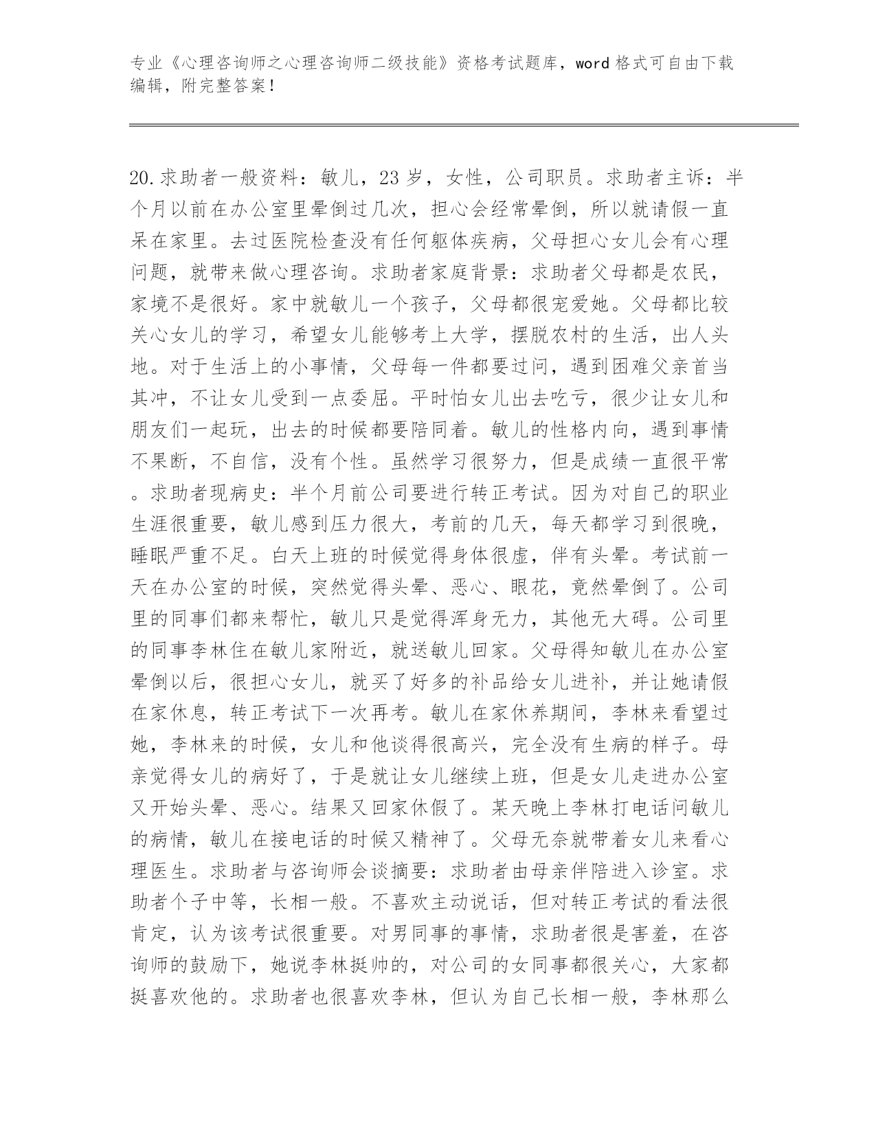 内部使用陕西省碑林区《心理咨询师之心理咨询师二级技能》考试真题含答案(综合题)