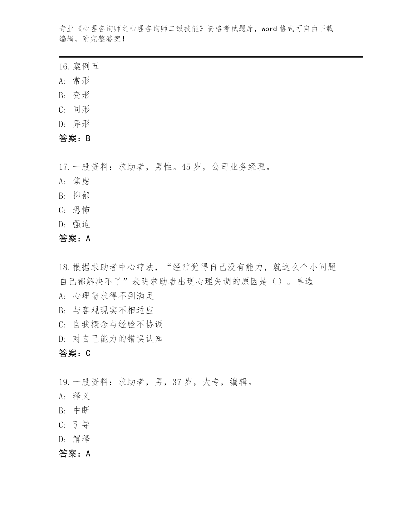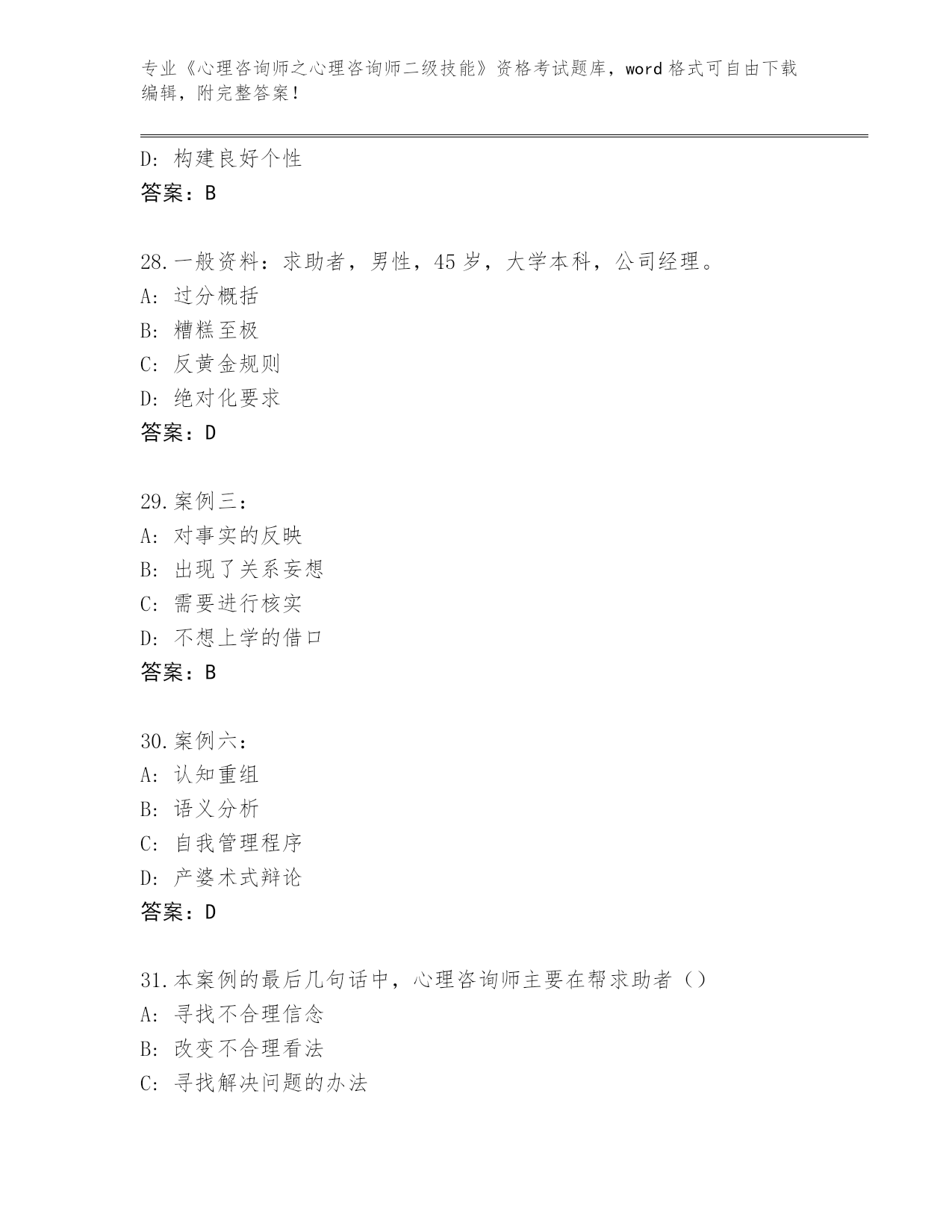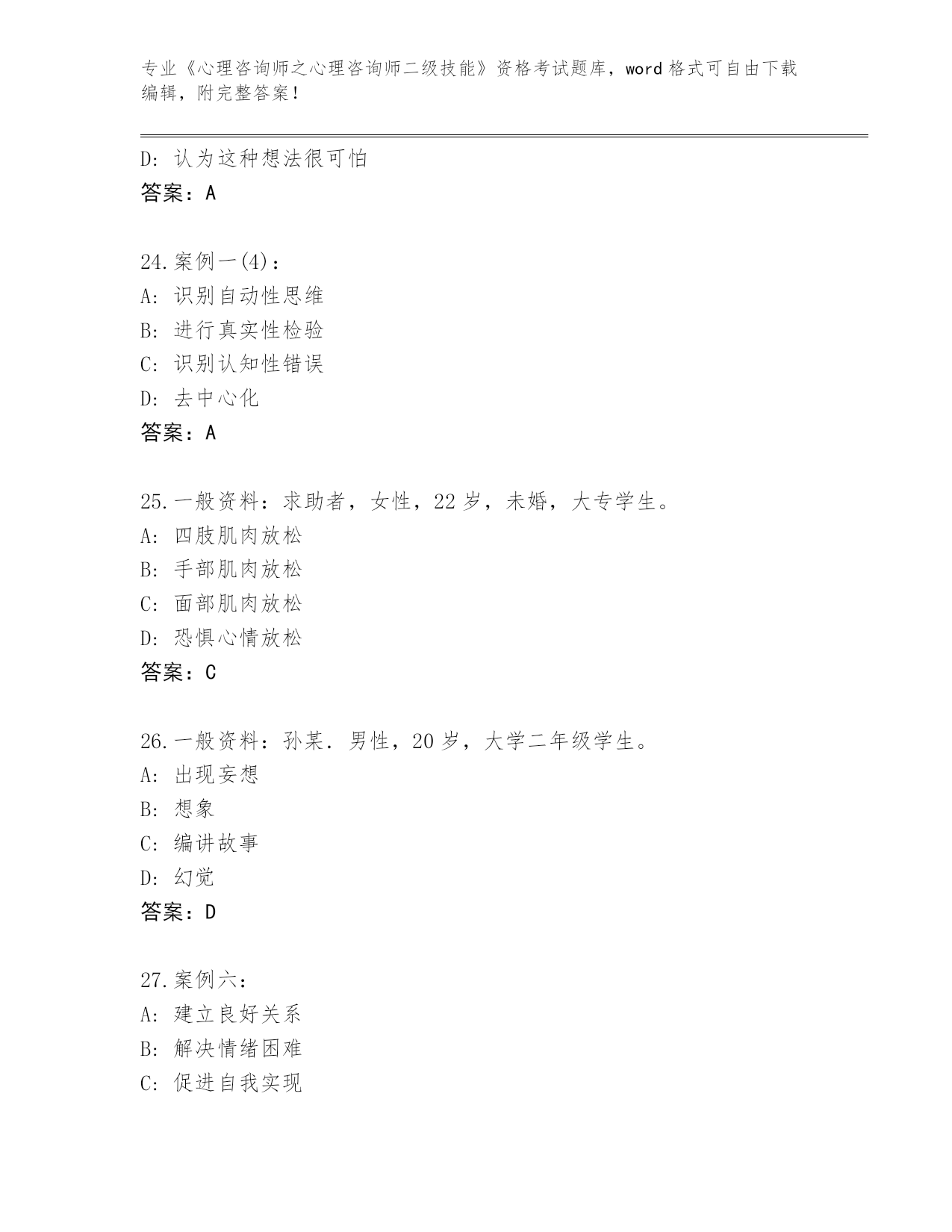 湖北省神农架林区2024《心理咨询师之心理咨询师二级技能》考试真题(真题汇编)