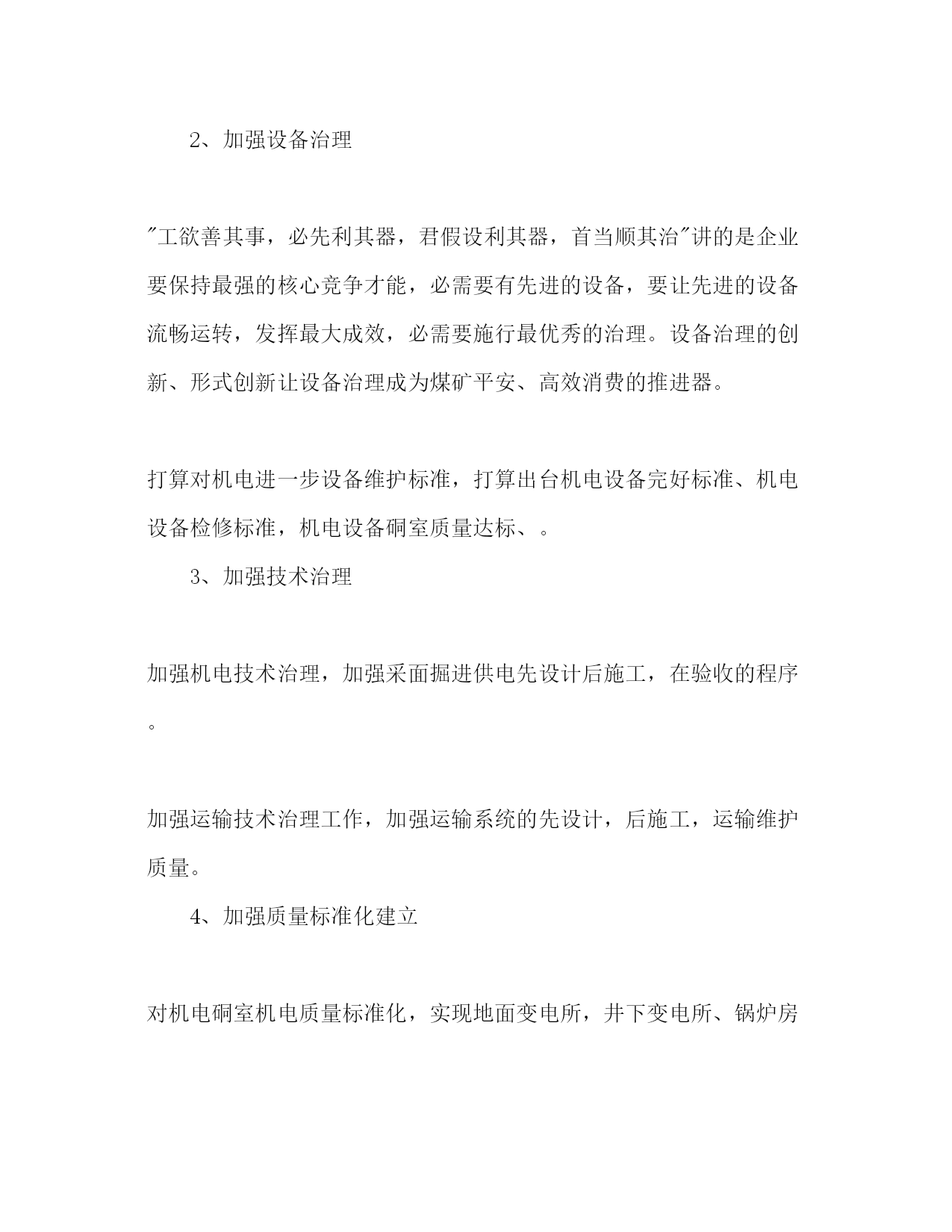【精编】煤矿机电矿长工作参考计划范文1)