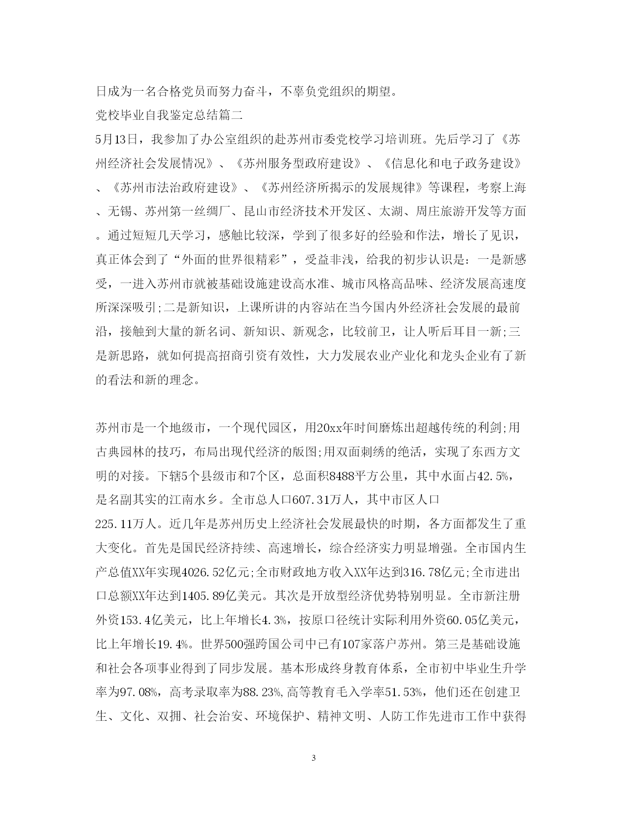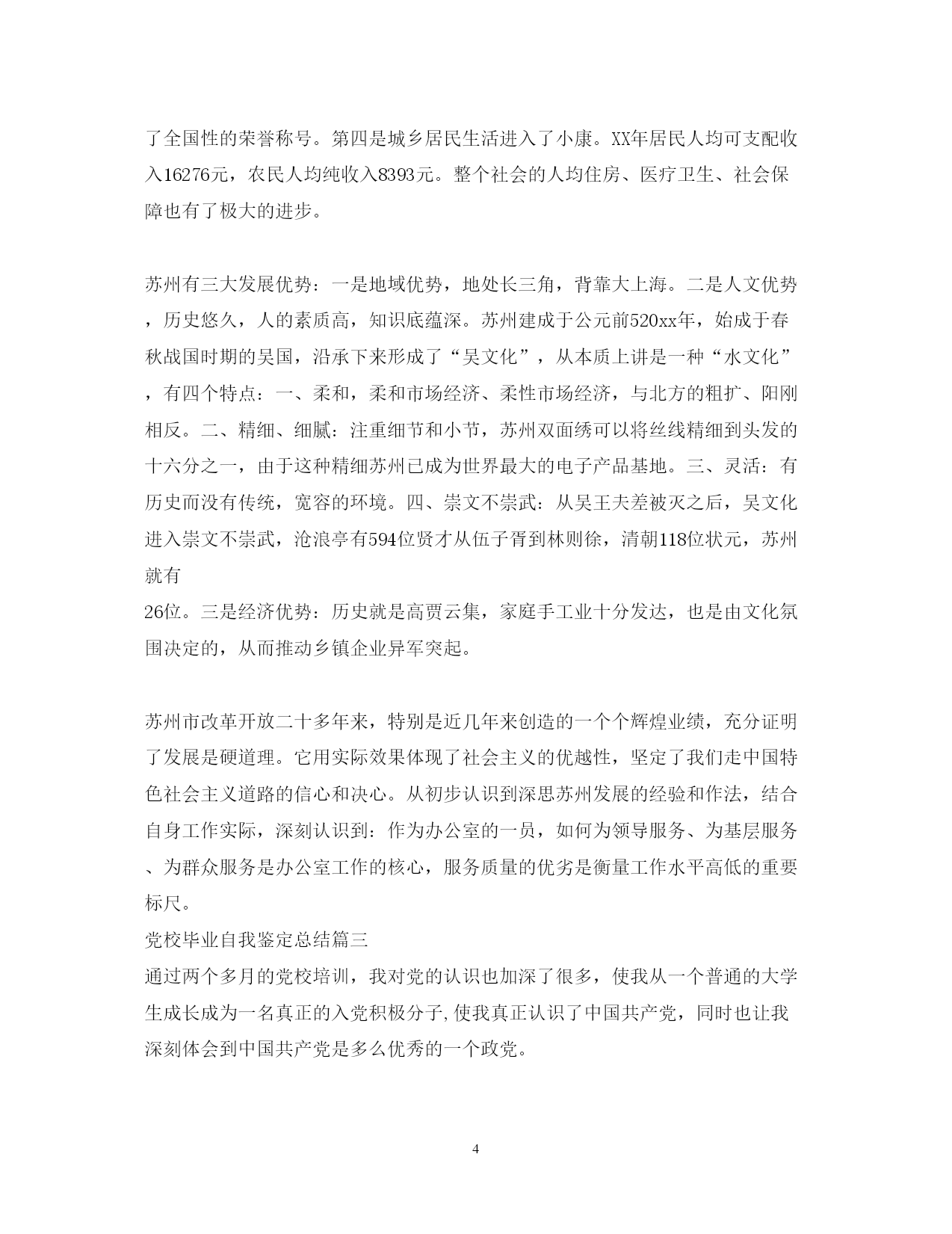 此资料由网络收集而来,如有侵权请告知上传者立即删除。资料共分享,我们负责传递知识。PAGEPAGE5党校毕业自我鉴定总结通过了党校学习毕业的你,一定对党更加深刻的领悟和信仰了!那么你要怎么去写党校毕业自我鉴定总结呢?下面由本小编精心整理的党校毕业自我鉴定总结,希望可以帮到你哦!党校毕业自我鉴定总结篇一本人Xx,四川理工学院Xx级生物工程专业学生,今天借着这份党校结业自我鉴定,既是向党组织作汇报,也是对我以往认识的总结和今后努力的鞭策。一个人若没有一种可以奉行终生的信仰的话,在一定程度上也就失去了方向。只有有信仰才会有原则,才能分辨是非,才会让生活更充实。而共产主义就是我的信仰,我觉得它是最科学、最先进的,它揭示了历史的发展趋势,指明了未来的发展方向。带着对中国共产党深深的向往,20xx年我真诚地向党组织递交了入党申请书,积极向党组织靠拢,决心按照一个共产党人的要求严格要求自己。在我的概念中,中国共产党是先锋队,是领导核心,更是一个伟大的党,在参加了党课学习之后,我对党的认识又上了一个新台阶,从而更全面更透彻更理性地看待我们的党。通过在党校的学习,我收益颇大,不仅受到思想的洗礼,知识的陶冶,更重要的是在人格塑造方面也取得了一定效果;这也更加坚定了我的共产主义的信仰,还有很重要的一点,就是共勉的作用,看着这么多同学和我一起奋斗,让我看到了我党坚实的群众基础,看到了党员为人民服务、为社会主义建设尽心尽力的赤子之心。通过在党校的进一步学习,我对党的历史和现状也有了更客观的看待和初步的思索;对党的政策和理论有了深刻的学习和领悟,对党的历史有了全面的了解,对党的现状和未来有了理性认识;我更加明确的认识到我党不仅是一个具有光辉历史的党,更是一个锐意进取,勇于创新,不断结合新的实践,把自己的思想政治建设推向新境界的政党。从而增强了党领导人民实现新世纪宏伟蓝图的信念,也更增强了我积极争取入党的决心。我知道,要成为一名合格的共产党员,除了在思想上不断提高自己的觉悟外,还要在行动、能力上完善自己。完善的人格对于共产党人是不可或缺的特质,数不清的革命烈士用他们的鲜血生命以及不为时光所湮没的光辉事迹奠定了今天共产党人的行为楷模,新世纪党的事业未必需要共产党人浴血牺牲,但却同样需要健全与完善的人格。所以我一直在挫折与困难中培养自己坚强的个性,在学习中锻炼自己的毅力和品质,在人际关系中坚持“以诚待人”的理念,以求自身人格塑造的不断完善。人无完人,我在追求自我完善的过程中,虽然有所成长,但也仍然存在各方面的不足与缺陷。比如(根据本人实际填上),在以后的生活和学习中,我会逐步改掉些缺点。作为一个入党积极分子,不可以只是空有一腔热忱而没有相应的能力,要有相应的知识才可以把自己的热情化为行动,才可以真正做到为人民服务。所以我注意学习方面的各种问题。上课努力听讲,尽量消化自己学过的知识。认真学好专业知识的同时注意注意自己其他非专业知识的学习,尽量提高自己的综合素质。同时把学到的知识用到自己的工作上,发挥了自己的长处。以上是我对自己学习生活方面的自我鉴定与总结,收获与不足并存;学无止境,我以后也会抱着严谨的态度继续学习党的知识,关心实事和党的政策;同时平时做事从小事做起,尽量用党员的标准要求自己;发扬优点,摒弃缺点,为争取早日成为一名合格党员而努力奋斗,不辜负党组织的期望。党校毕业自我鉴定总结篇二5月13日,我参加了办公室组织的赴苏州市委党校学习培训班。先后学习了《苏州经济社会发展情况》、《苏州服务型政府建设》、《信息化和电子政务建设》、《苏州市法治政府建设》、《苏州经济所揭示的发展规律》等课程,考察上海、无锡、苏州第一丝绸厂、昆山市经济技术开发区、太湖、周庄旅游开发等方面。通过短短几天学习,感触比较深,学到了很多好的经验和作法,增长了见识,真正体会到了“外面的世界很精彩”,受益非浅,给我的初步认识是:一是新感受,一进入苏州市就被基础设施建设高水准、城市风格高品味、经济发展高速度所深深吸引;二是新知识,上课所讲的内容站在当今国内外经济社会发展的最前沿,接触到大量的新名词、新知识、新观念,比较前卫,让人听后耳目一新;三是新思路,就如何提高招商引资有效性,大力发展农业产业化和龙头企业有了新的看法和新的理念。苏州市是一个地级市,一个现代园区,用20xx年时间磨炼出超越传统的利剑;用古典园林的技巧,布局出现代经济的版图;用双面刺绣的绝活,实现了东西方文明的对接。下辖5个县级市和7个区,总面积8488平方公里,其中水面占42.5%,是名副其实的江南水乡。全市总人口607.31万人,其中市区人口225.11万人。近几年是苏州历史上经济社会发展最快的时期,各方面都发生了重大变化。首先是国民经济持续、高速增长,综合经济实力明显增强。全市国内