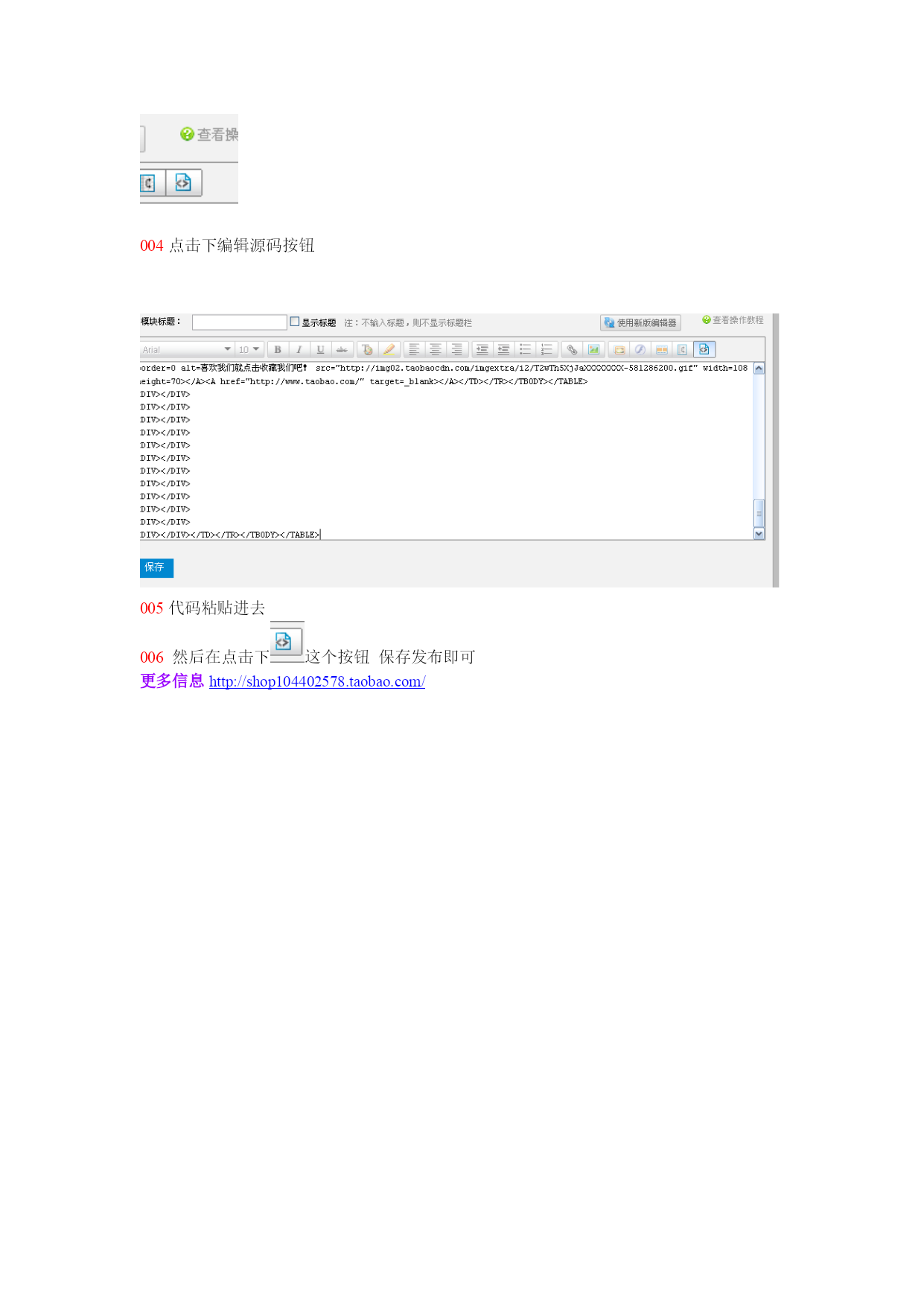 方法很简单在这里面找到自己喜欢的背景上传到图片空间得到一个图片地址后打开代码把括号里面的汉子删掉把背景的地址粘贴进去,好了。001在店铺装修左侧最下方点击下这个002添加自定义内容区003然后点击编辑004点击下编辑源码按钮005代码粘贴进去006然后在点击下这个按钮保存发布即可更多信息HYPERLINK"http://shop104402578.taobao.com/"http://shop104402578.taobao.com/