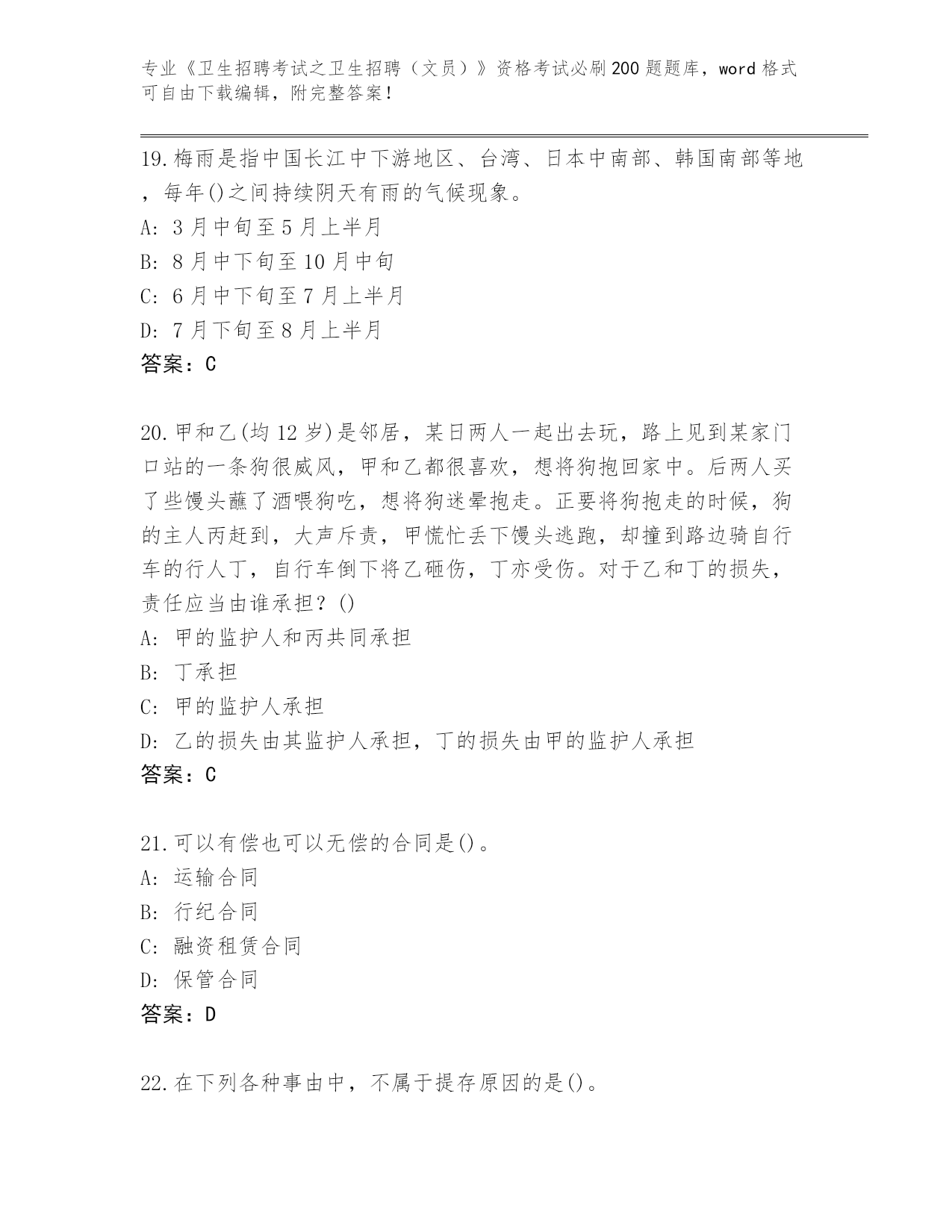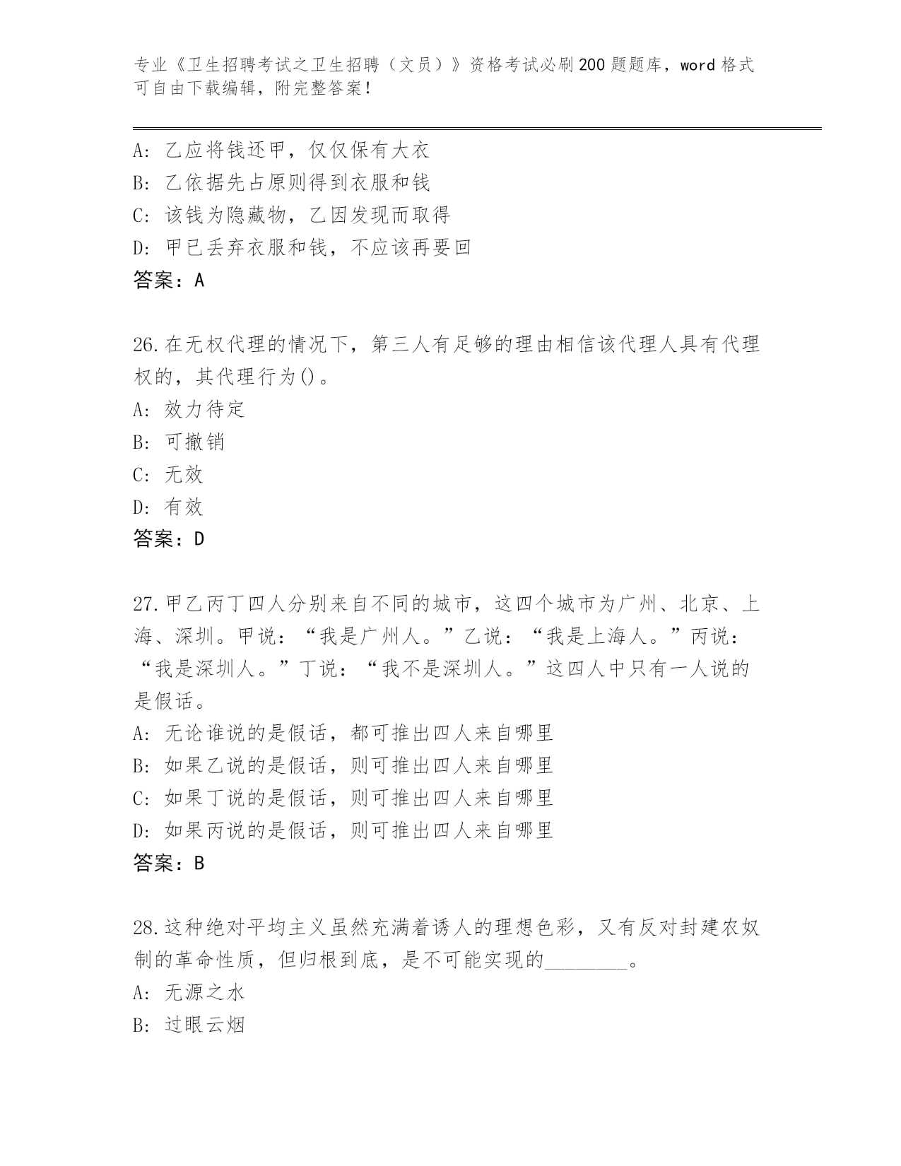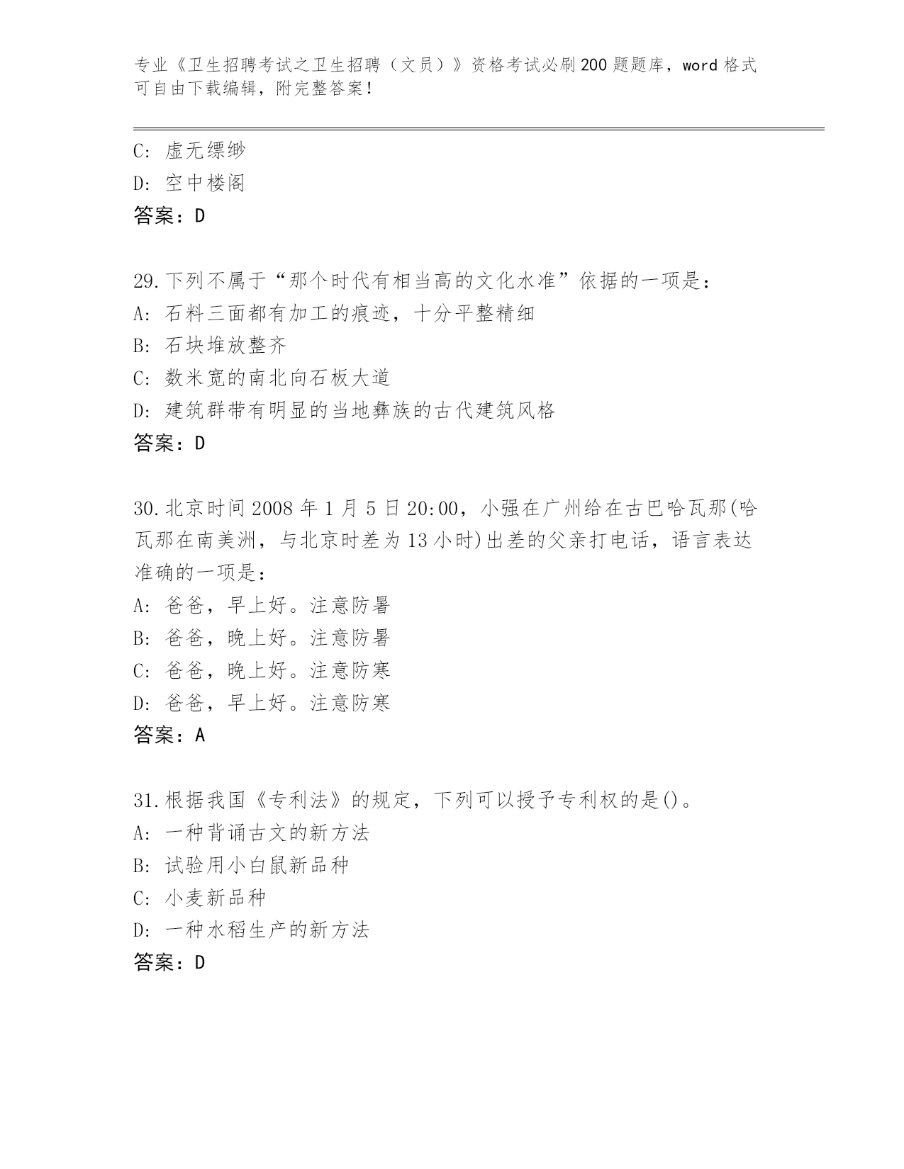 贵州省历年《卫生招聘考试之卫生招聘(文员)》考试必刷200题加答案下载
