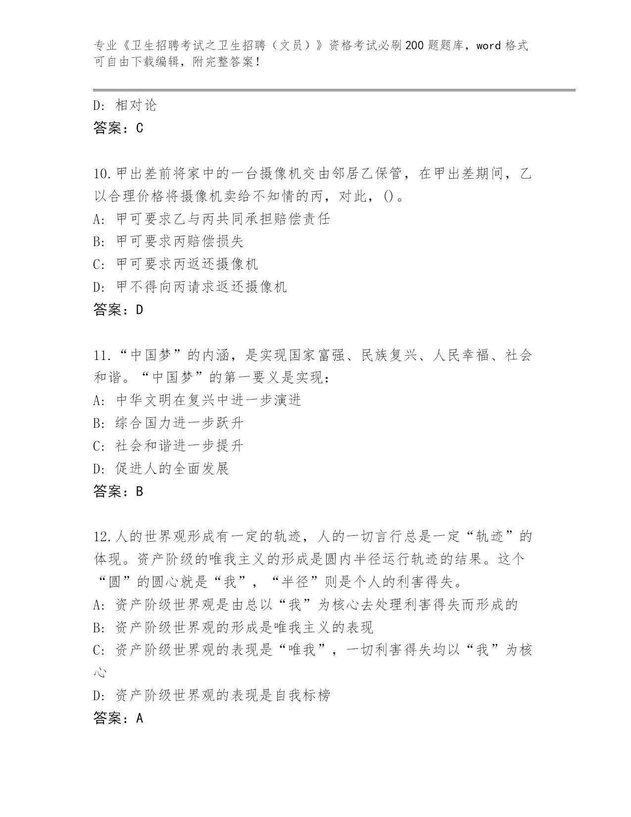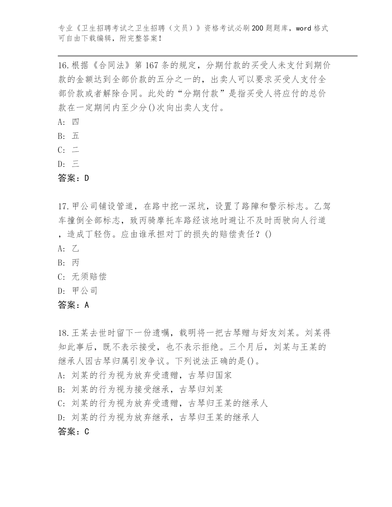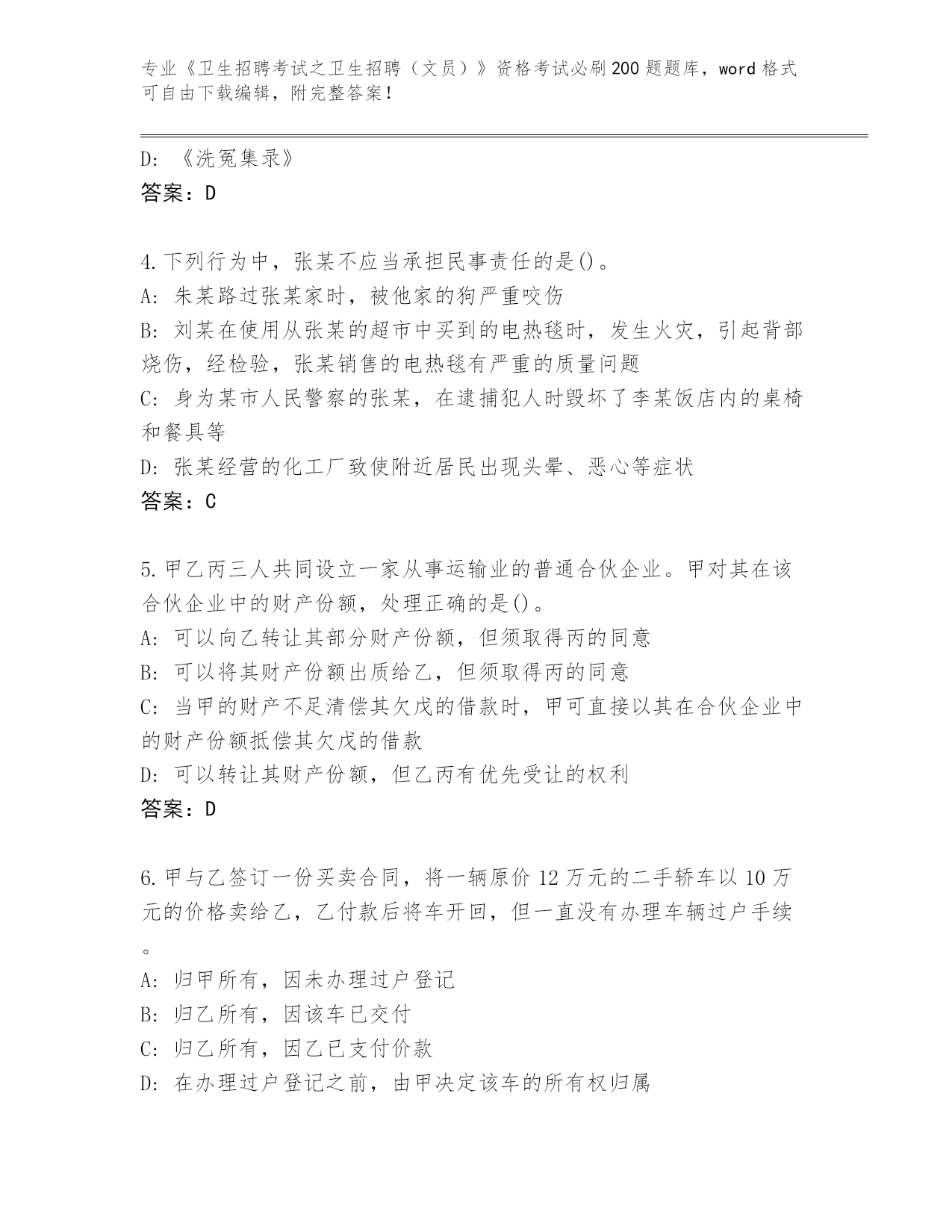 贵州省历年《卫生招聘考试之卫生招聘(文员)》考试必刷200题加答案下载