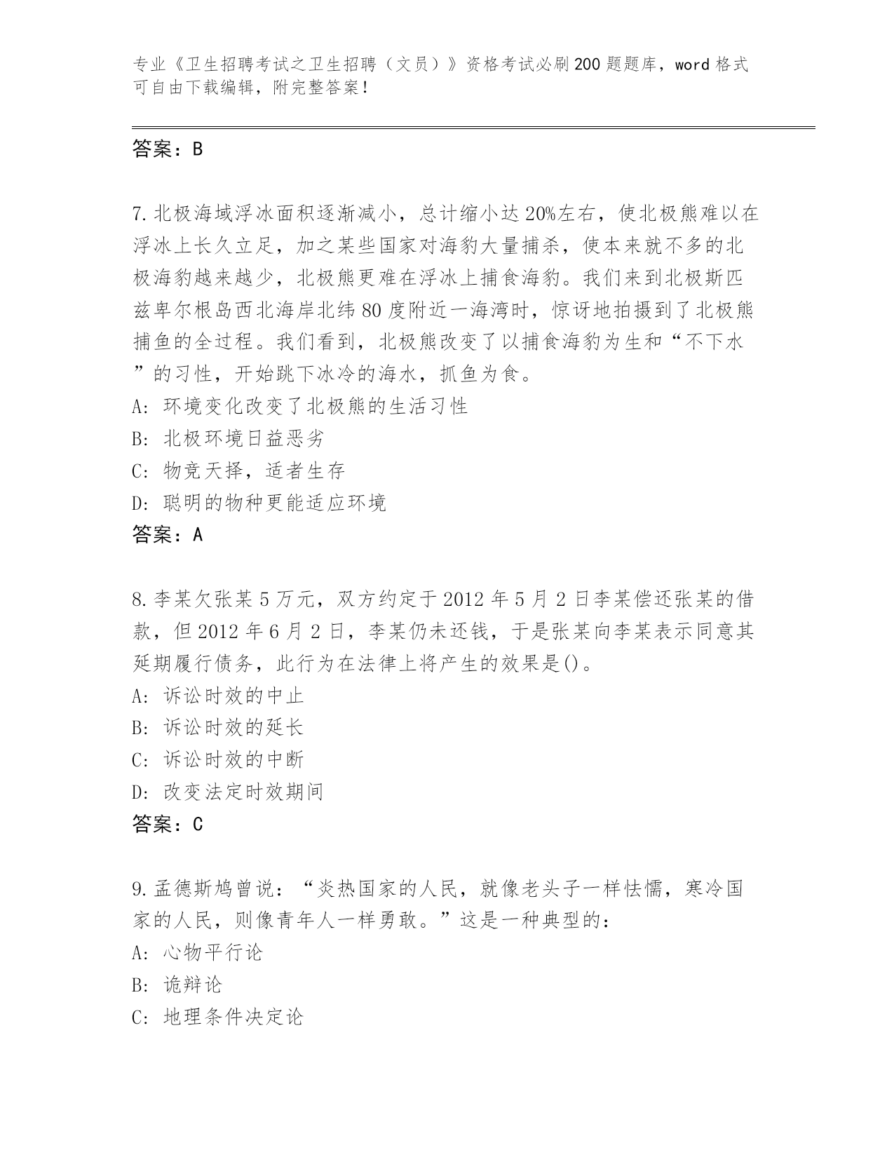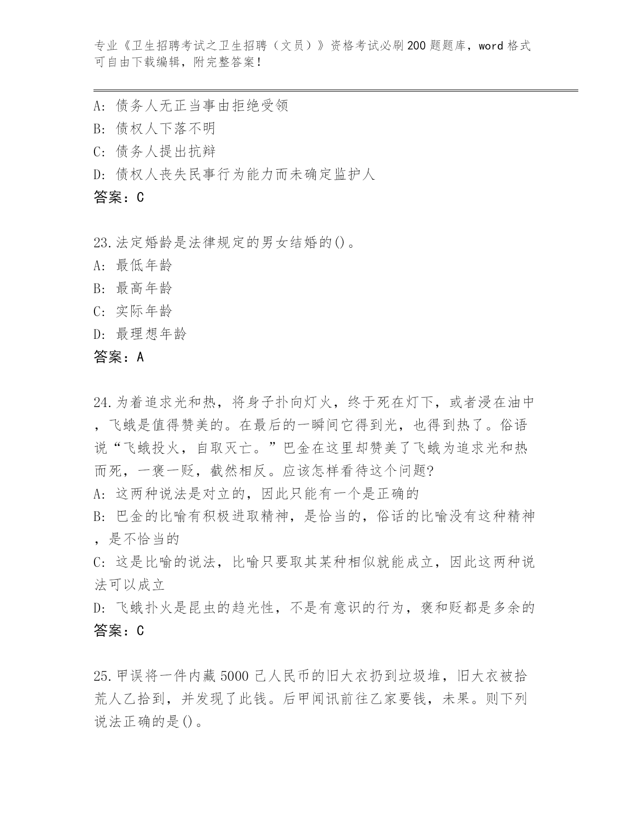 2024年河北省《卫生招聘考试之卫生招聘(文员)》考试必刷200题题库加答案下载