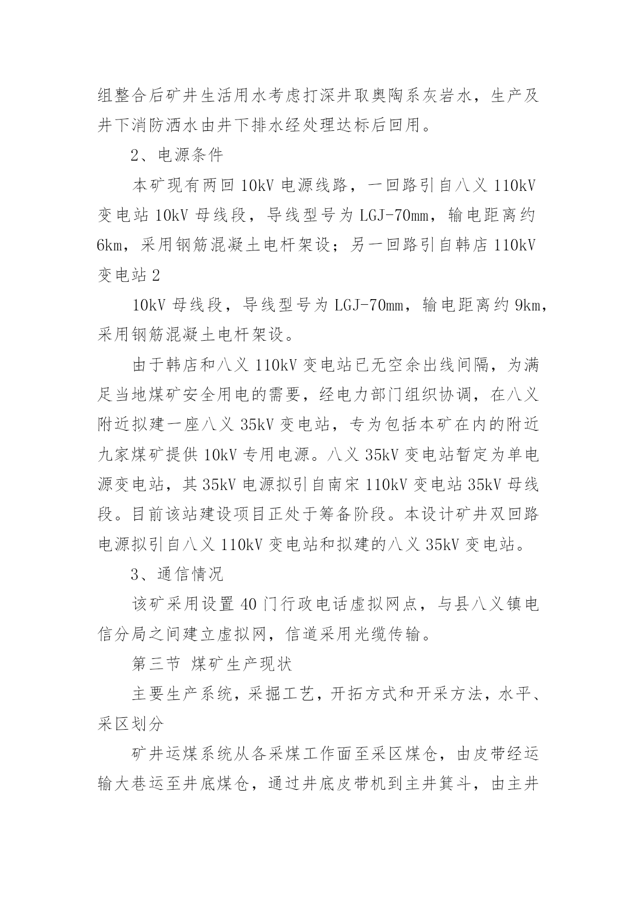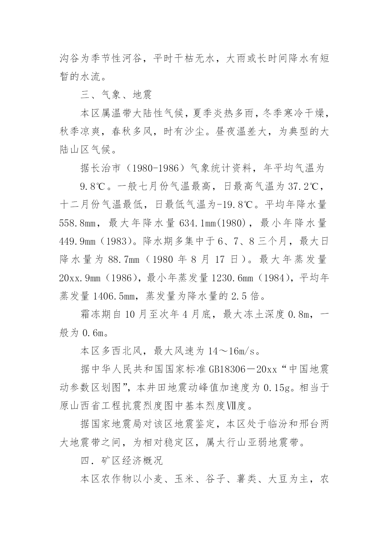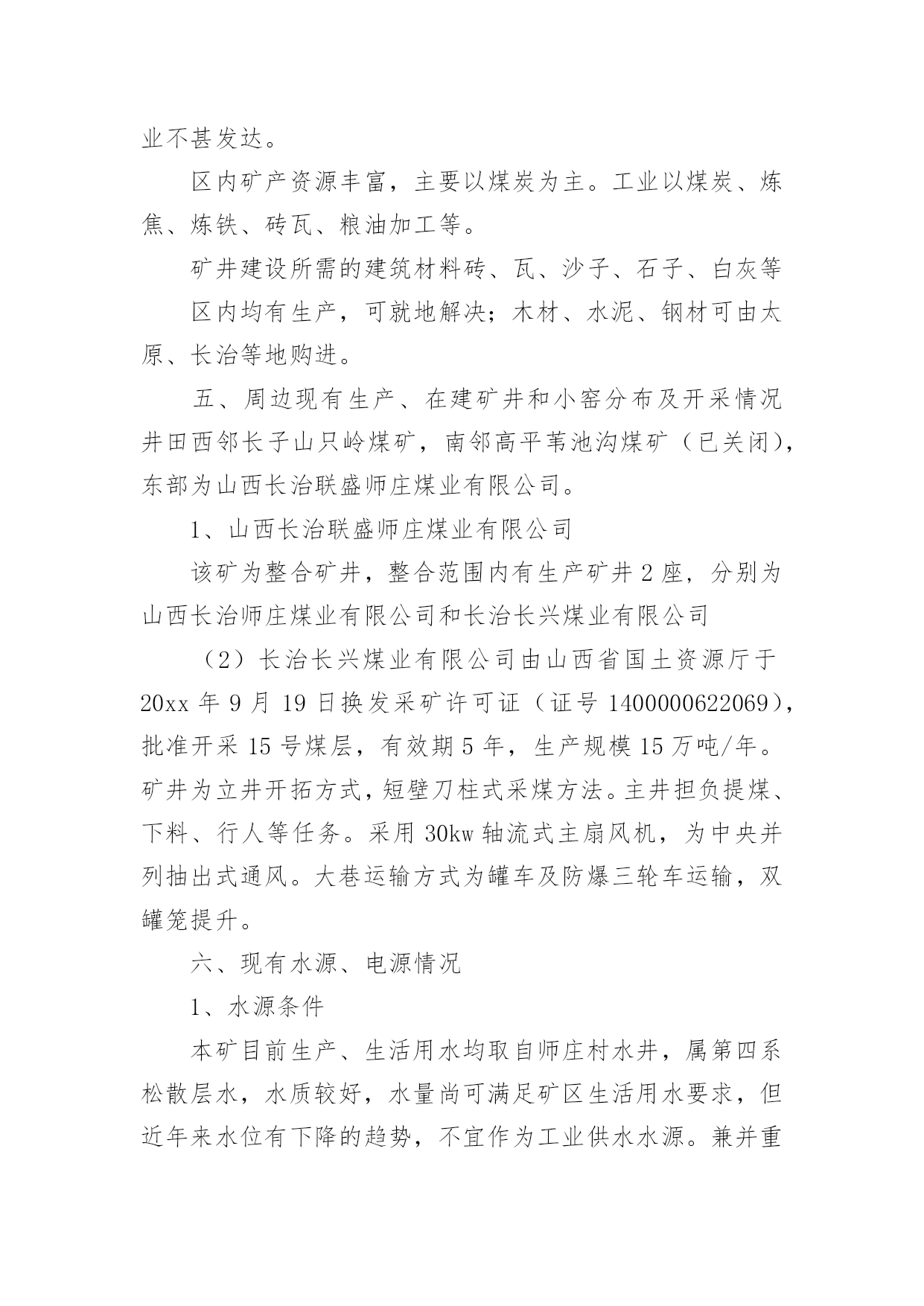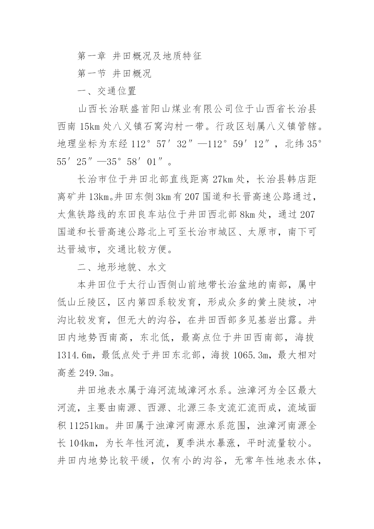 机电类实习报告机电类实习报告3篇在经济发展迅速的今天,越来越多人会去使用报告,通常情况下,报告的内容含量大、篇幅较长。一听到写报告马上头昏脑涨?下面是小编收集整理的机电类实习报告3篇,供大家参考借鉴,希望可以帮助到有需要的朋友。机电类实习报告篇1时间一晃而过,转眼间实习快结束了。这是我人生中弥足珍贵的经历,也给我留下了精彩而美好的回忆。在这段时间里您们给予了我足够的宽容、支持和帮助,让我充分感受到了领导们“海纳百川”的胸襟,感受到了“不经历风雨,怎能见彩虹”的豪气,也体会到了煤矿工人的艰难和坚定。在这段时间里,在老师和同学的悉心关怀和指导下,通过自身的不懈努力,各方面均取得了一定的进步。实习期间,我利用此次难得的'机会,努力学习,严格要求自己,认真学习专业知识,利用空余时间认真学习一些课本内容以外的相关知识,掌握了一些基本的专业技能,从而进一步巩固自己所学到的知识,为以后真正走上工作岗位打下基础。实习期间努力将自己在学校所学的理论知识向实践方面转化,尽量做到理论与实践相结合,在实习期间能够遵守纪律,不迟到、早退,认真完成各老师交办的工作,通过本次实习,我们学到了很多课本上学不到的东西,并对煤矿井下生产有了更深的认识。第一章井田概况及地质特征第一节井田概况一、交通位置山西长治联盛首阳山煤业有限公司位于山西省长治县西南15km处八义镇石窝沟村一带。行政区划属八义镇管辖。地理坐标为东经112°57′32″—112°59′12″,北纬35°55′25″—35°58′01″。长治市位于井田北部直线距离27km处,长治县韩店距离矿井13km。井田东侧3km有207国道和长晋高速公路通过,太焦铁路线的东田良车站位于井田西北部8km处,通过207国道和长晋高速公路北上可至长治市城区、太原市,南下可达晋城市,交通比较方便。二、地形地貌、水文本井田位于太行山西侧山前地带长治盆地的南部,属中低山丘陵区,区内第四系较发育,形成众多的黄土陡坡,冲沟比较发育,但无大的沟谷,在井田西部多见基岩出露。井田内地势西南高,东北低,最高点位于井田西南部,海拔1314.6m,最低点处于井田东北部,海拔1065.3m,最大相对高差249.3m。井田地表水属于海河流域漳河水系。浊漳河为全区最大河流,主要由南源、西源、北源三条支流汇流而成,流域面积11251km。井田属于浊漳河南源水系范围,浊漳河南源全长104km,为长年性河流,夏季洪水暴涨,平时流量较小。井田内地势比较平缓,仅有小的沟谷,无常年性地表水体,沟谷为季节性河谷,平时干枯无水,大雨或长时间降水有短暂的水流。三、气象、地震本区属温带大陆性气候,夏季炎热多雨,冬季寒冷干燥,秋季凉爽,春秋多风,时有沙尘。昼夜温差大,为典型的大陆山区气候。据长治市(1980-1986)气象统计资料,年平均气温为9.8℃。一般七月份气温最高,日最高气温为37.2℃,十二月份气温最低,日最低气温为-19.8℃。平均年降水量558.8mm,最大年降水量634.1mm(1980),最小年降水量449.9mm(1983)。降水期多集中于6、7、8三个月,最大日降水量为88.7mm(1980年8月17日)。最大年蒸发量20xx.9mm(1986),最小年蒸发量1230.6mm(1984),平均年蒸发量1406.5mm,蒸发量为降水量的2.5倍。霜冻期自10月至次年4月底,最大冻土深度0.8m,一般为0.6m。本区多西北风,最大风速为14~16m/s。据中华人民共和国国家标准GB18306-20xx“中国地震动参数区划图”,本井田地震动峰值加速度为0.15g。相当于原山西省工程抗震烈度图中基本烈度Ⅶ度。据国家地震局对该区地震鉴定,本区处于临汾和邢台两大地震带之间,为相对稳定区,属太行山亚弱地震带。四.矿区经济概况本区农作物以小麦、玉米、谷子、薯类、大豆为主,农业不甚发达。区内矿产资源丰富,主要以煤炭为主。工业以煤炭、炼焦、炼铁、砖瓦、粮油加工等。矿井建设所需的建筑材料砖、瓦、沙子、石子、白灰等区内均有生产,可就地解决;木材、水泥、钢材可由太原、长治等地购进。五、周边现有生产、在建矿井和小窑分布及开采情况井田西邻长子山只岭煤矿,南邻高平苇池沟煤矿(已关闭),东部为山西长治联盛师庄煤业有限公司。1、山西长治联盛师庄煤业有限公司该矿为整合矿井,整合范围内有生产矿井2座,分别为山西长治师庄煤业有限公司和长治长兴煤业有限公司(2)长治长兴煤业有限公司由山西省国土资源厅于20xx年9月19日换发采矿许可证(证号1400000622069),批准开采15号煤层,有效期5年,生产规模15万吨/年。矿井为立井开拓方式,短壁刀柱式采煤方法。主井担负提煤、下料、行人等任务。采用30kw轴流式主扇风机,为中央并列抽出式通风。大巷运输方式为罐车及防爆三轮车运输,双罐笼